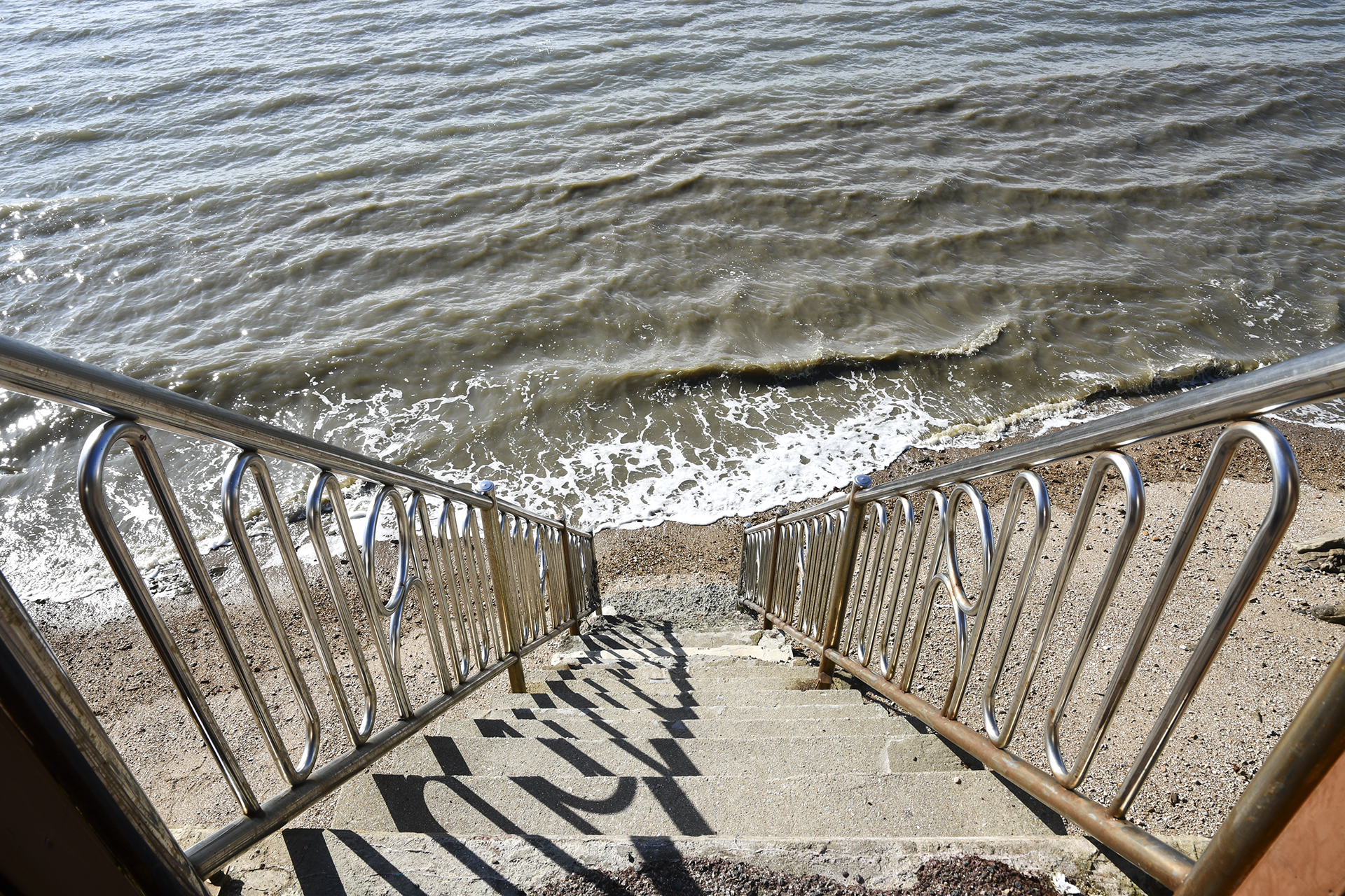 물이 계단 앞까지 들어와 있는 상태지만 잠시 해변으로 내려가 보자.
