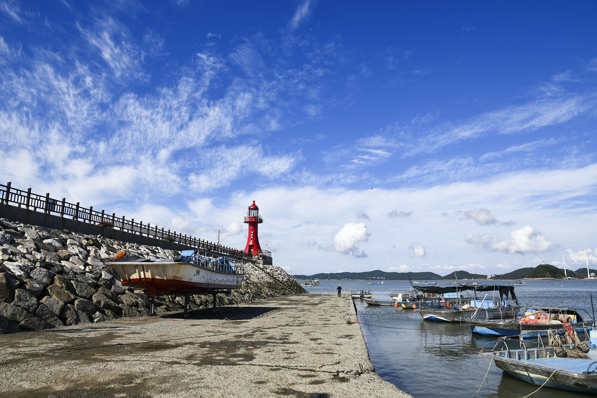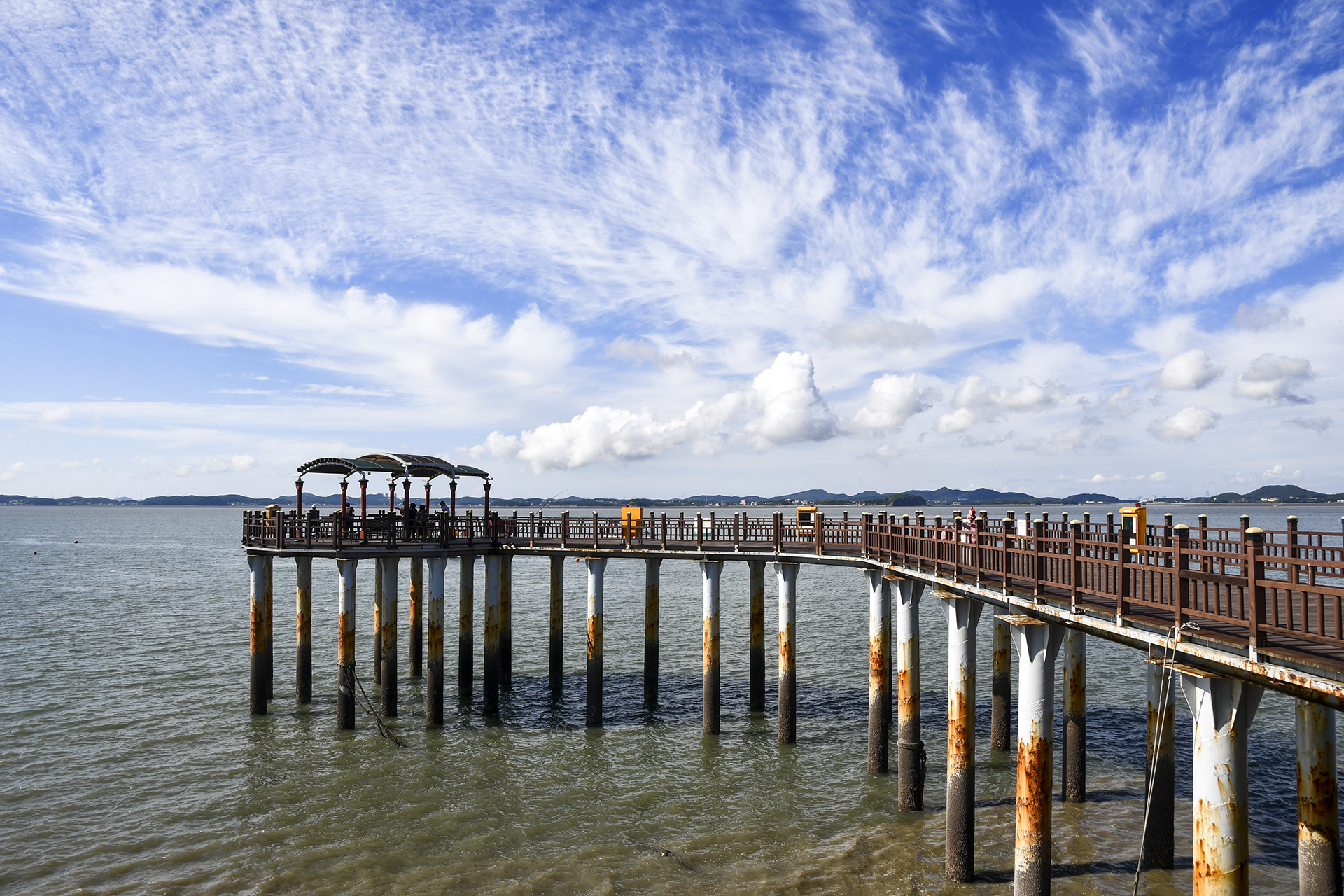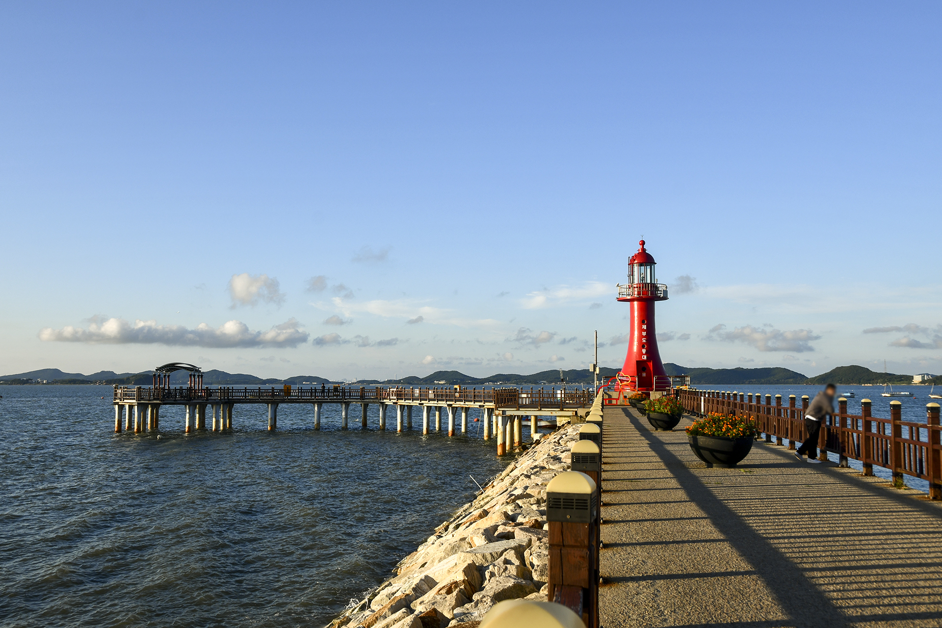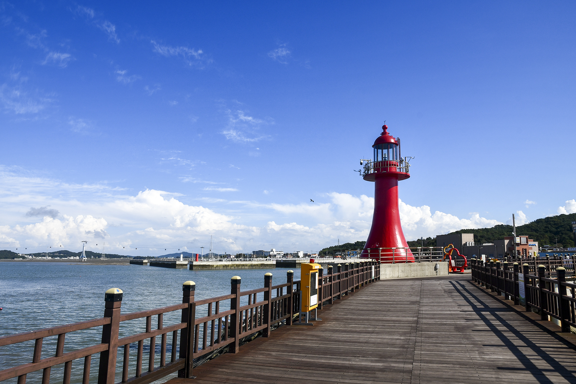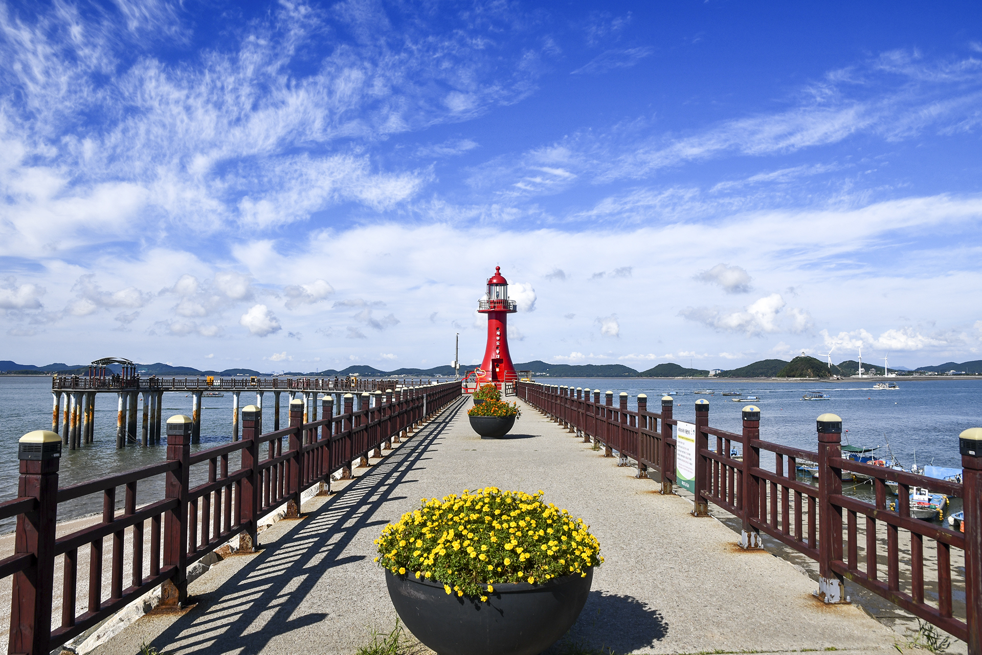 등대 풍경과 함께 잘 어울리는 피싱피어가 바다쪽으로 길게 뻗어 있다.
