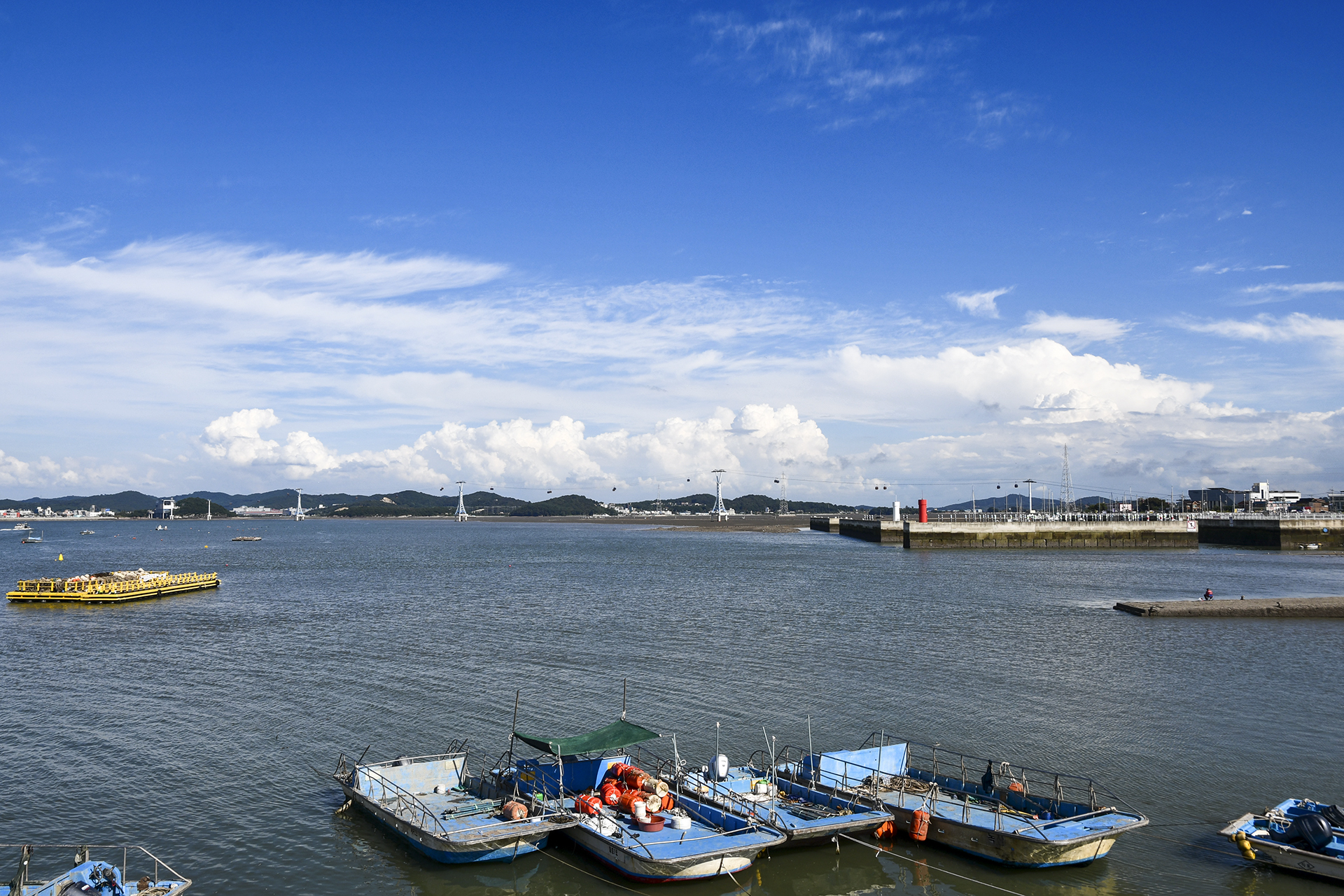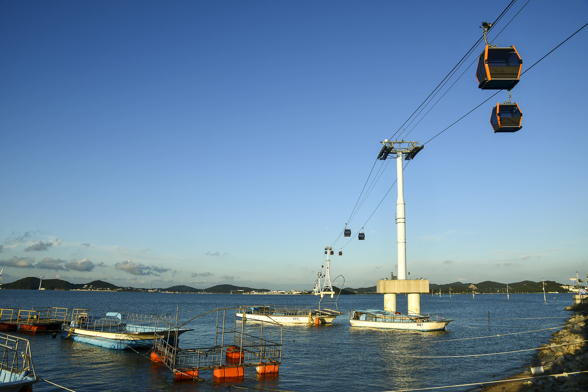 전곡항과 이어져 있는 케이블카가 바다 위를 가로지르고, 덕분에 물때와는 상관없이 제부도를 드나들수 있게 되었다.