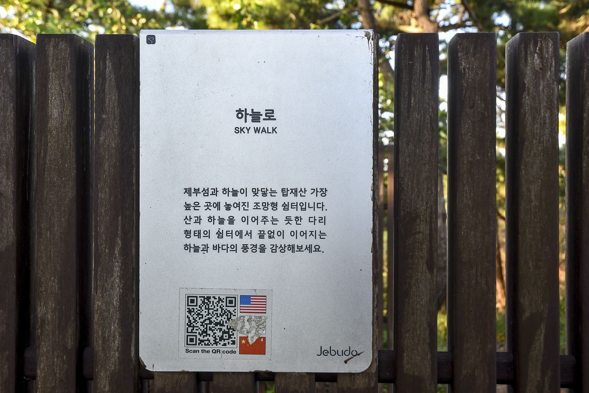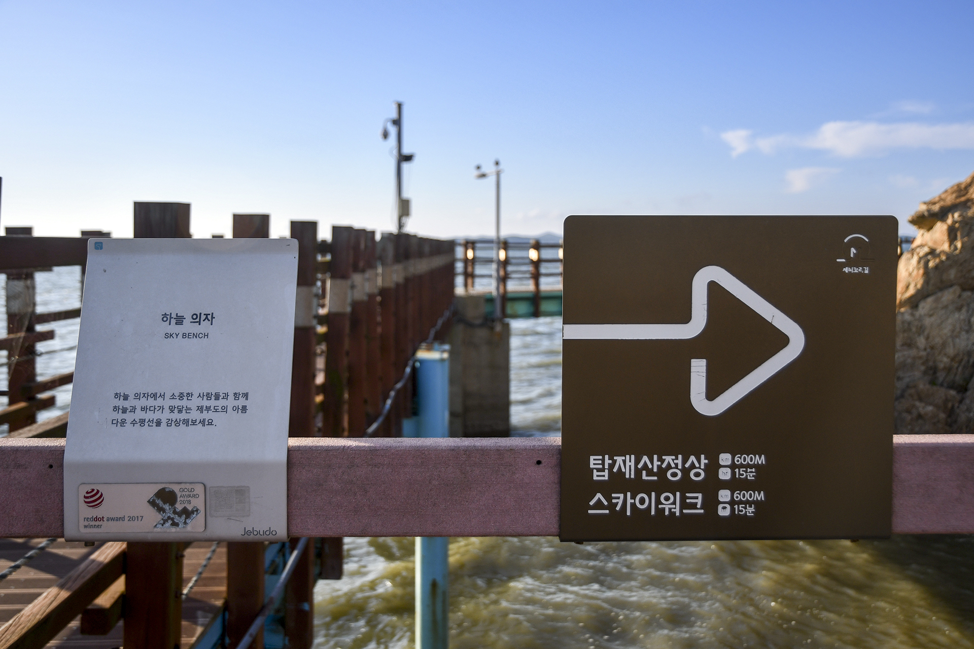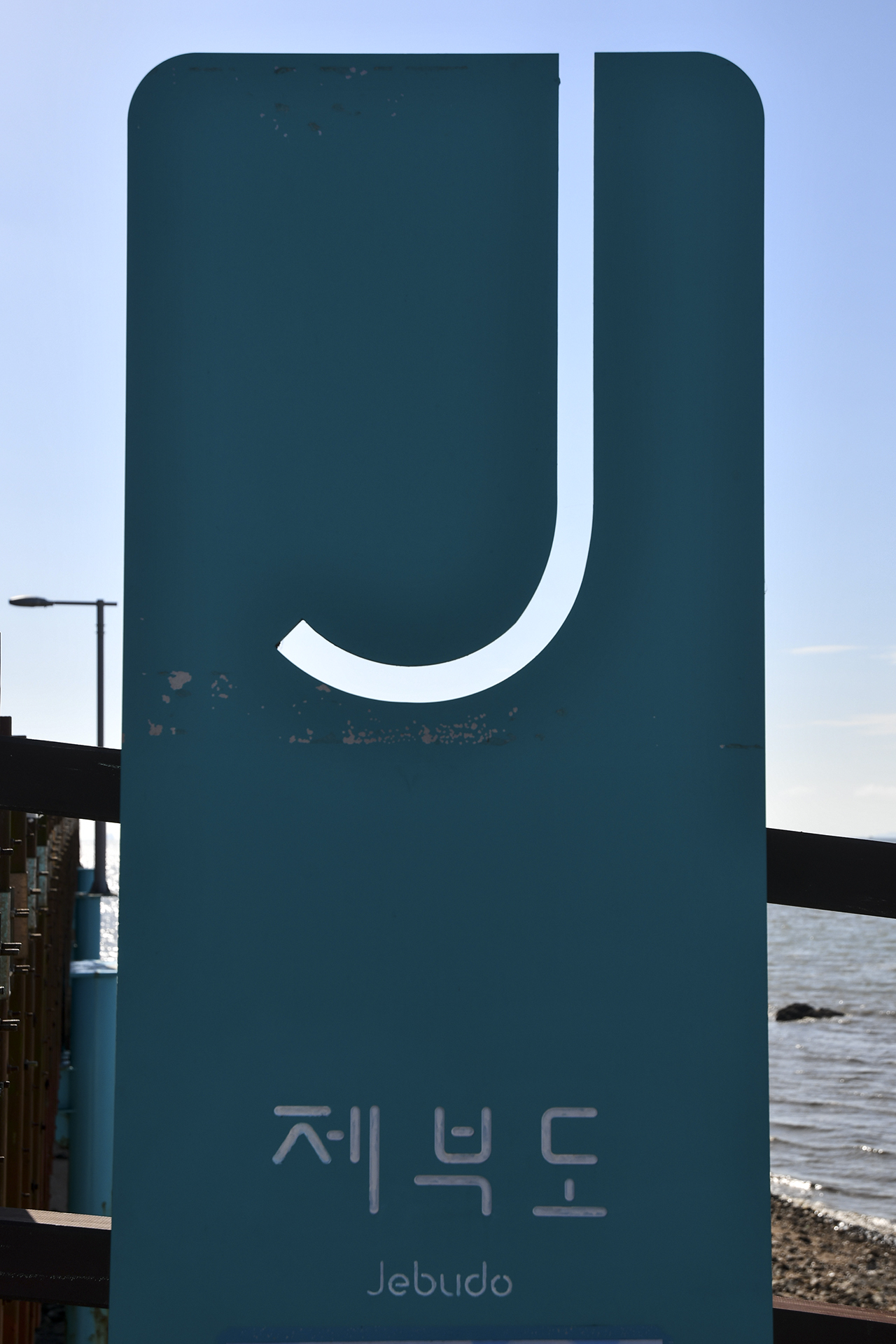 앞으로 자주 보게 될 제부도 영어이름이 데크 난간에 설치되어 있다.