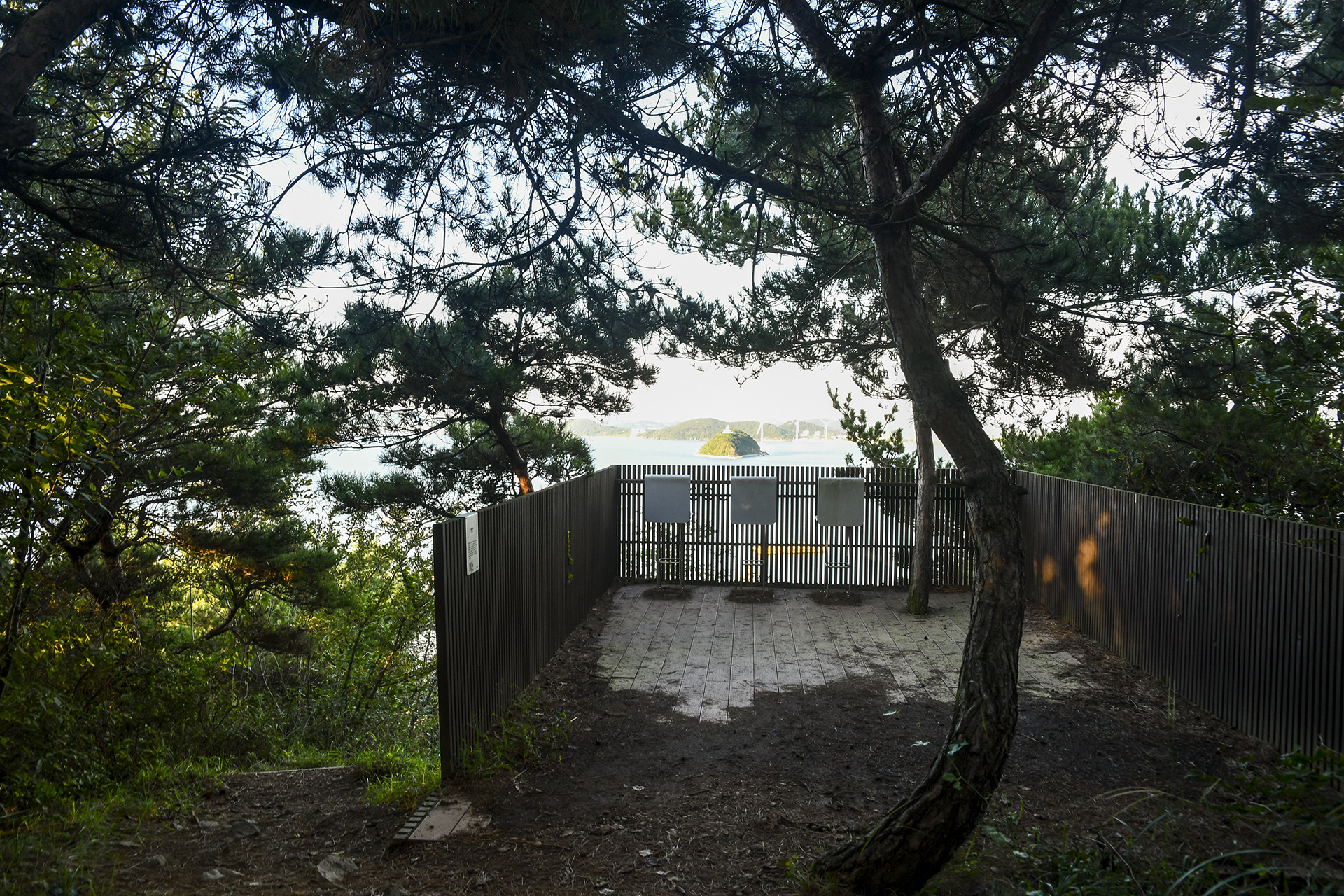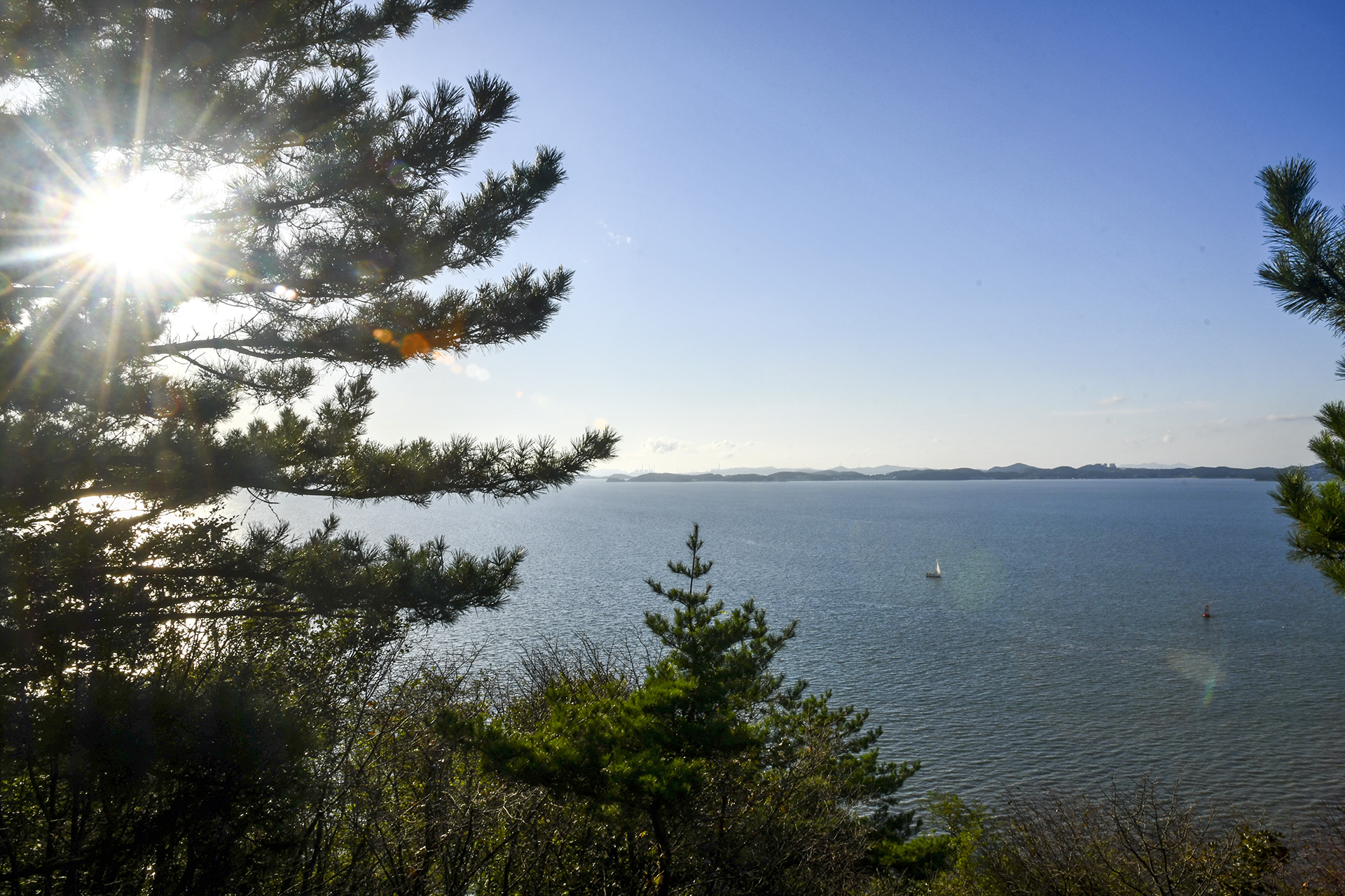 앞에 가리는 나무들로 조망이 활짝 트이지는 않지만 넓은 제부도 앞바다를 조망하기에는 부족함이 없다.