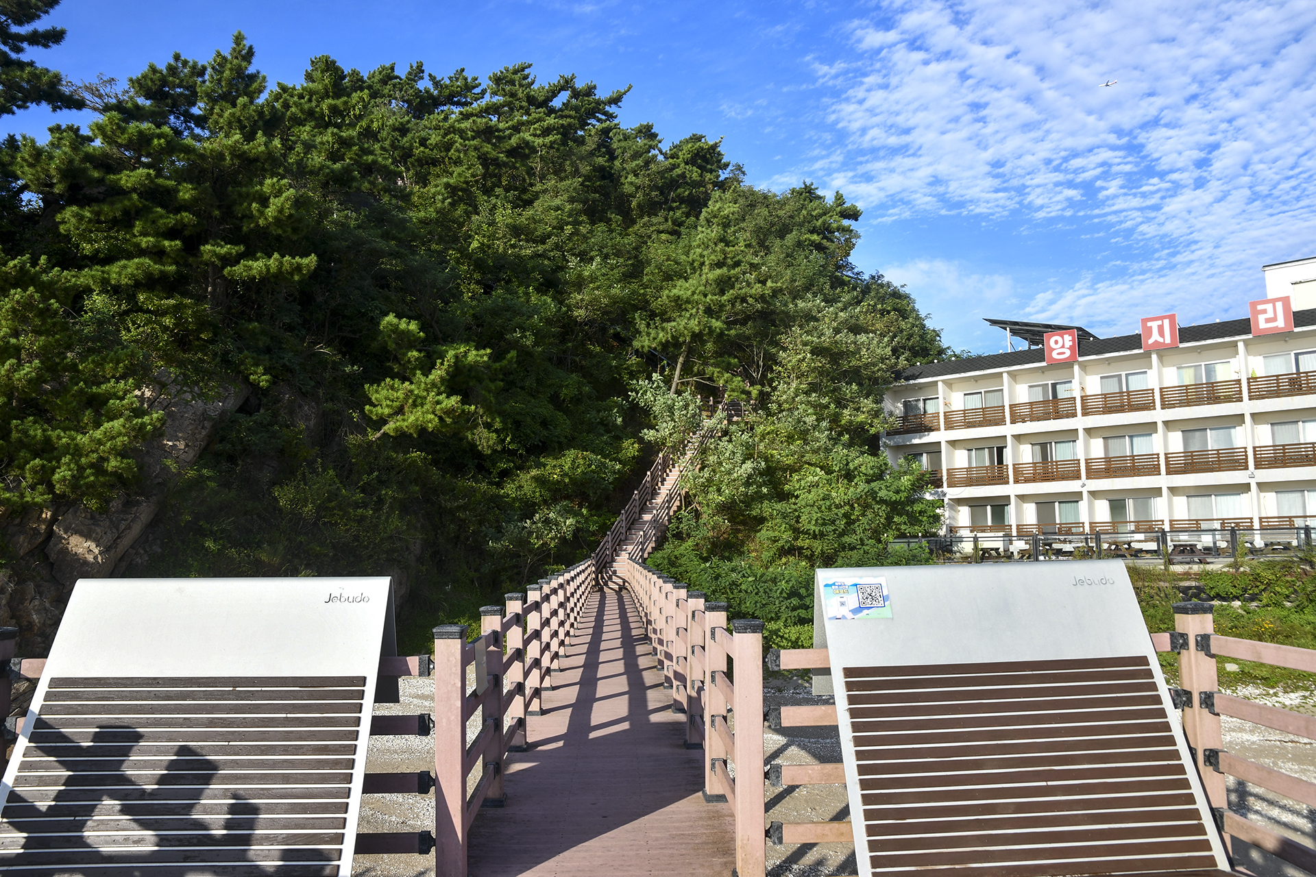 조개의자로 불리는 커다란 데크의자가 바다를 향해 양쪽으로 놓여 있어 사람들이 없을때 이곳에 앉아 바다를 바라보는 풍경이 일품을것 같다.