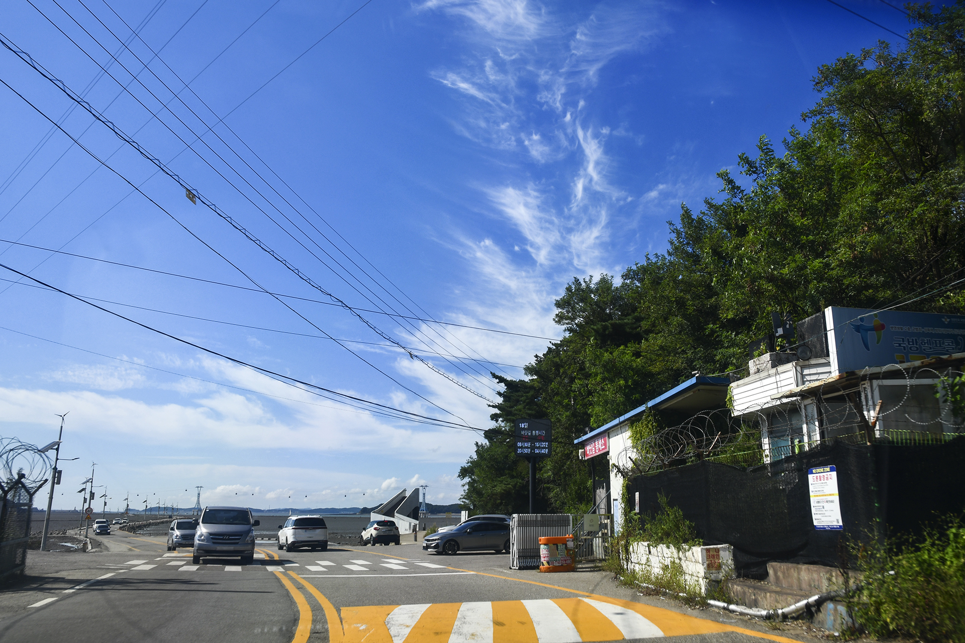 * 바닷길 통제소 앞 전광판, 오늘 바닷길 통행시간 08:30 - 16:20, 20:50 - 04:40 (대략 만조 두시간 후부터 다시 물이 가득 들어오는 만조 2시간 전까지 통행 가능)