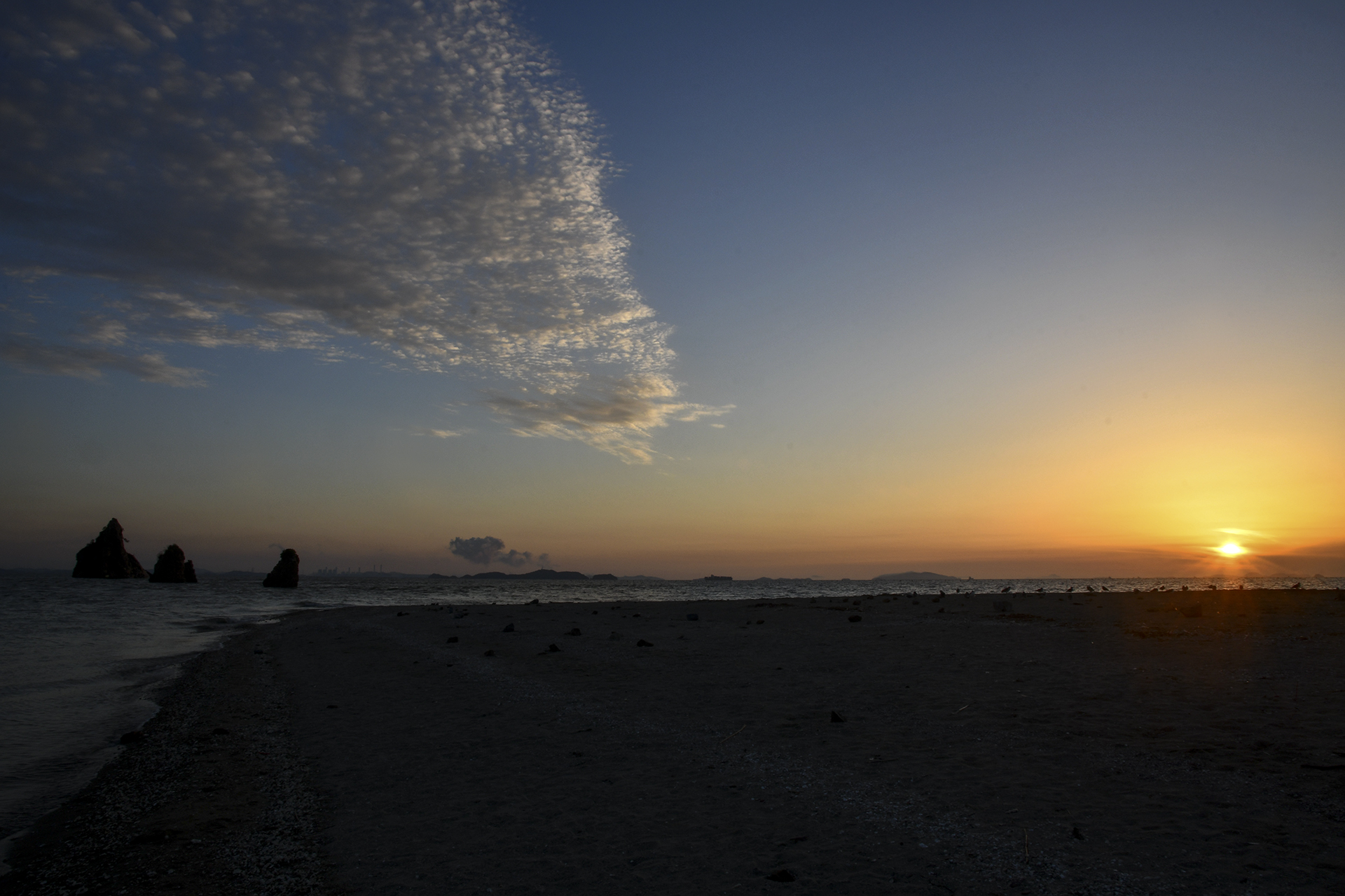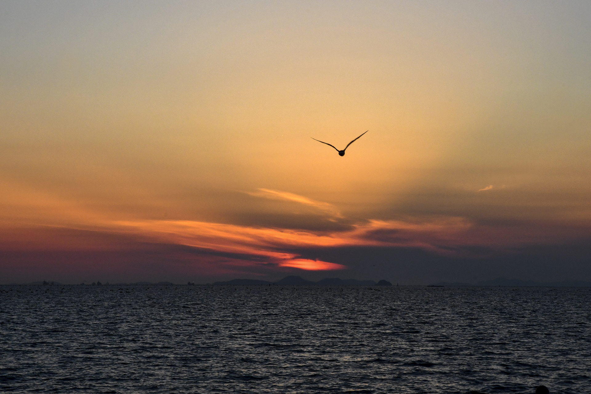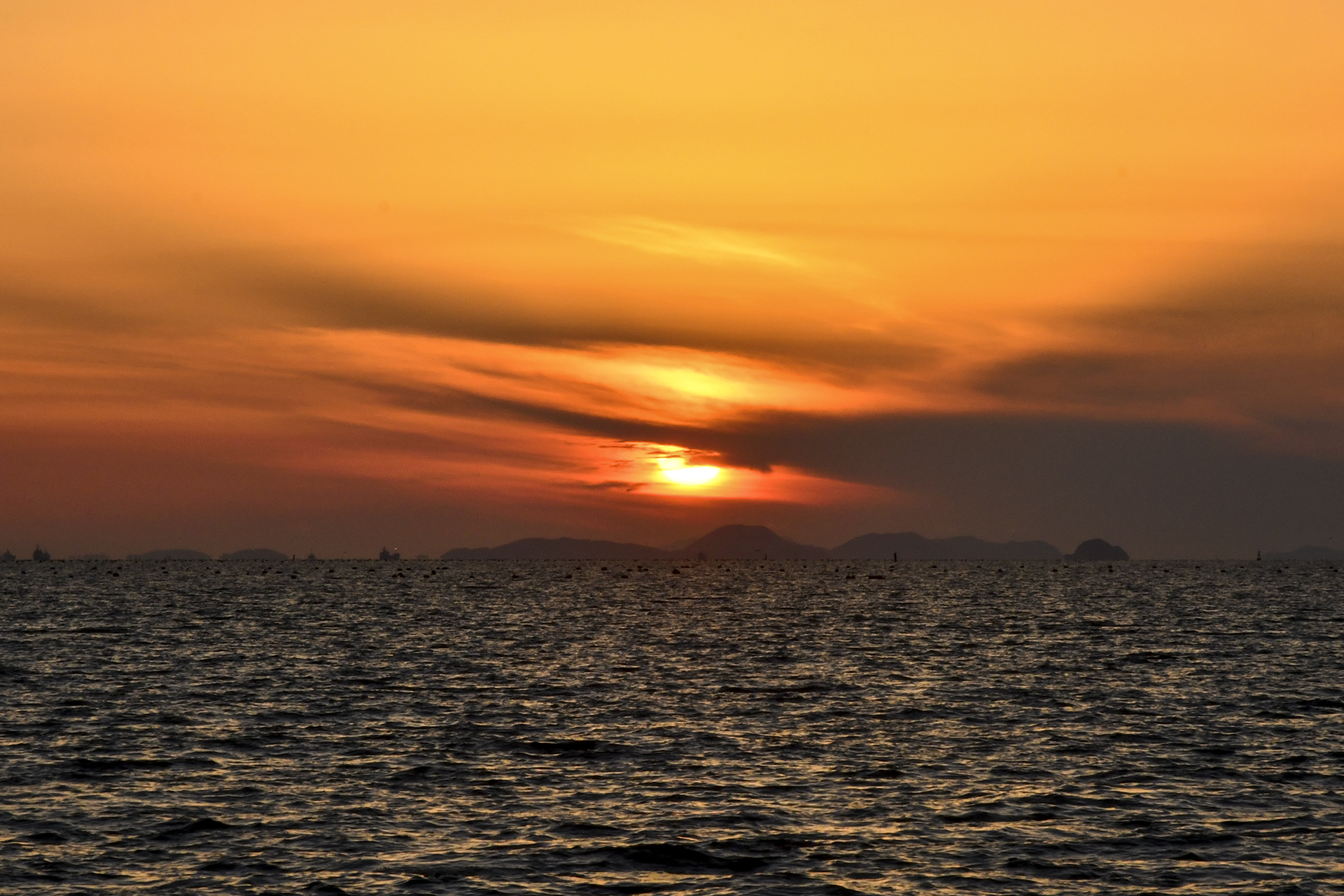 바다 위로 내려앉는 깔끔한 일몰은 아마도 보기 힘들것 같다.