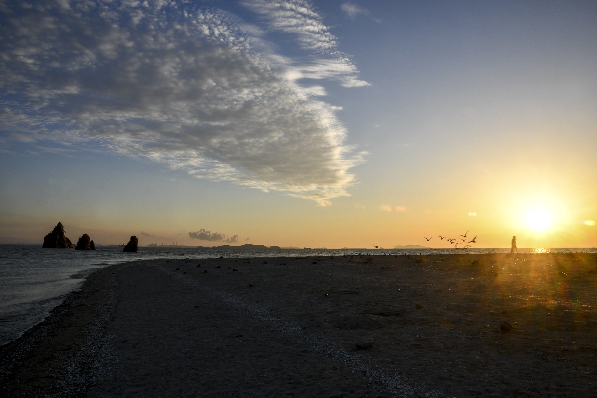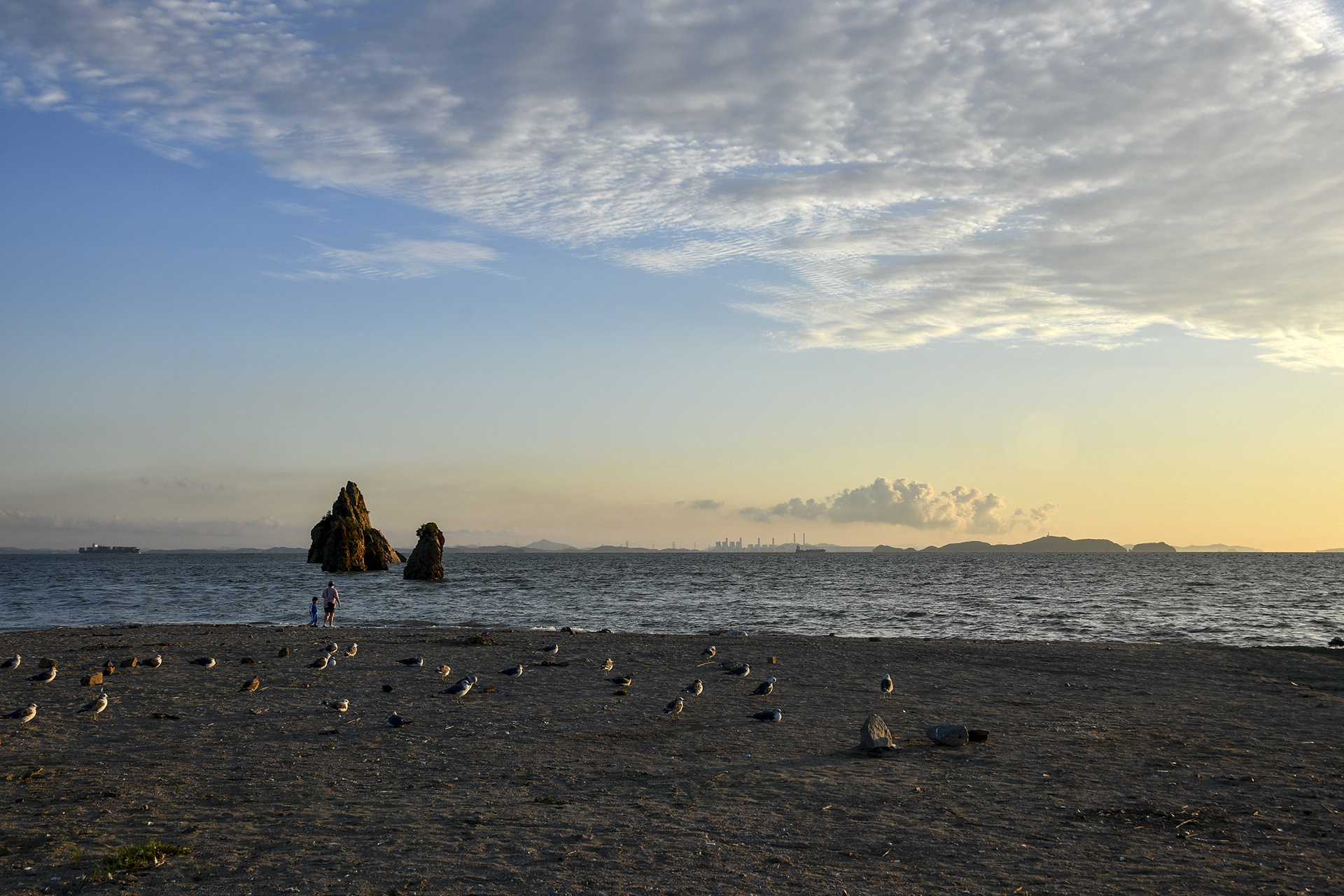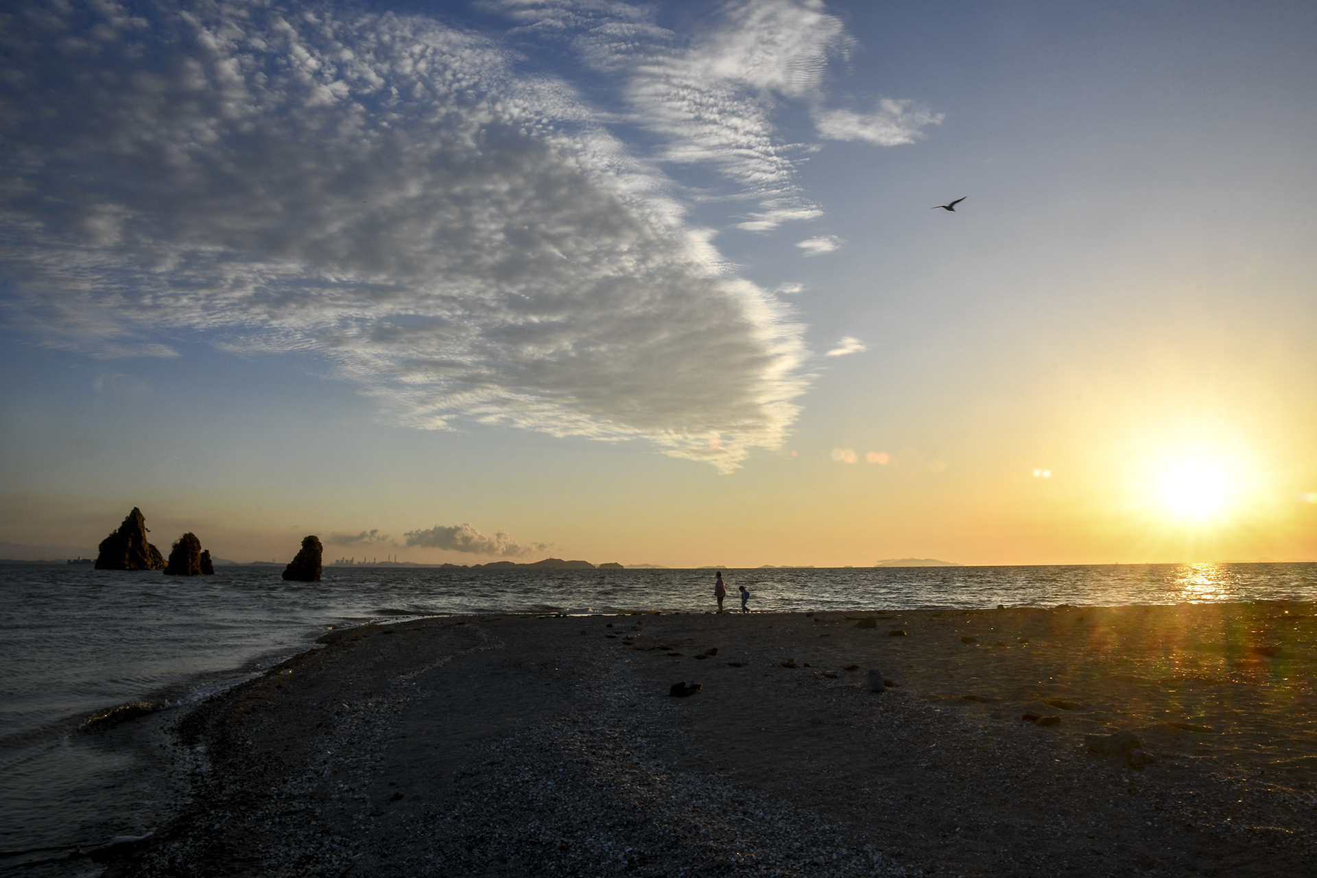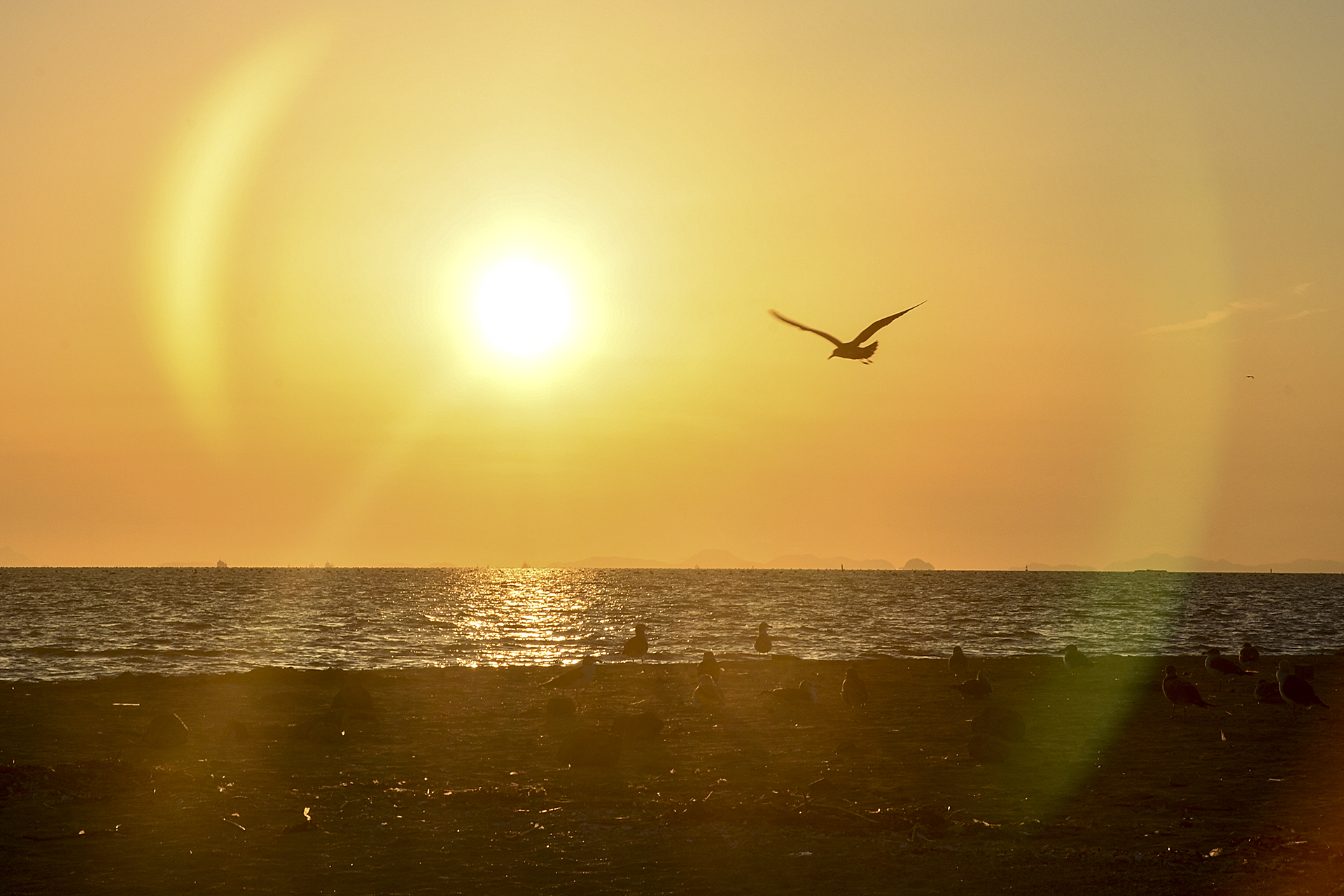 해가 떨어지는 방향, 갈매기들의 하루도 차분한 마무리를 하는것 같다.