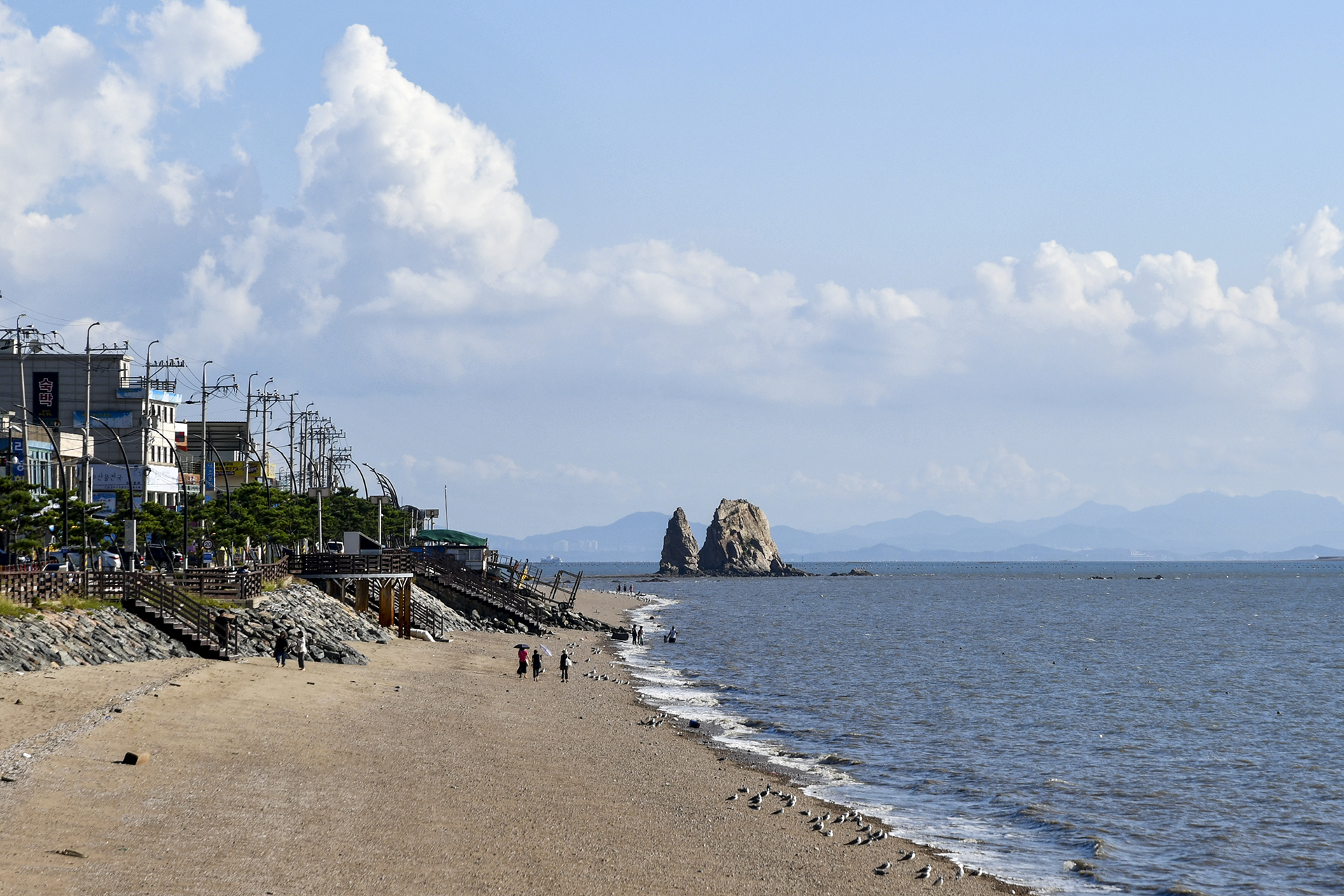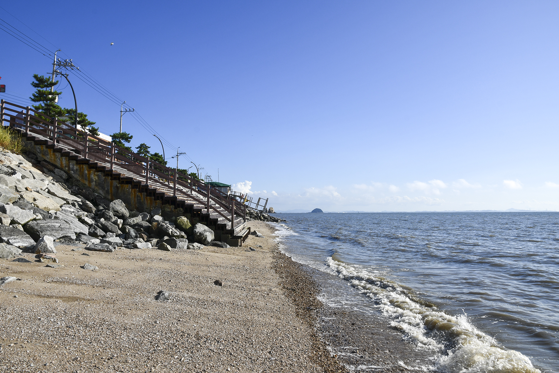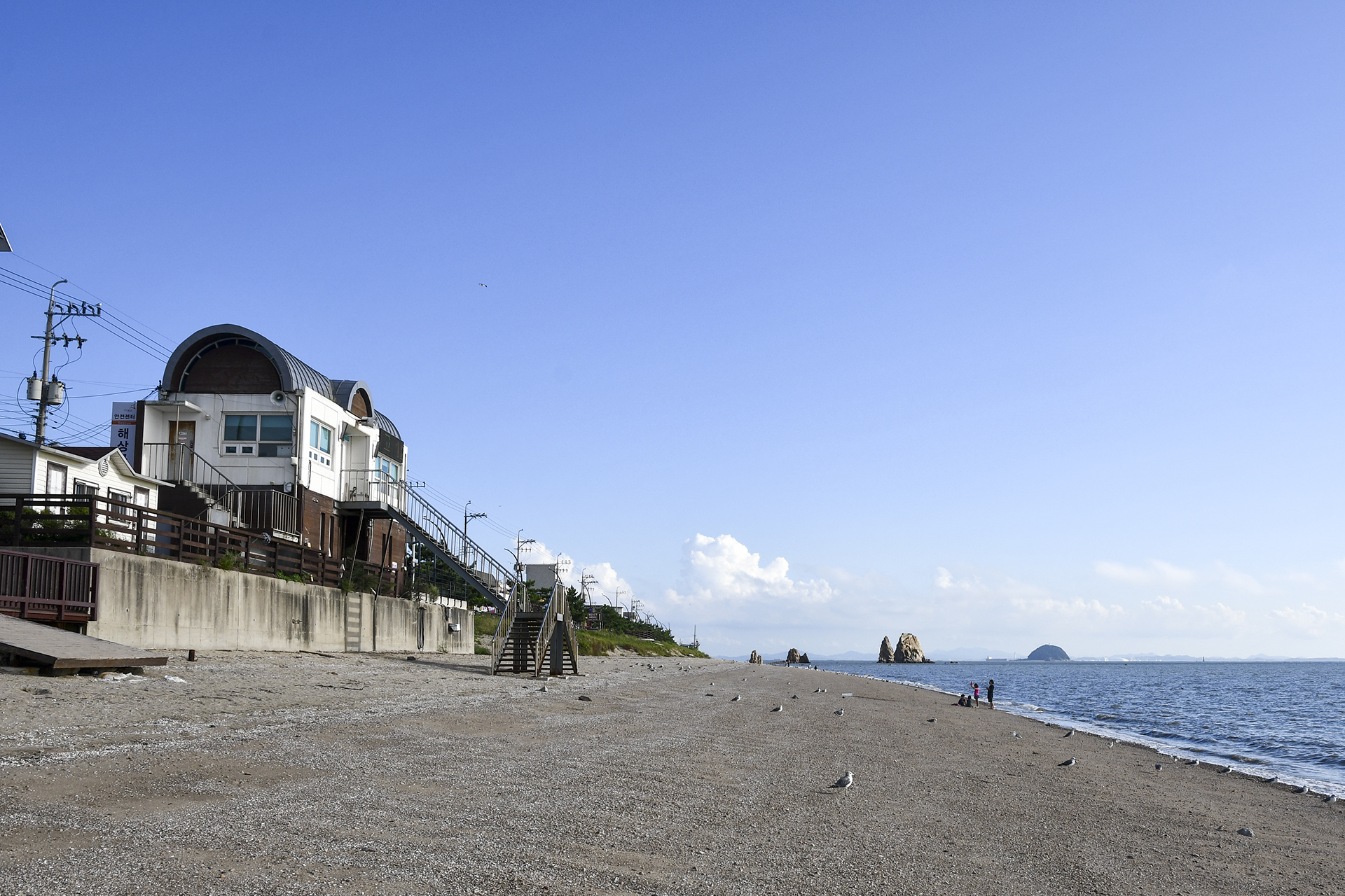 바다가 활짝 트인 해수욕장이지만 곳곳에 쉼터와 조망대가 자주 설치되어 있다.
