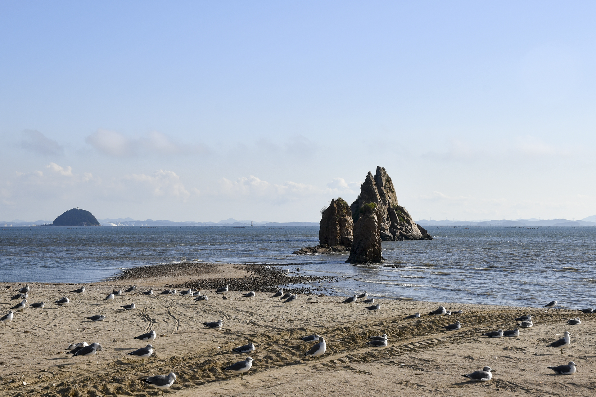 갈매기들은 뭘 보고 있는건지 모두 바다방향을 바라보고 있다.