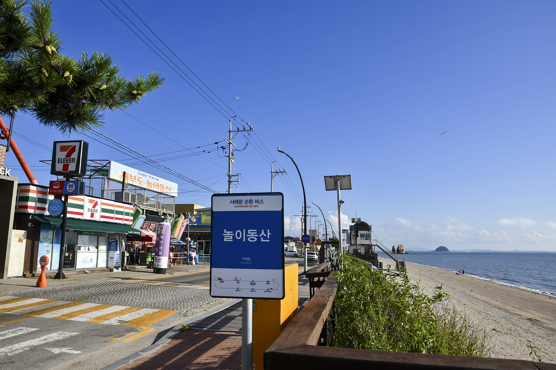 여행자스테이션과 깨끗한 화장실이 있고, 바로 앞에 매바위 해변이 펼쳐진다.