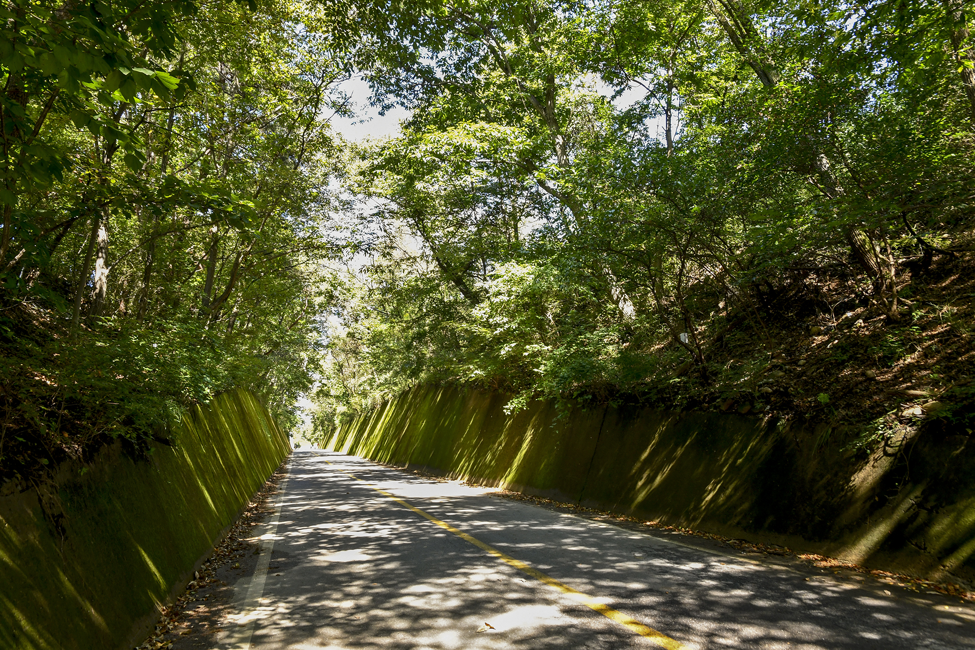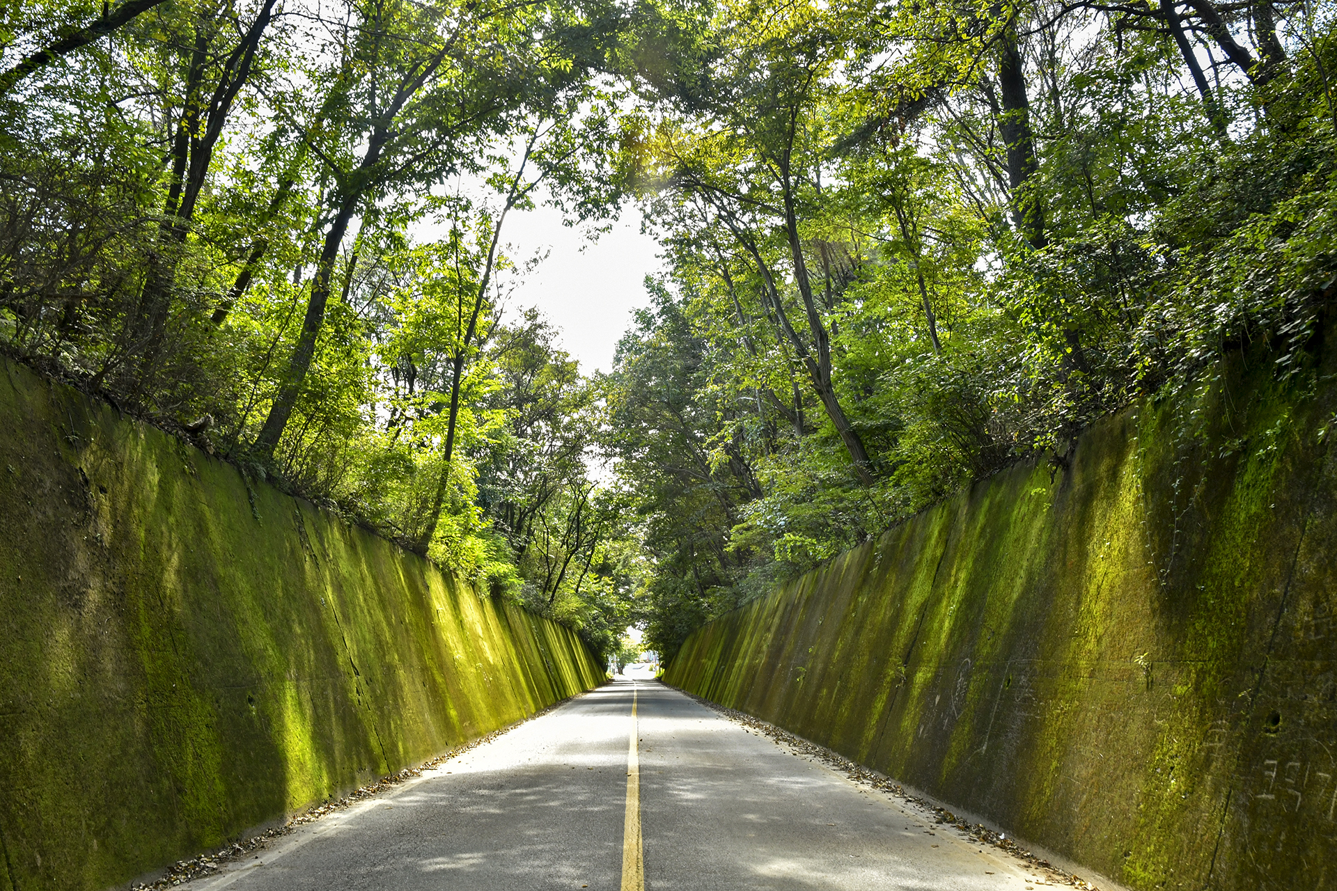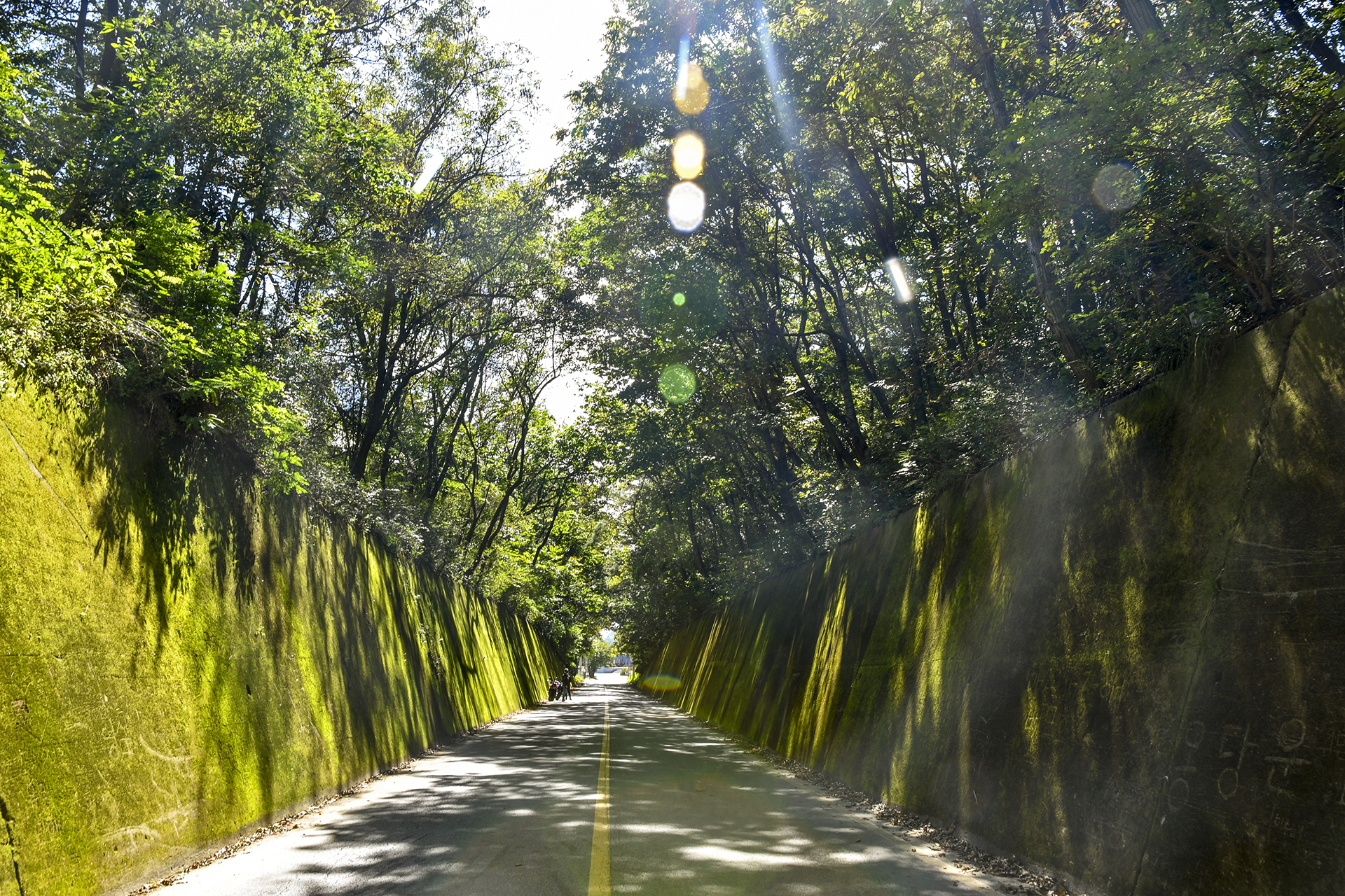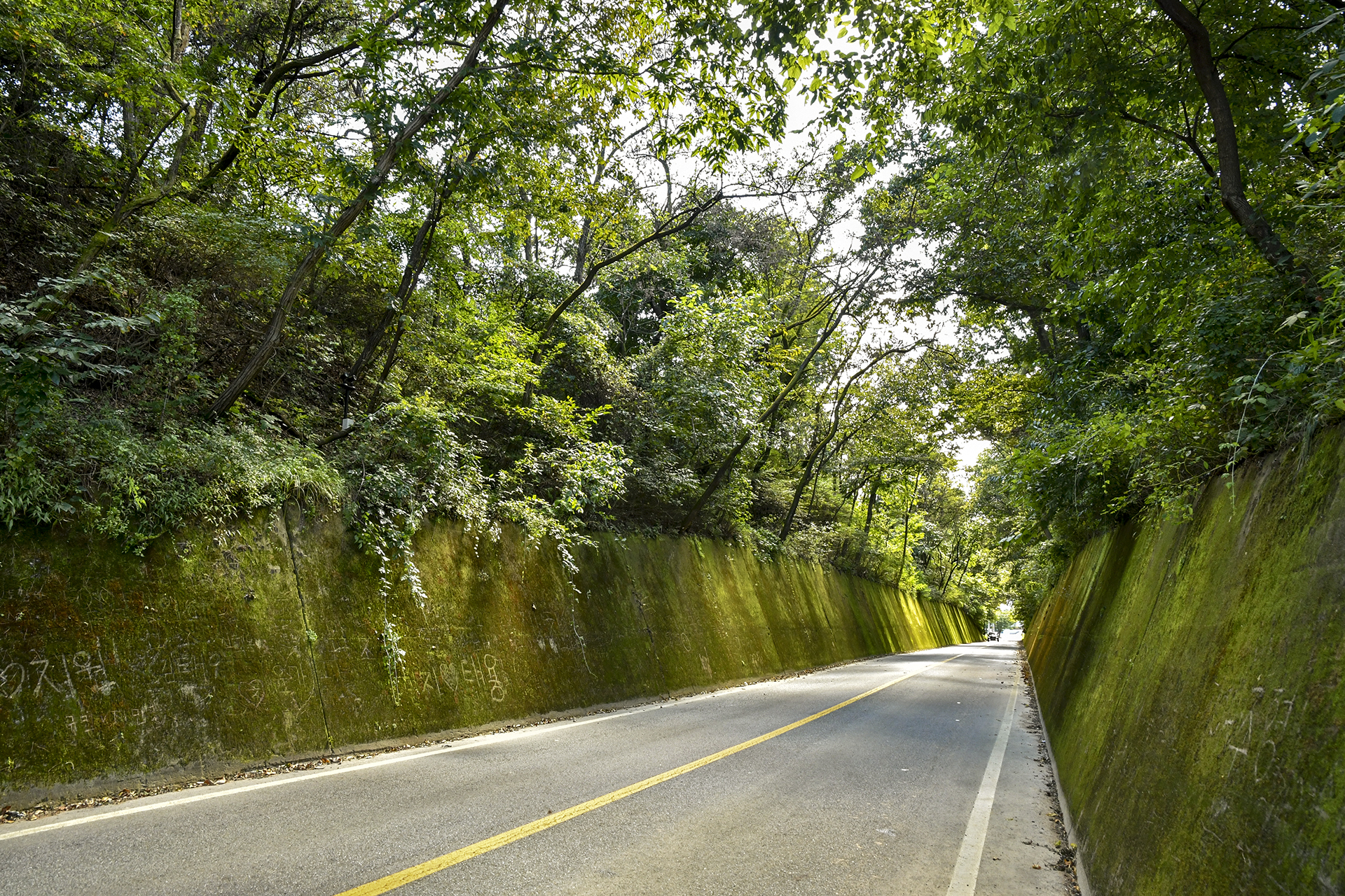 이끼터널은 굴 같은 터널이 아니라 잘린 산허리를 통과하는 옹벽 구간이었다.