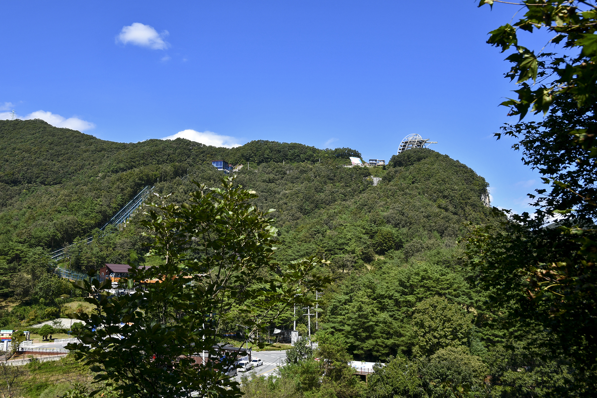 오른쪽에 보이는 둥근 시설물은 마치 기적의 물탱크처럼 보인다.