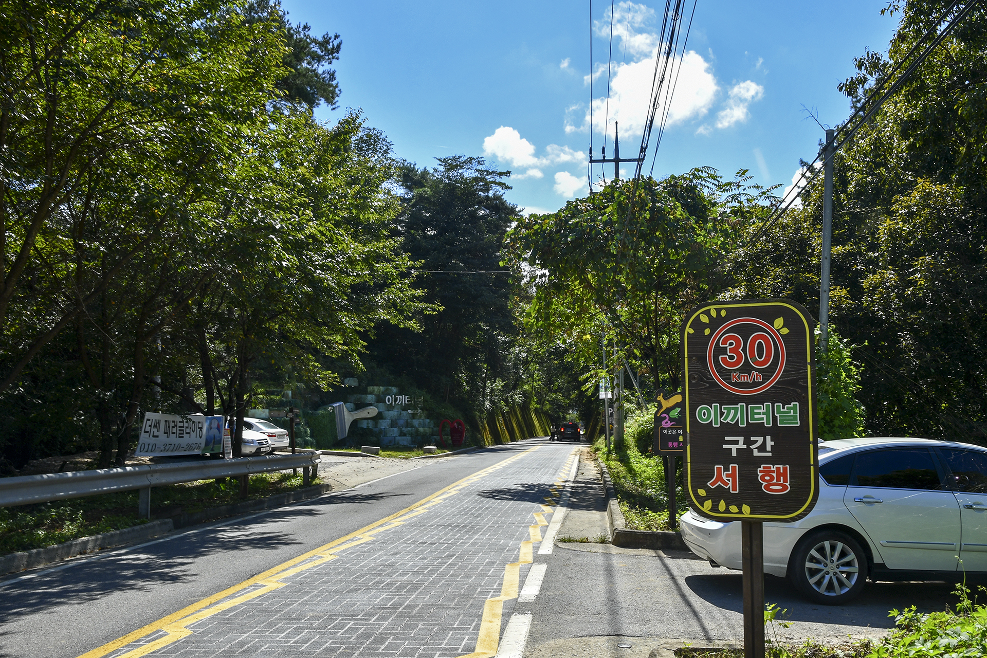 드디어 이끼터널에 도착, 주변에 차량 몇대를 주차할수 있는 공간이 있다.