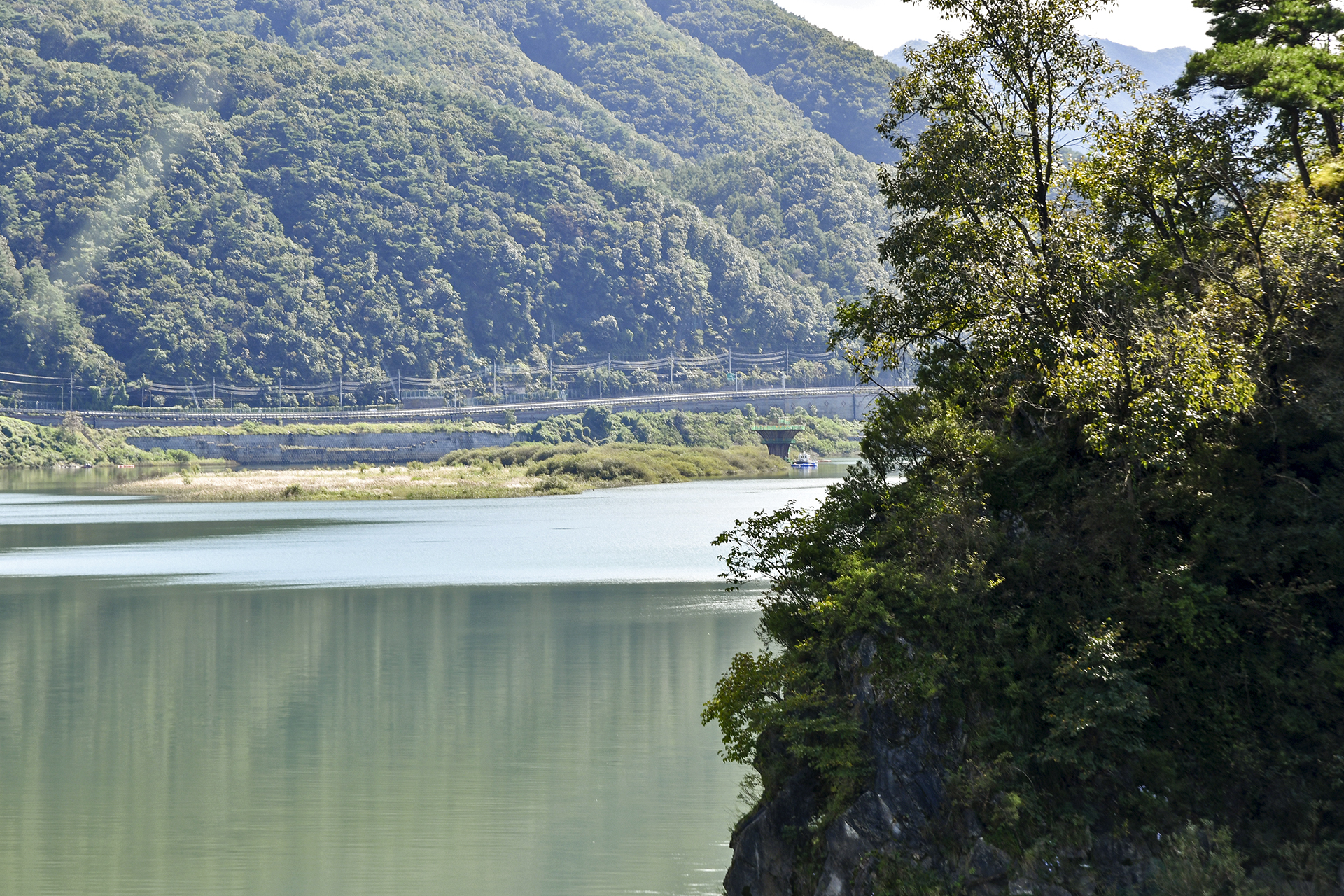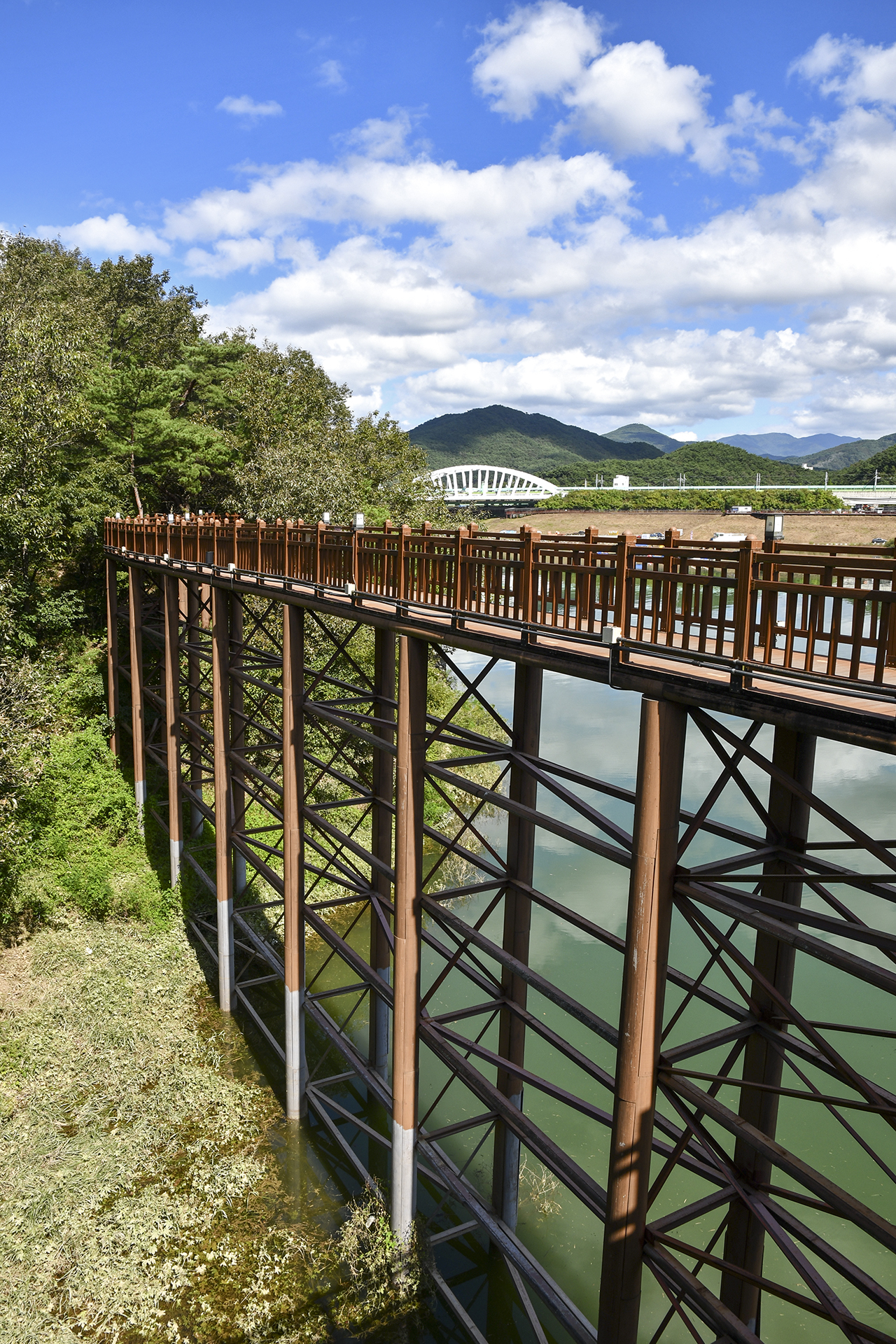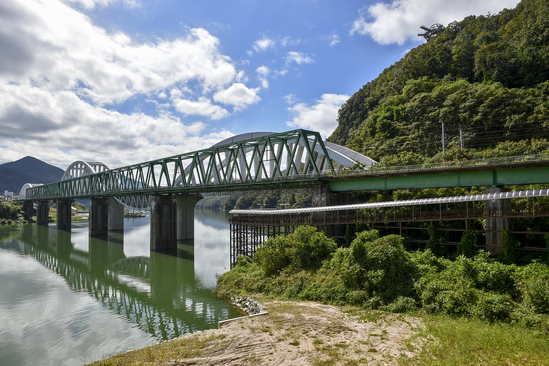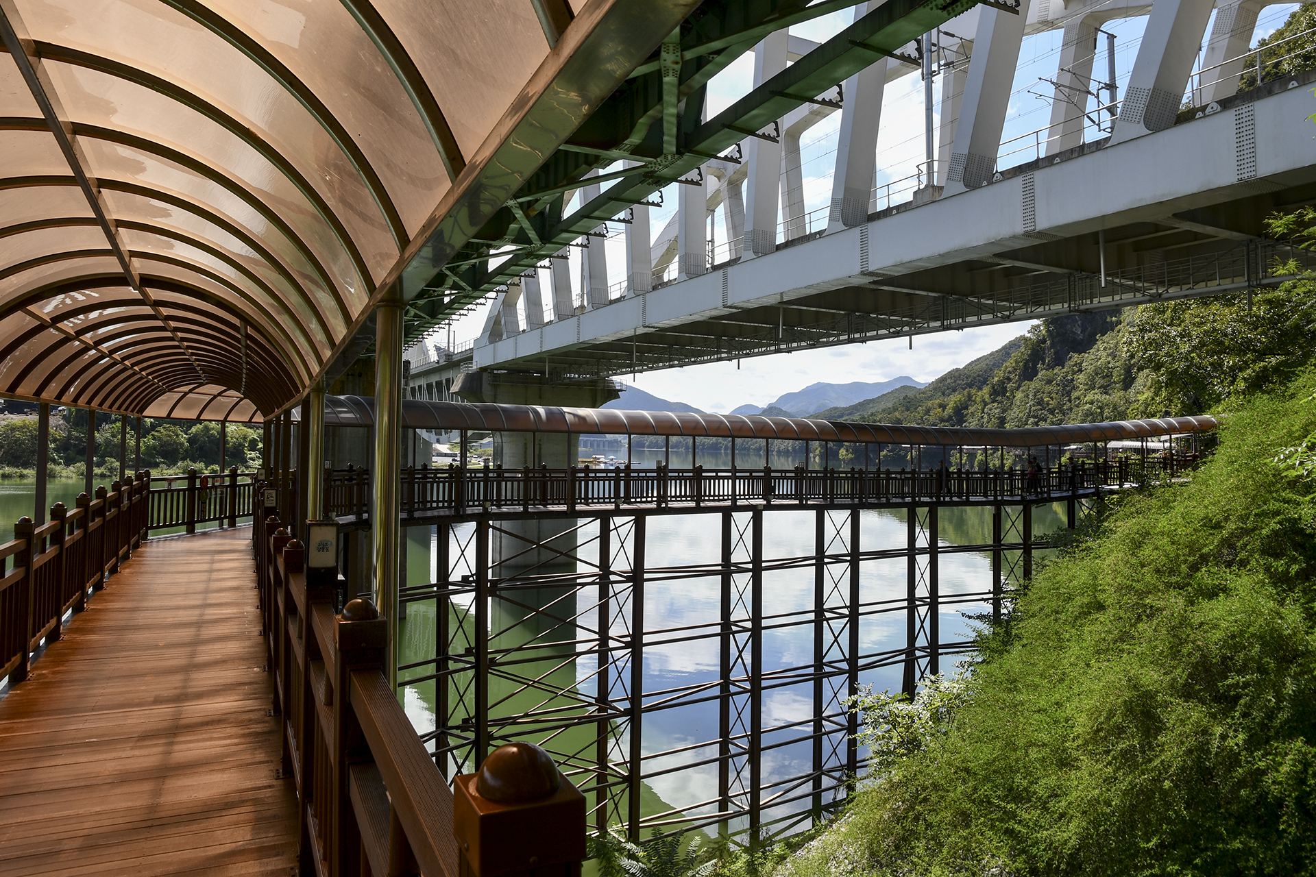 KTX가 지나가는 상진철교 아래로 잔도길이 이어진다.