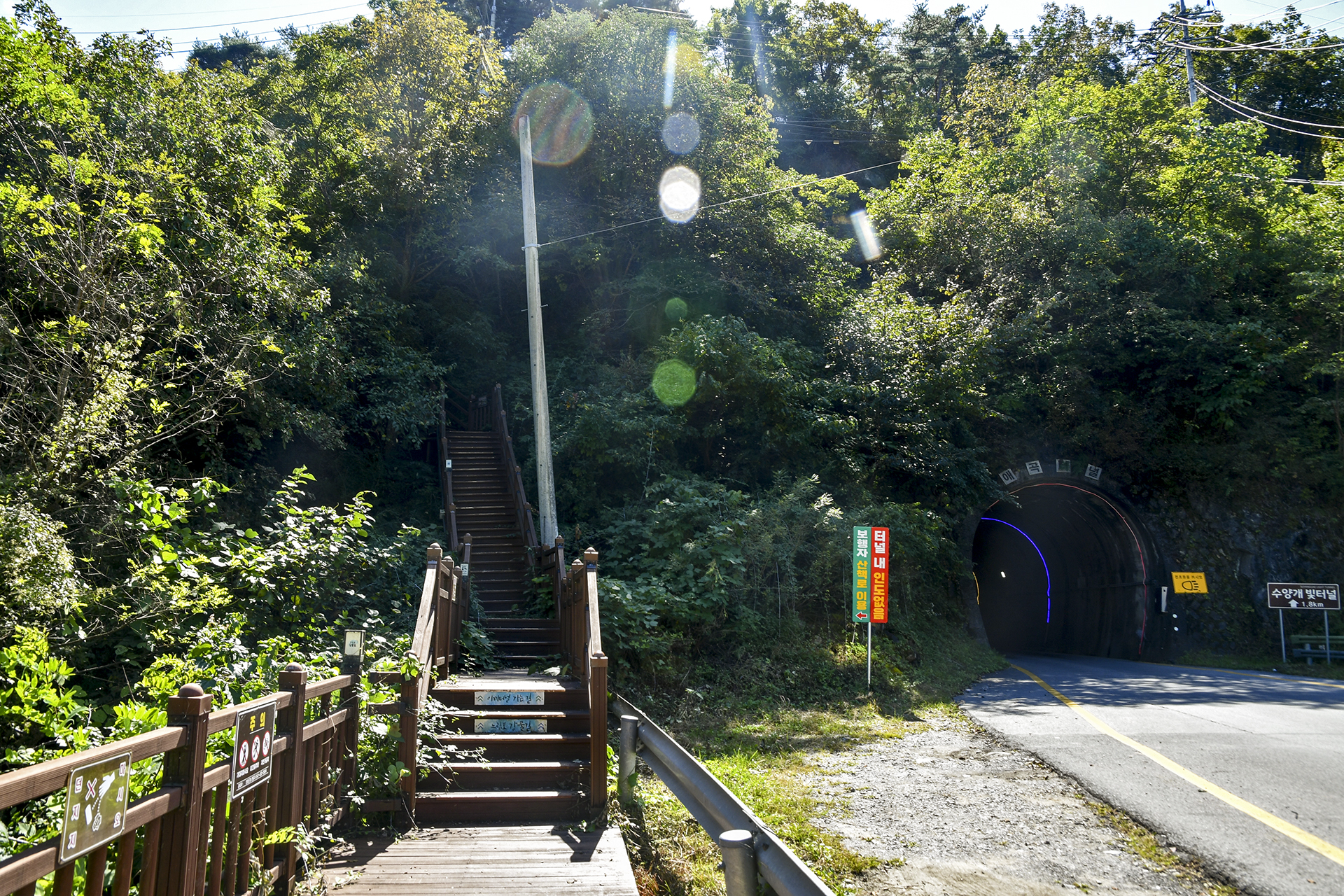 계단을 올라와 터널길이만큼 포장길을 걷게 된다.