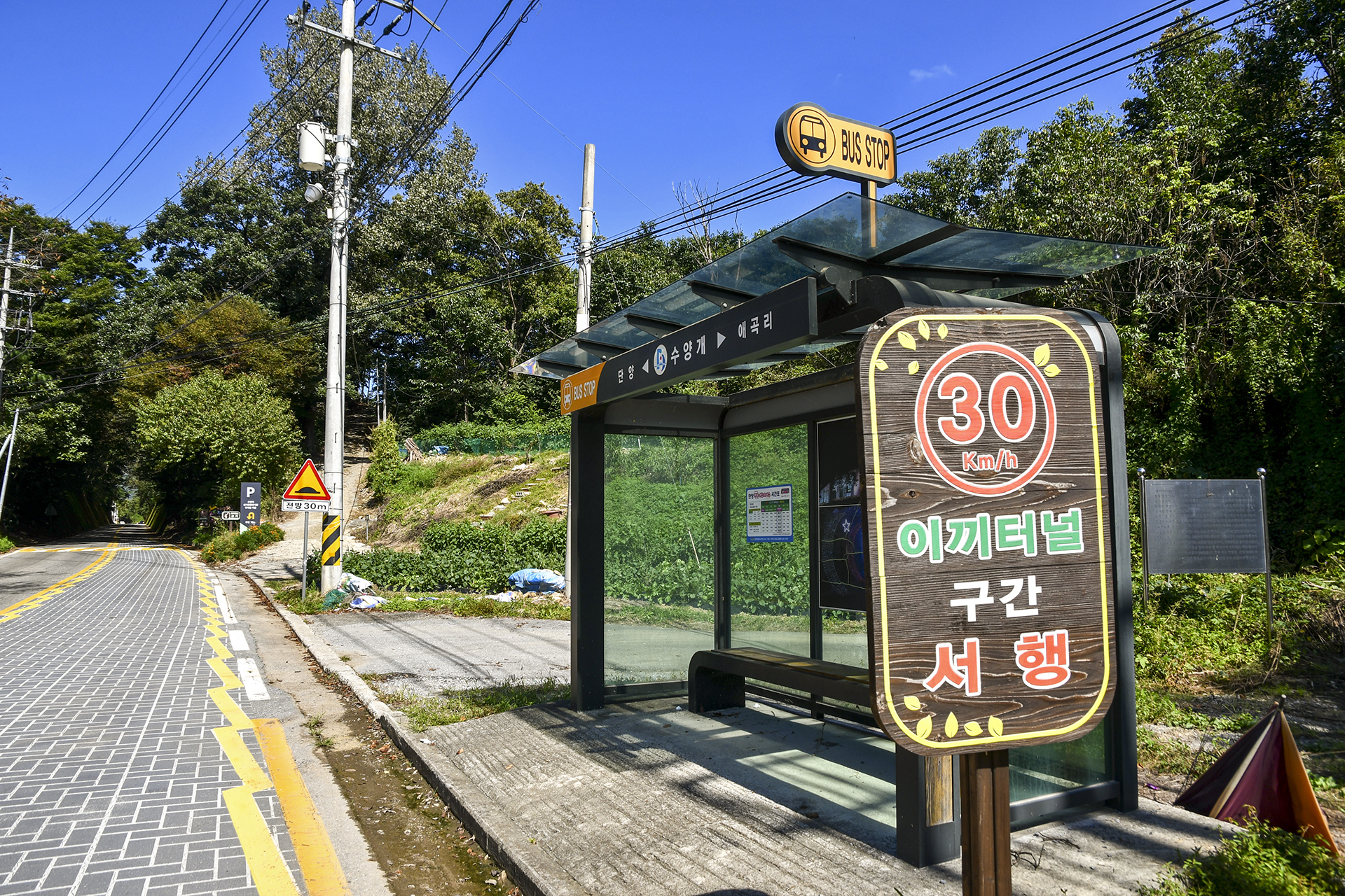 이끼터널 끝에는 수양개 버스정류장이 있다.