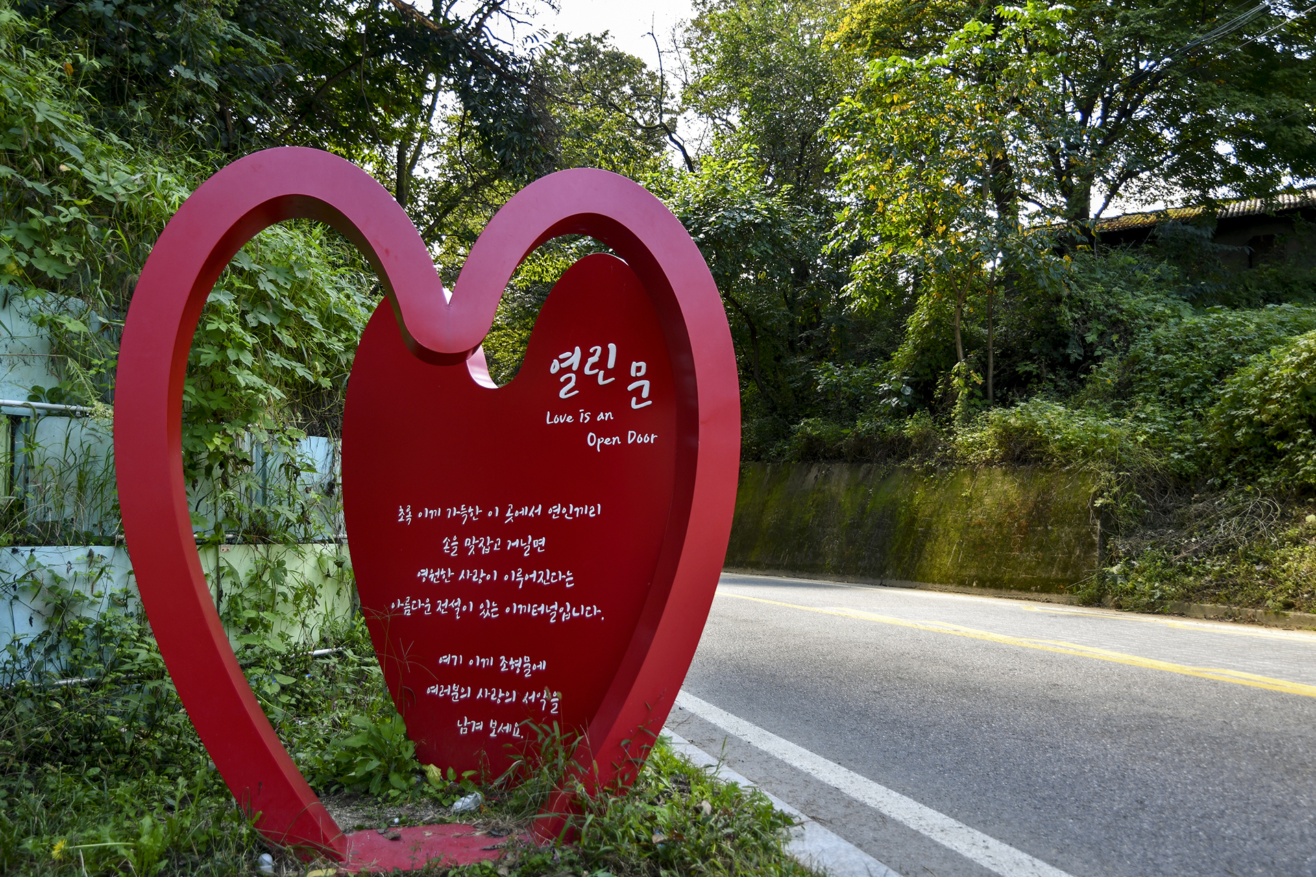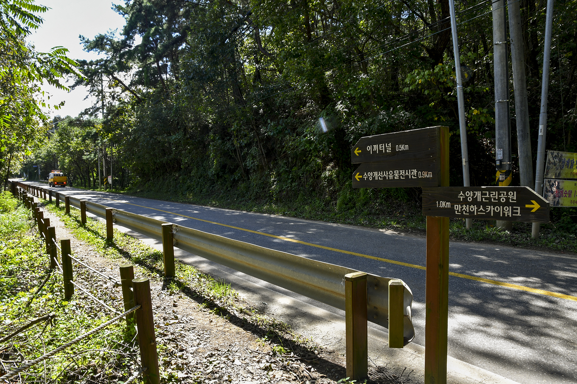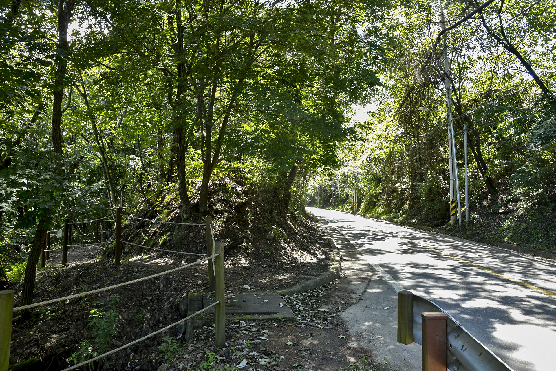 숲길은 이렇게 도로 옆 낮은 산등성이를 따라 걷게 된다.