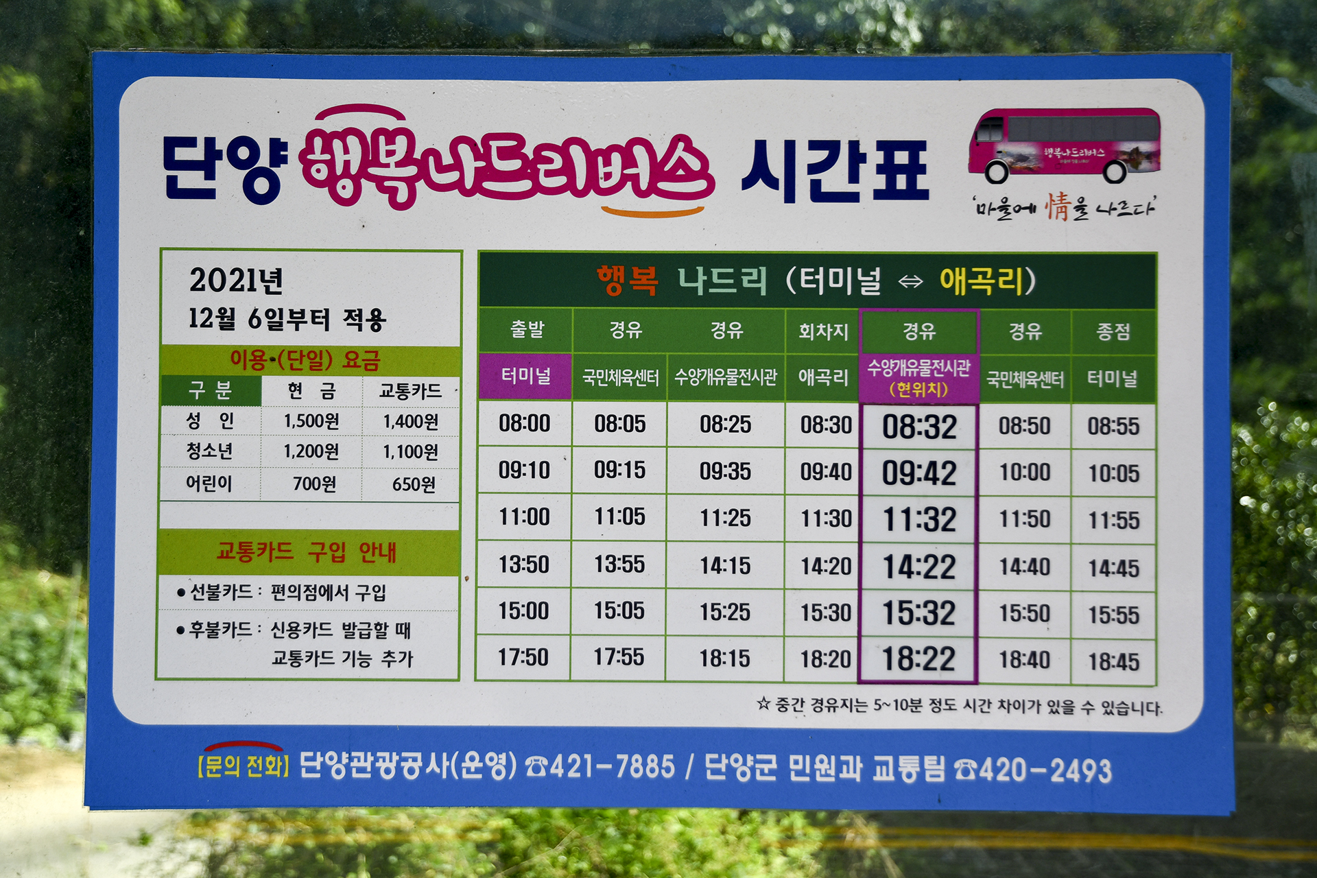 돌아가는 교통편은 버스시간표를 참고하면 된다.