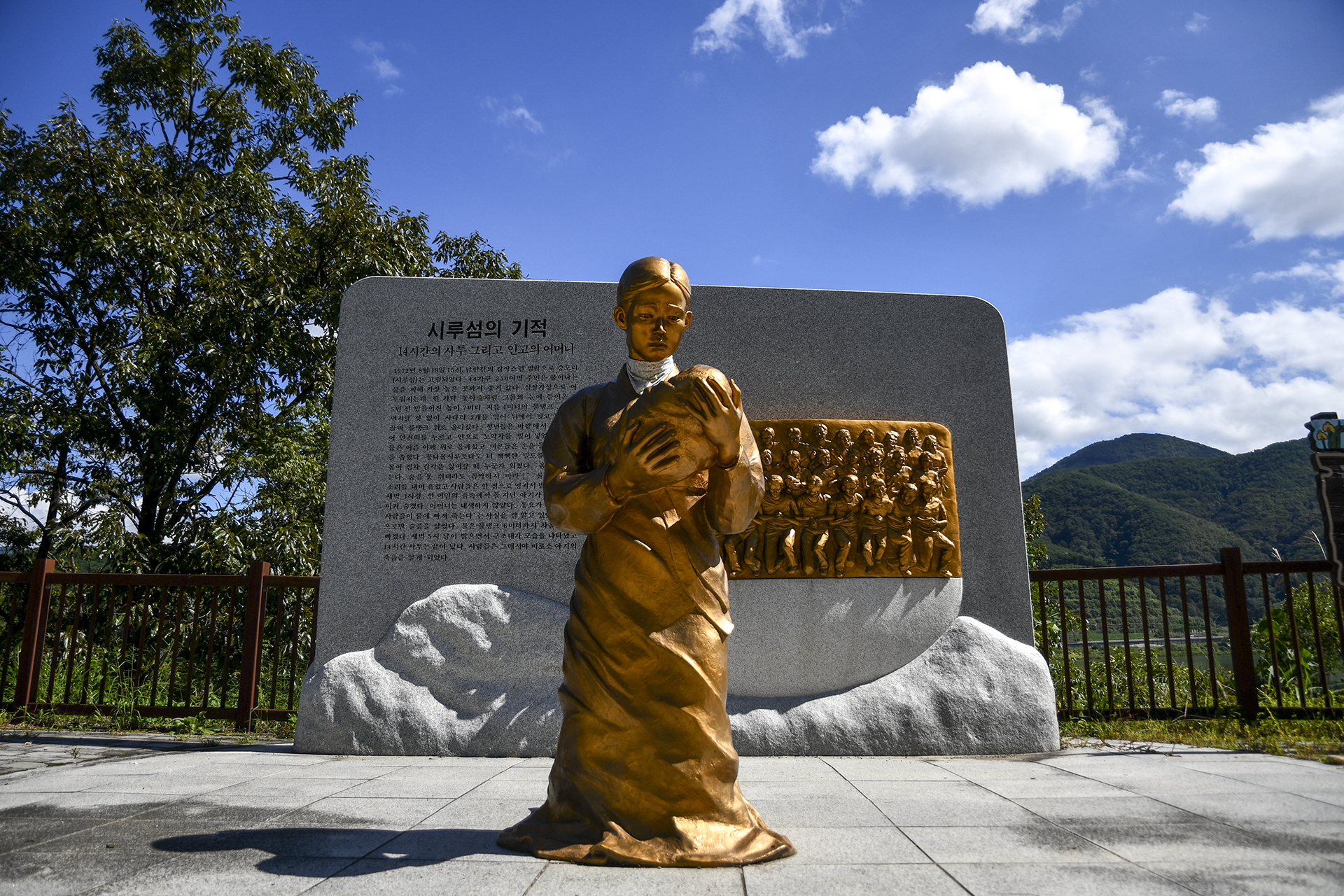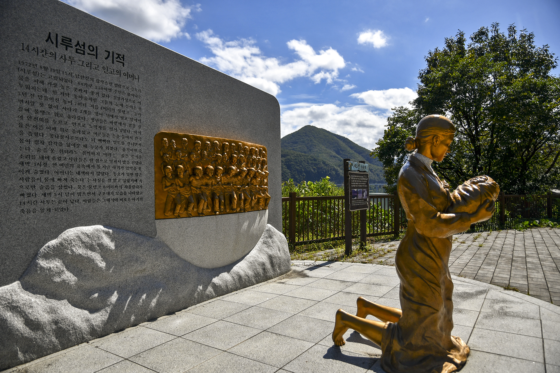 애곡터널 반대편으로 내려오면 '시루섬의 기적'으로 불리는 동상이 세워져 있고, 그 날의 긴박하고 극적인 이야기를 담은 비가 세워져 있다.