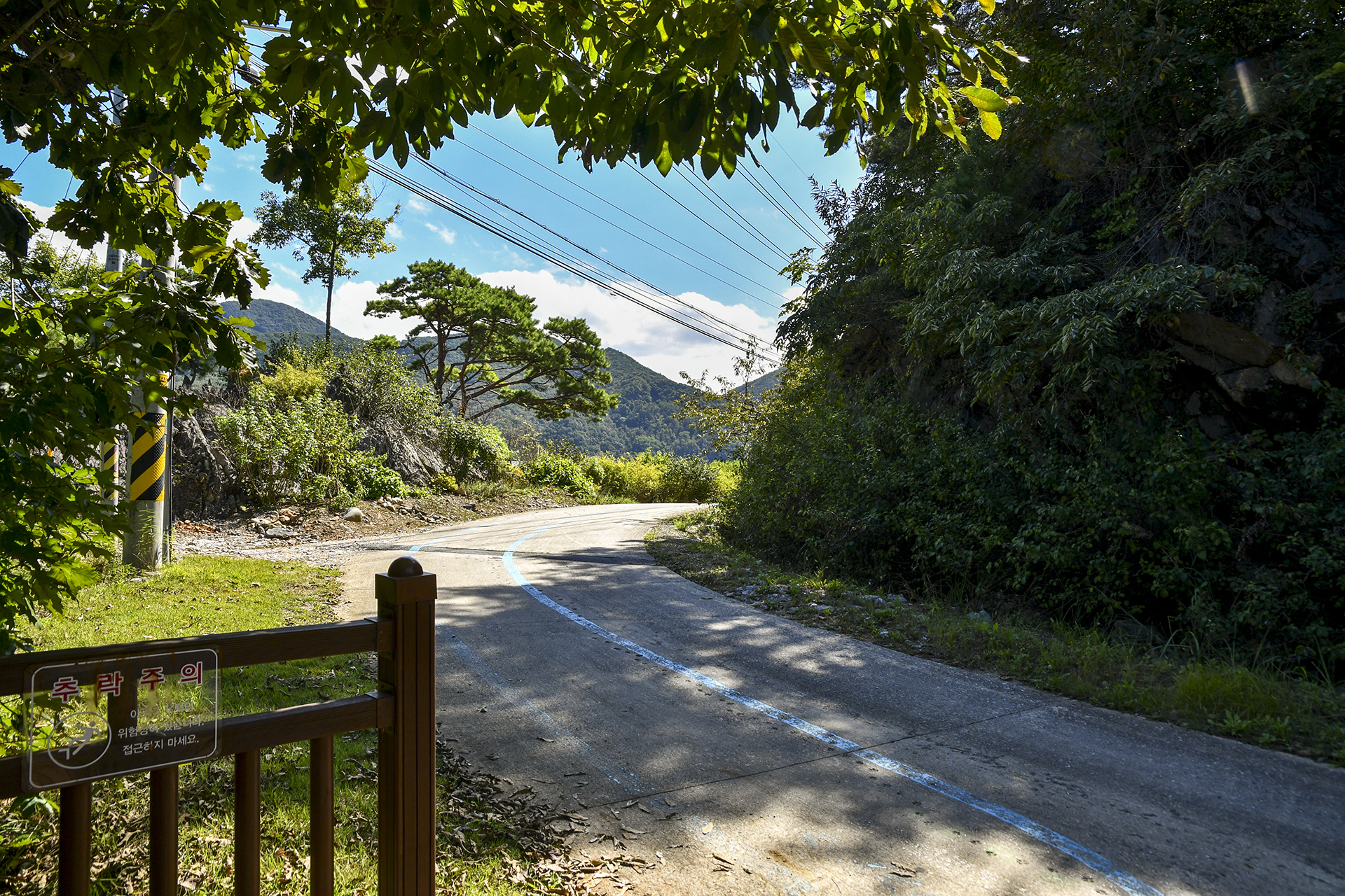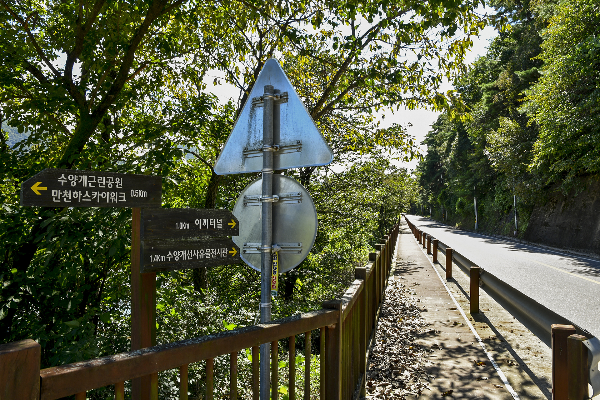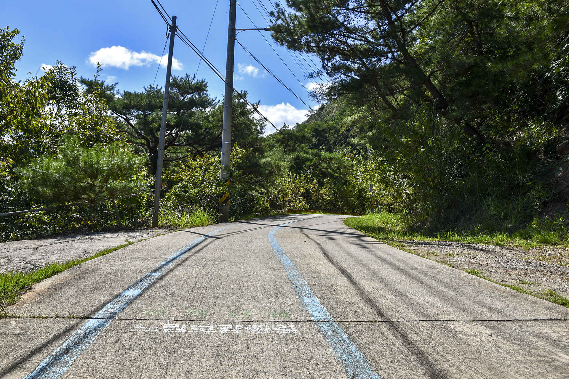 도로를 걸어야 하는 구간에서는 산으로 숲길을 만들었다.