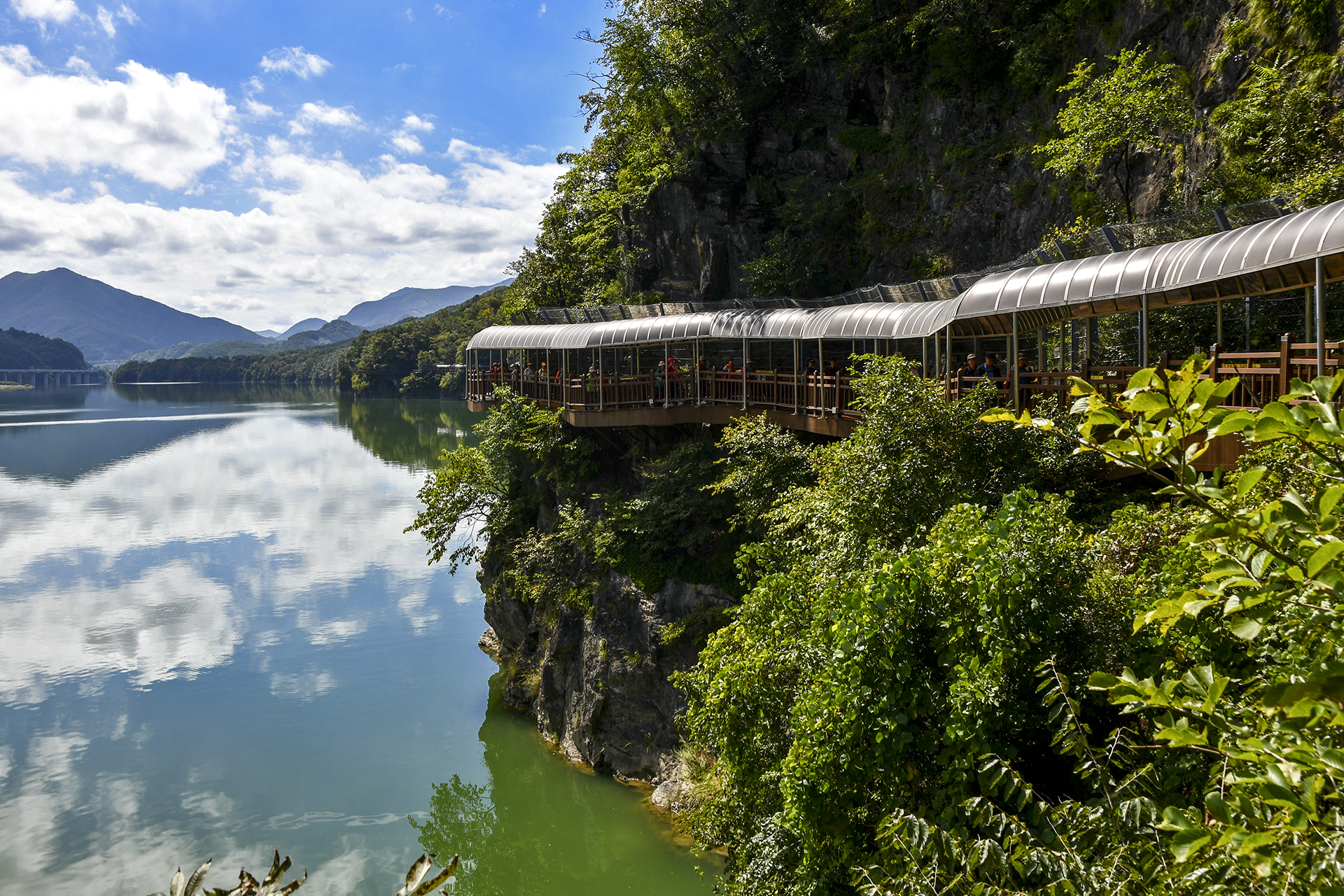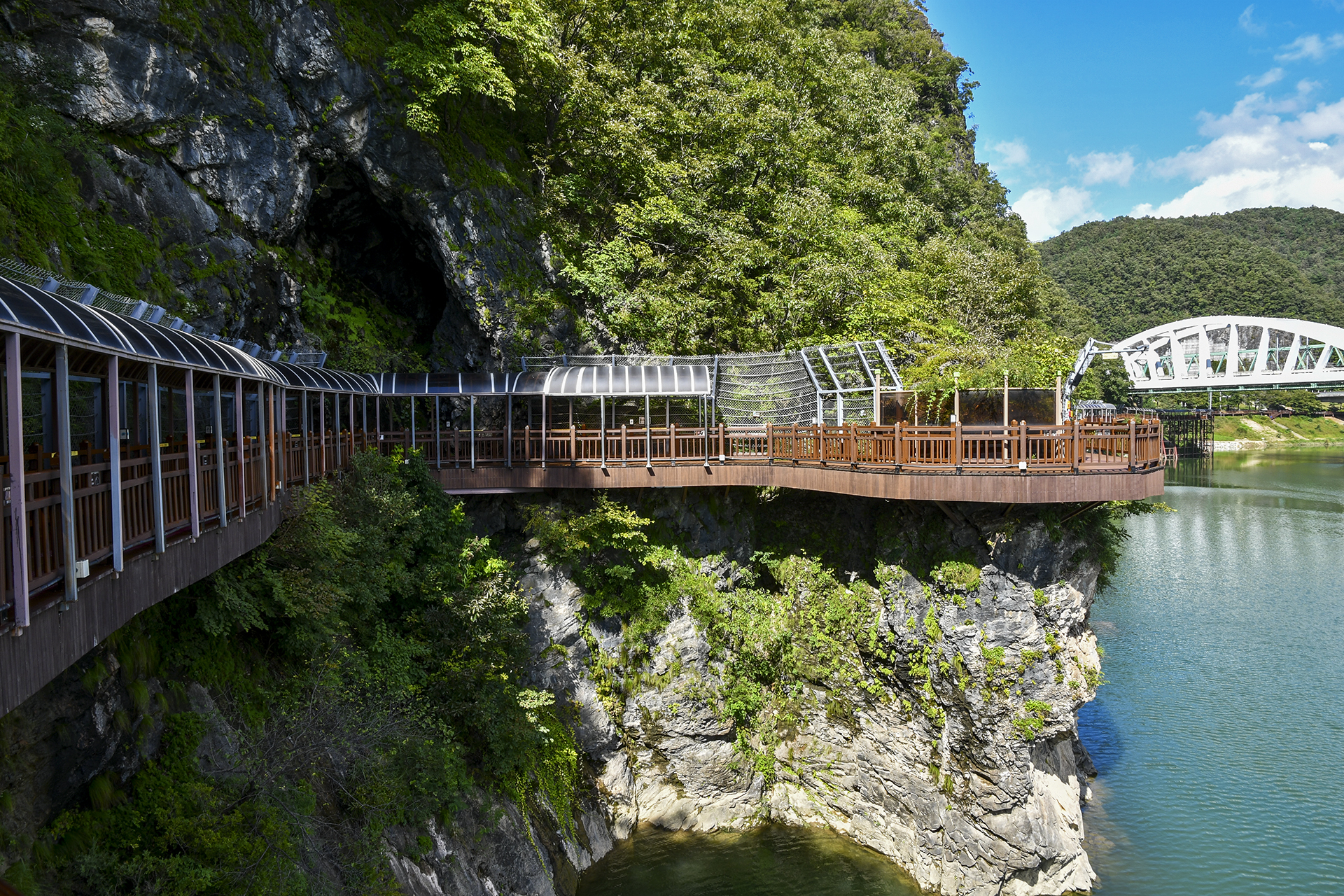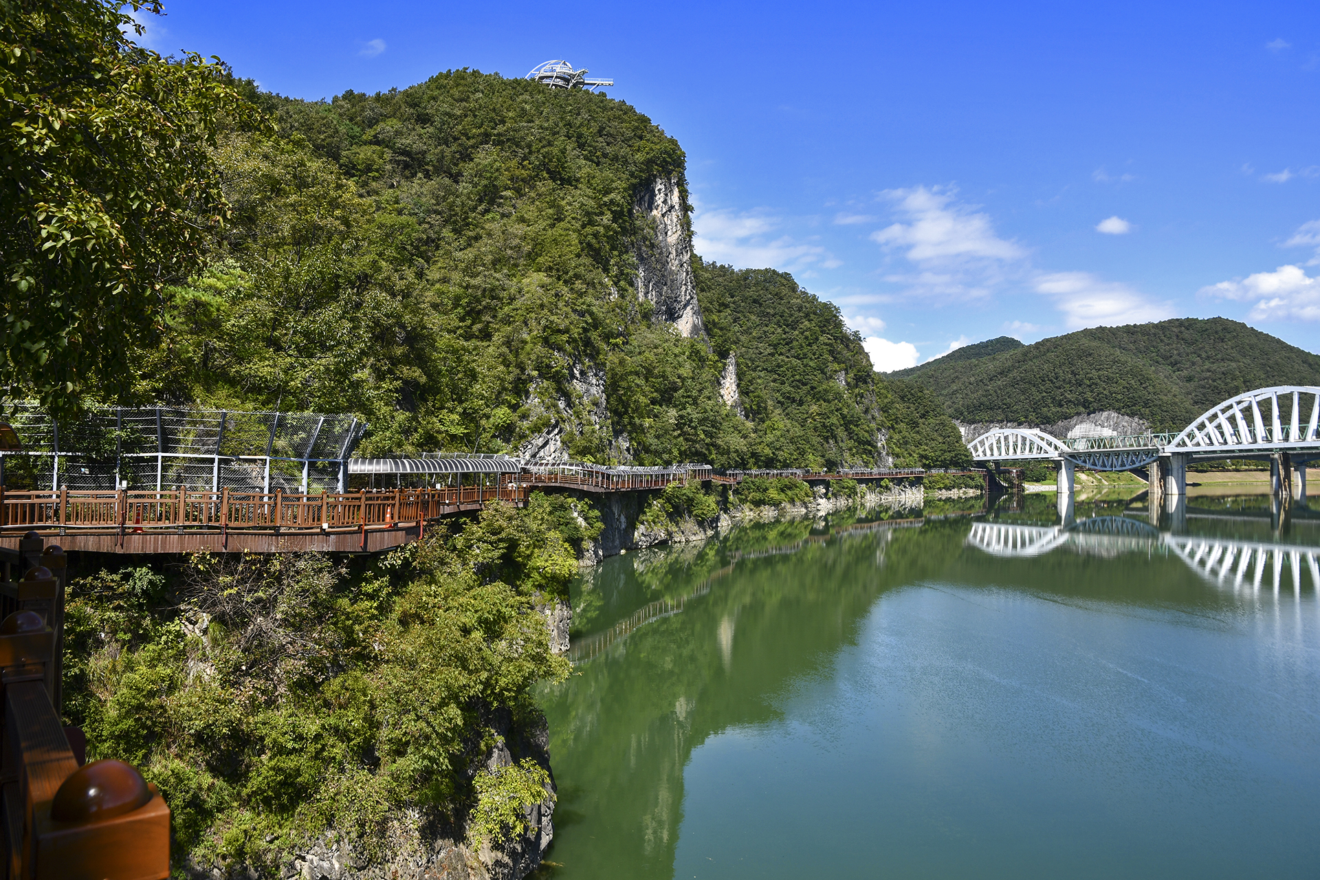 남한강과 어우러지며 암벽에 걸쳐있는 단양강잔도