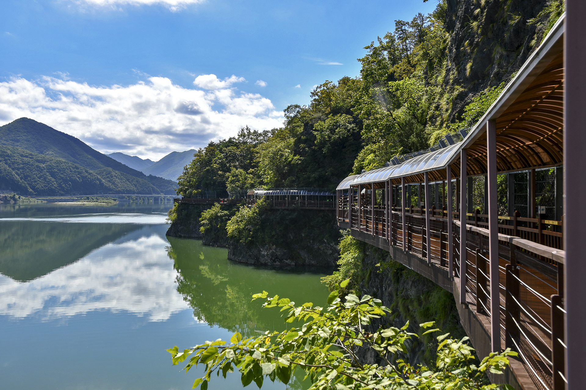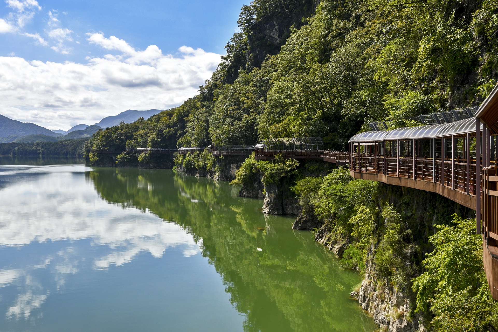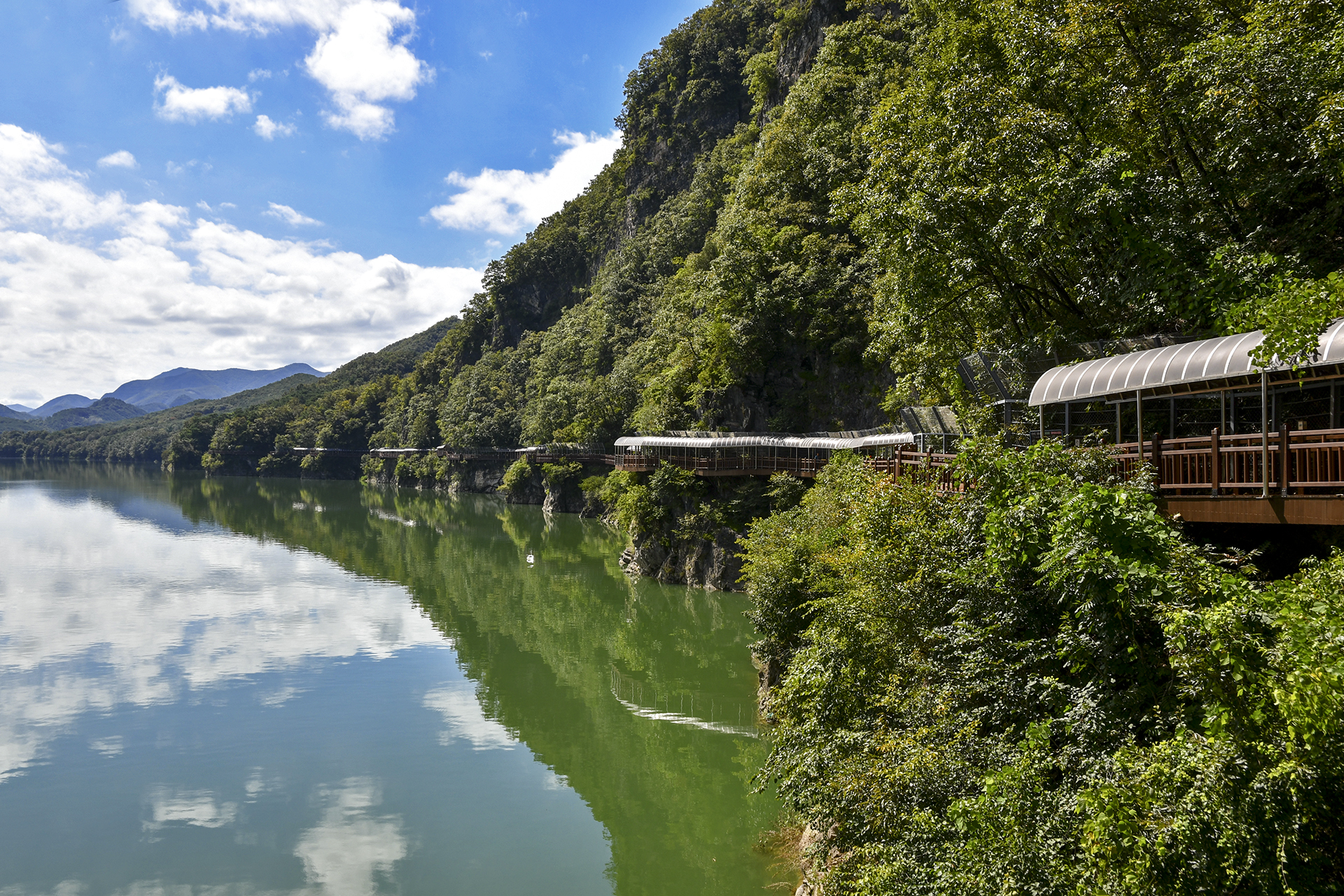 남한강과 어우러지며 암벽에 걸쳐있는 단양강잔도