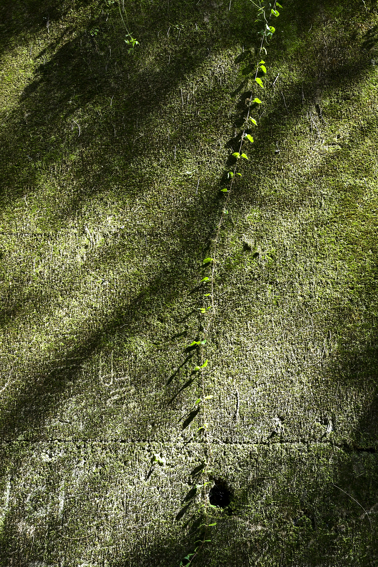 옹벽 물빠짐 구멍에서도 생명이 움터 고개를 내밀었다.