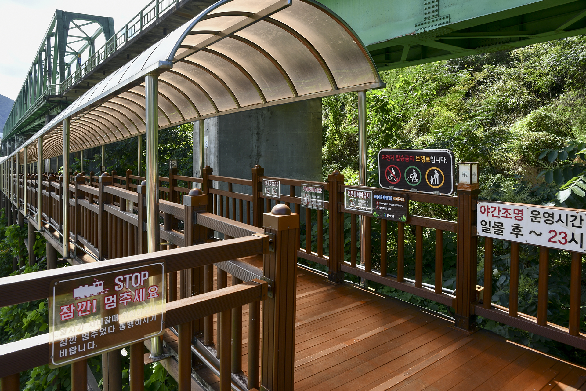 지붕이 설치되어 있어 시야가 조금 답답하기는 하지만 한낮에도 그늘을 걸을수 있다는 점이 맘에 든다.