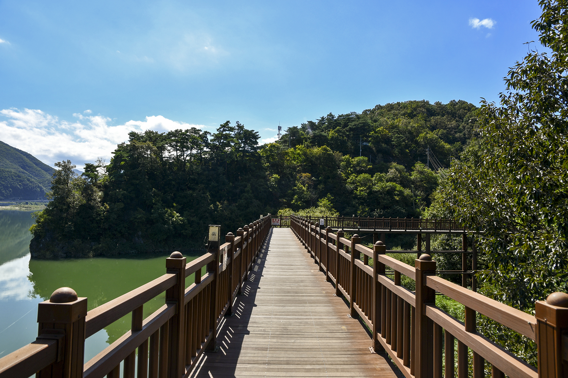 잔도길을 벗어나면 만천하 스카이워크 가는 길과 느림보강물길이 나뉘게 된다.
