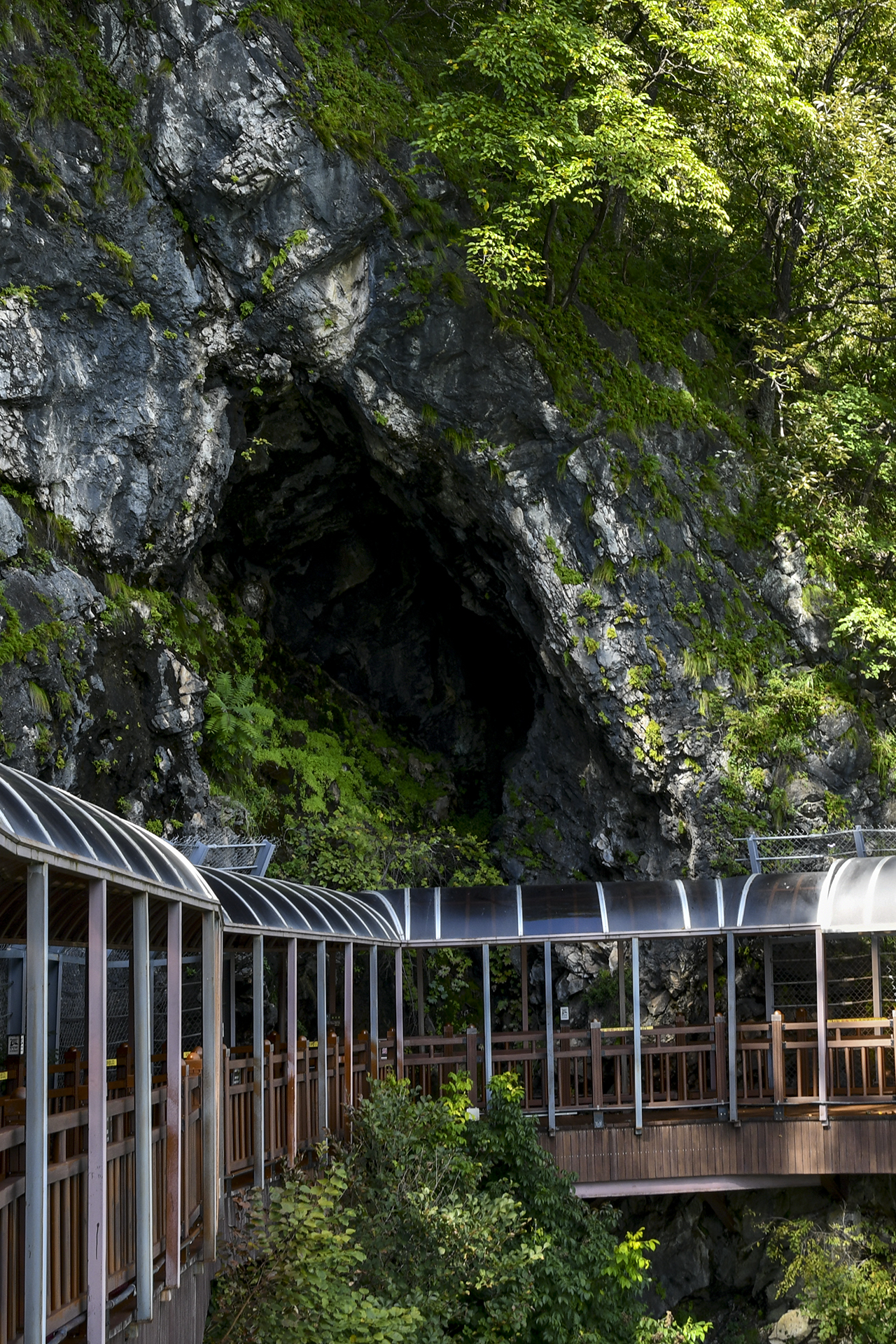 지나온 길에 지붕이 있어 못보고 지나칠 뻔했는데 돌아본 풍경에 절벽동굴을 발견했다.