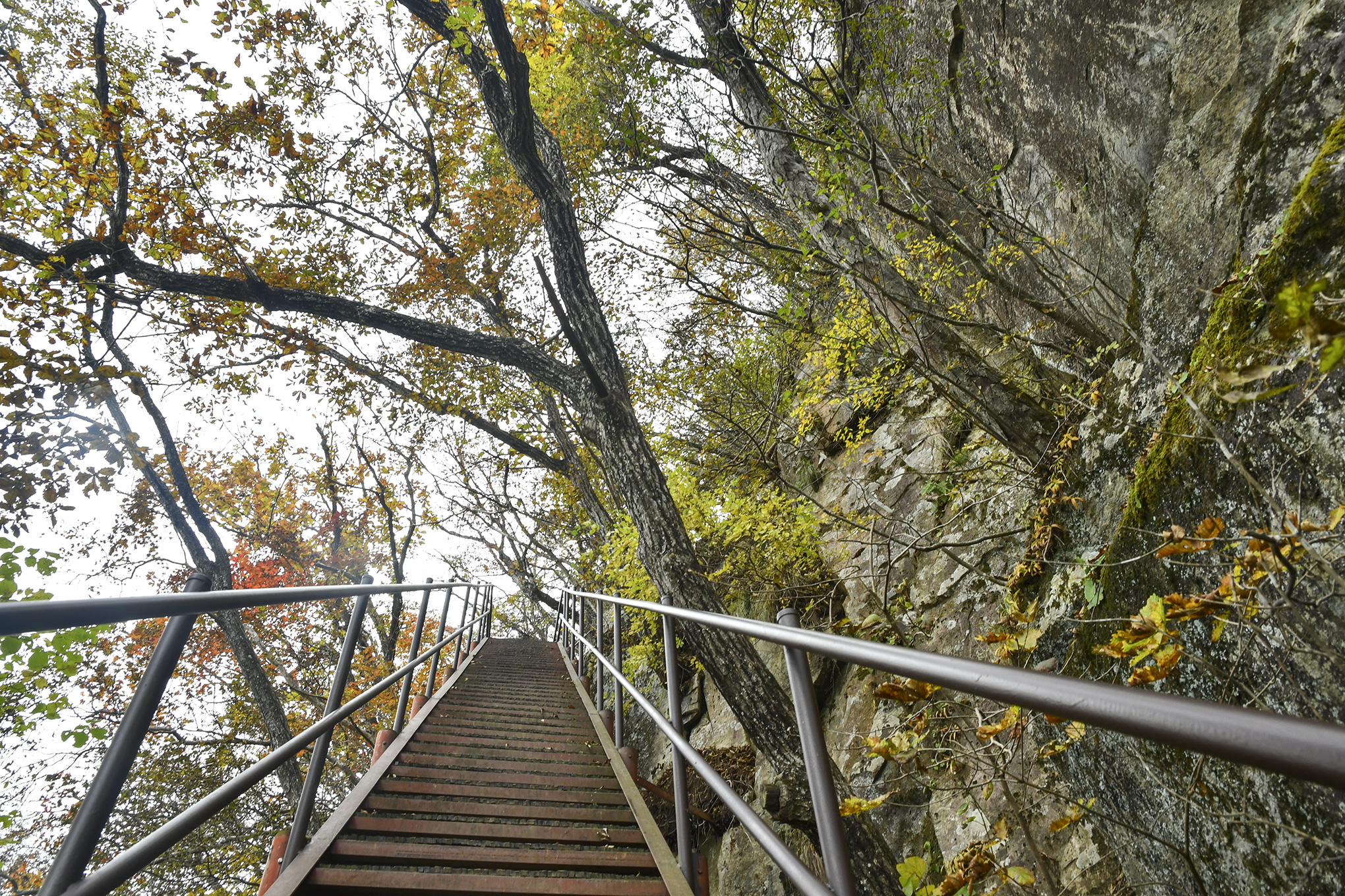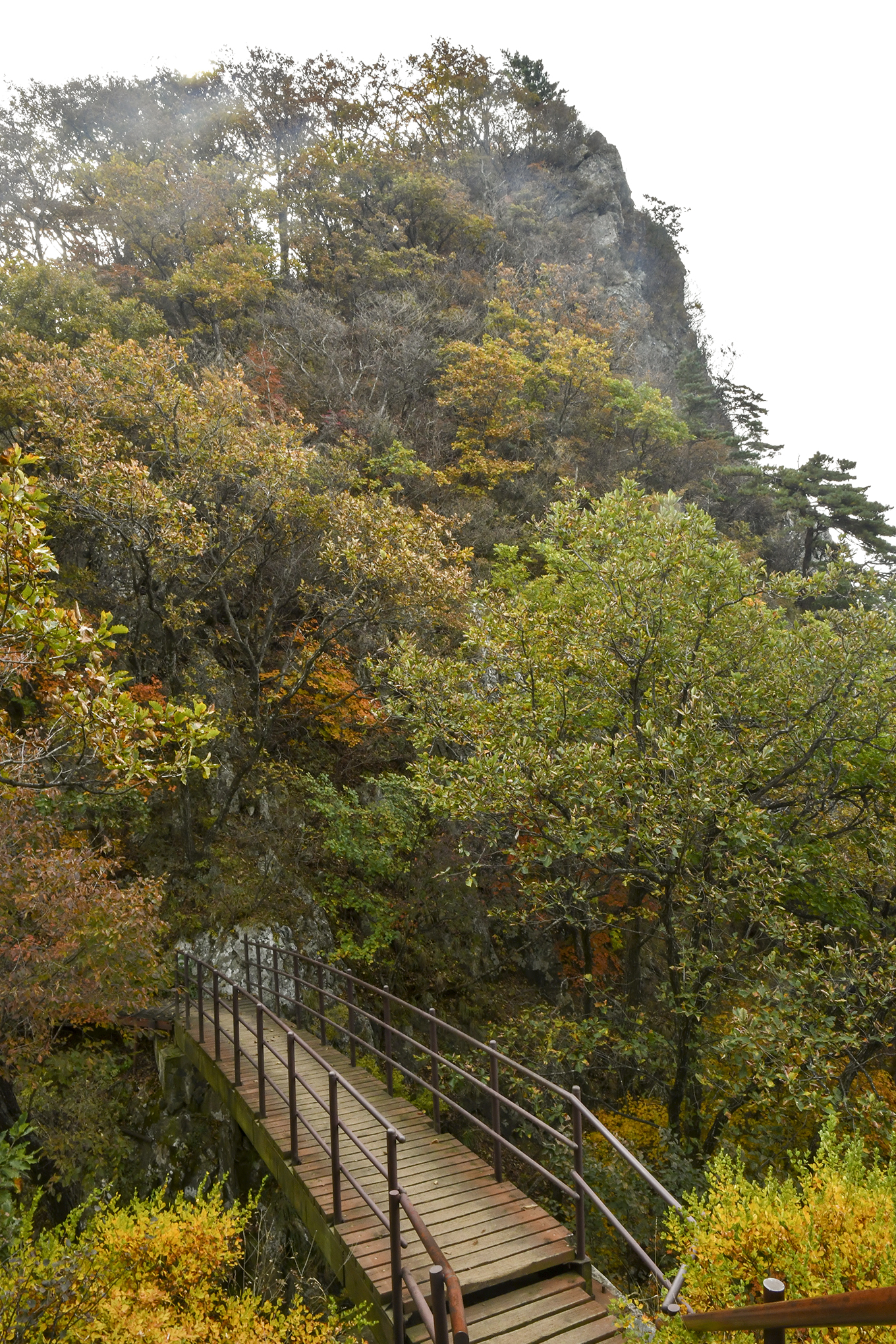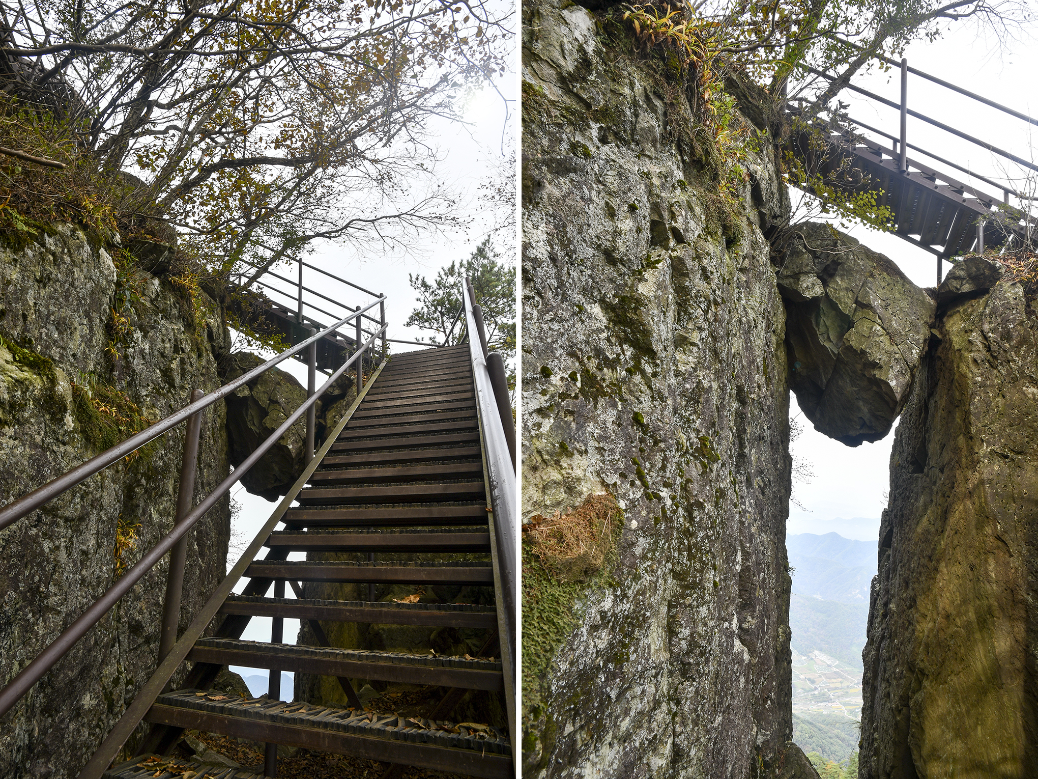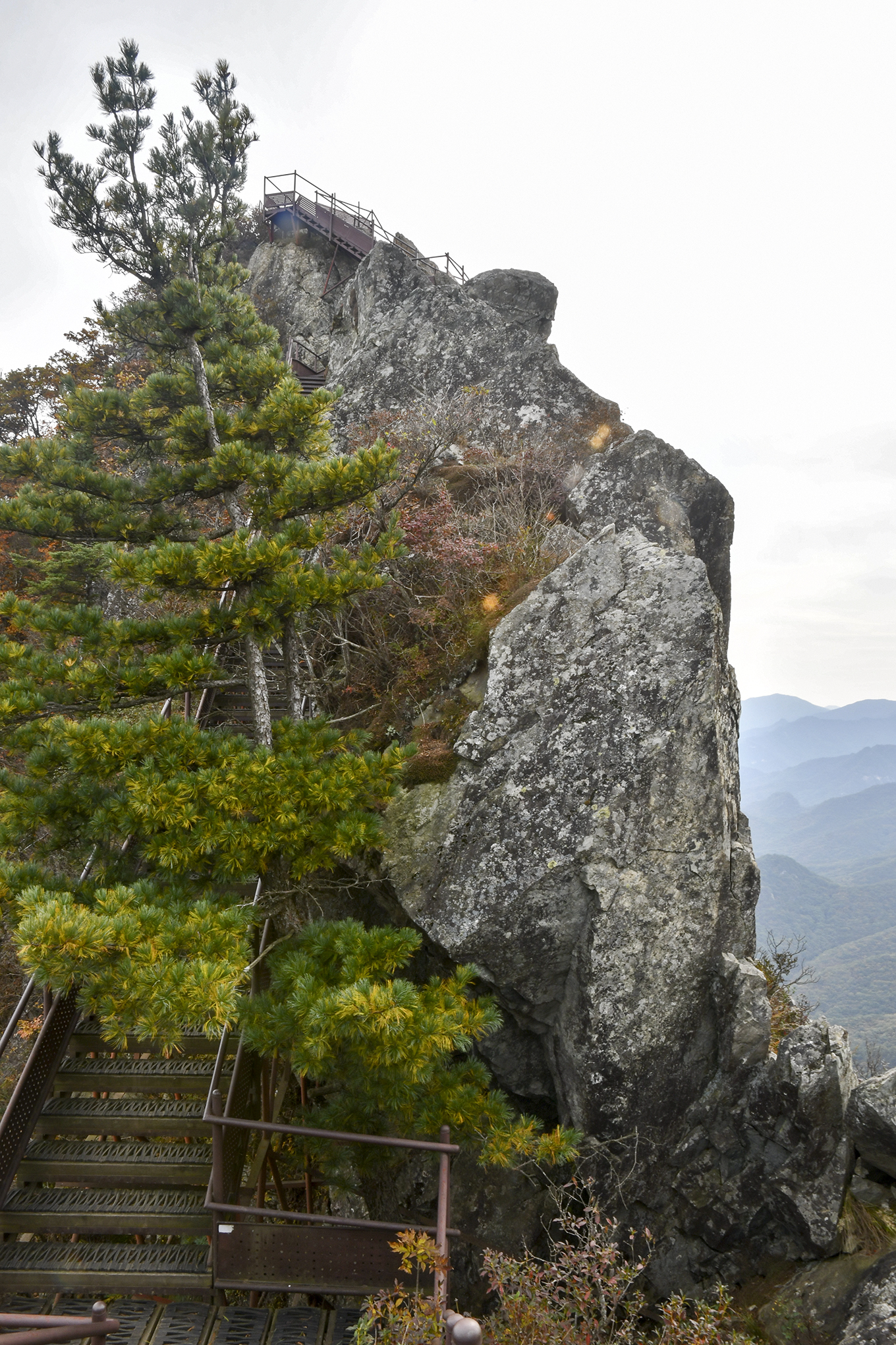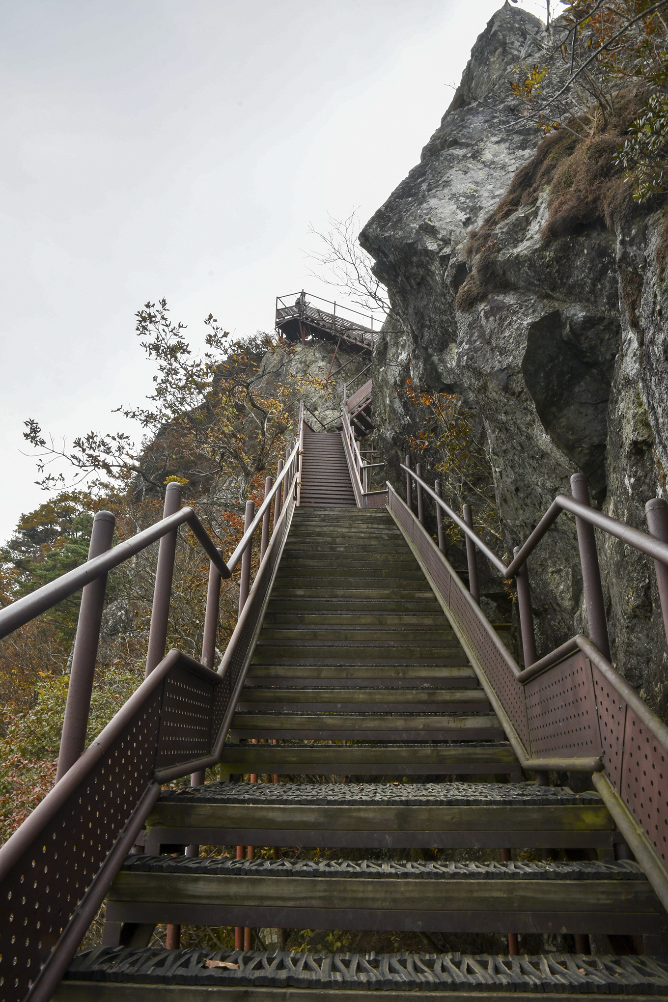 영봉을 이루는 암벽 높이만도 150m가 되는데, 그 기암 절벽 사이로 계단으로 이어 놓았다.