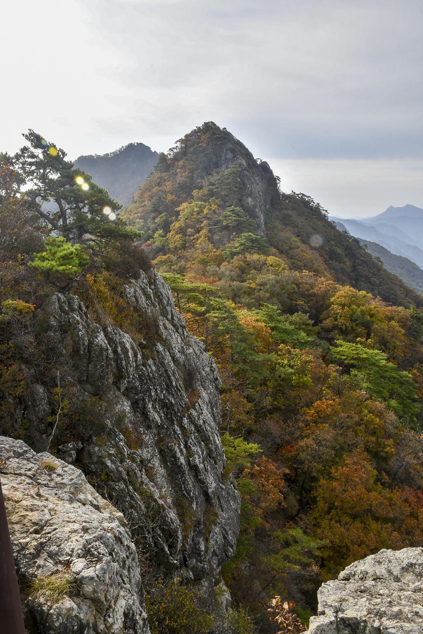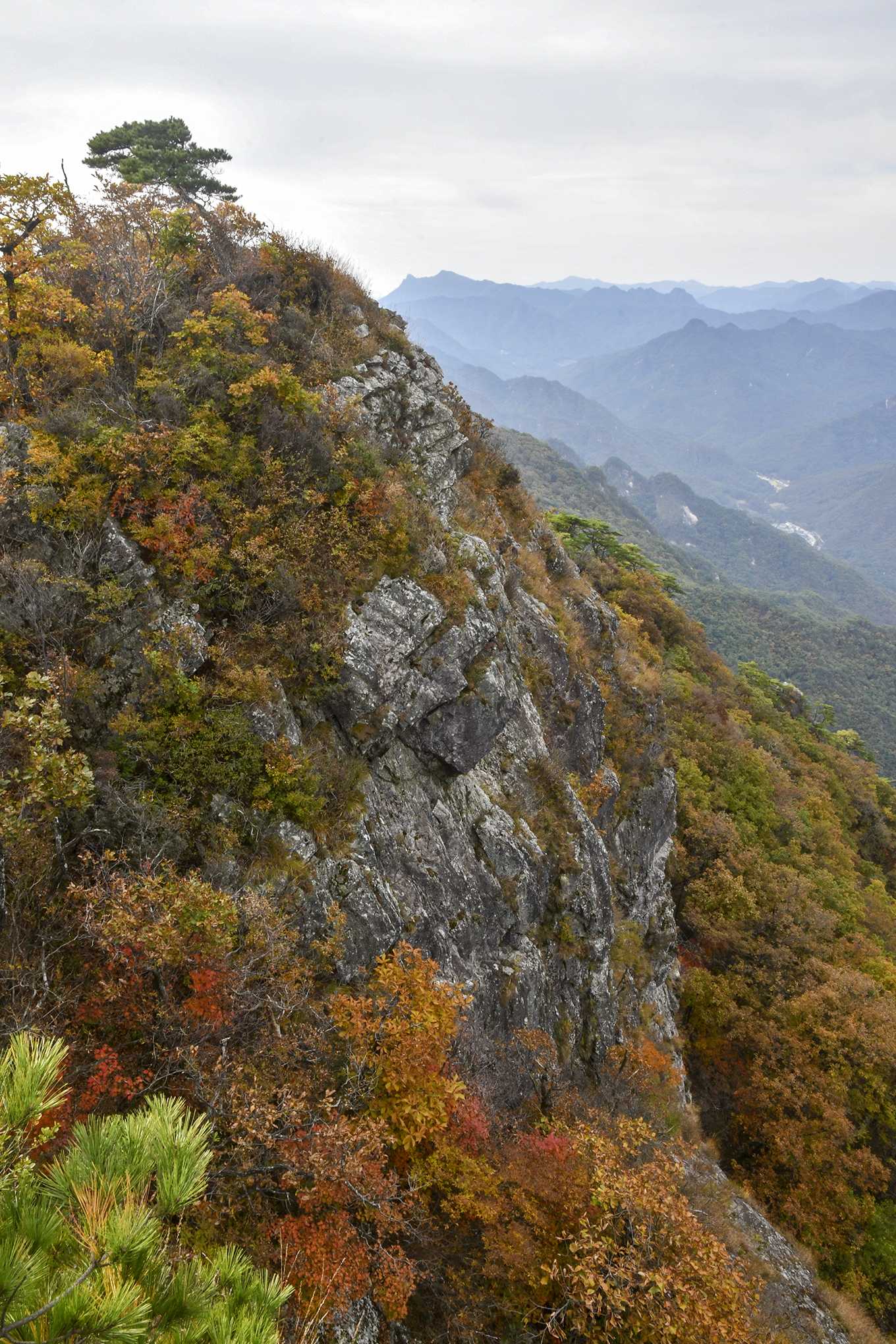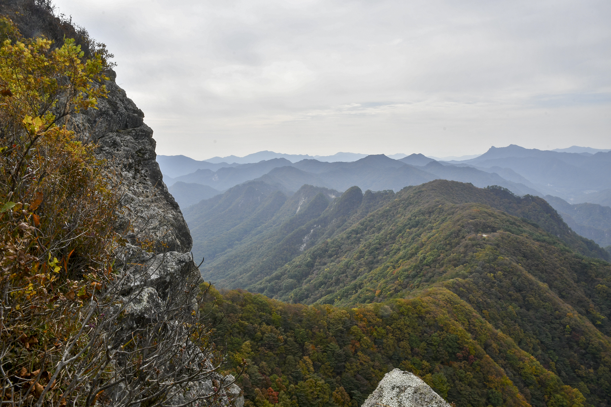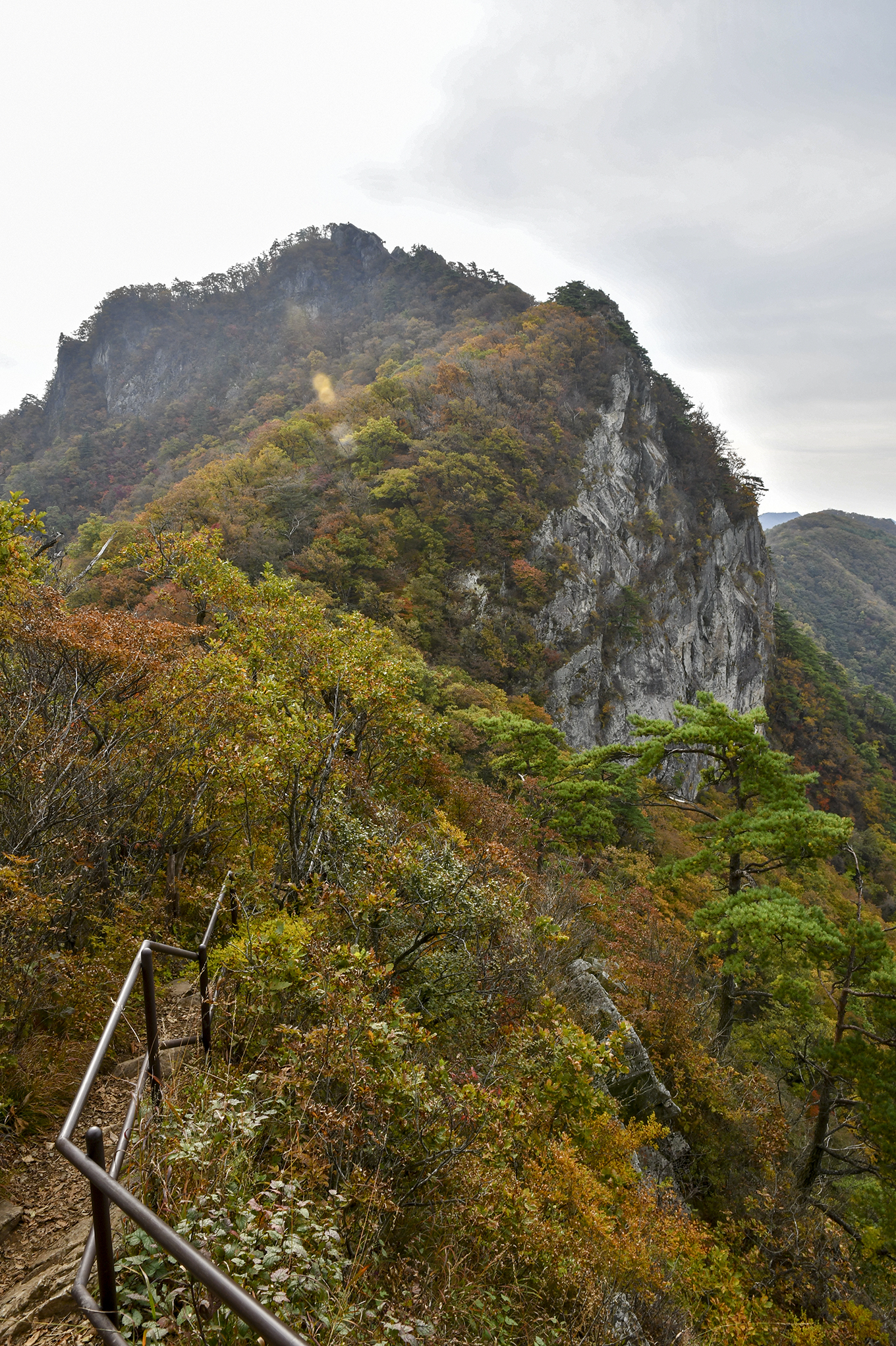 중봉에서 이어지는 기암도 그 모양새가 대단하고, 아래로 아득하게 단풍의 절경이 펼쳐진다.