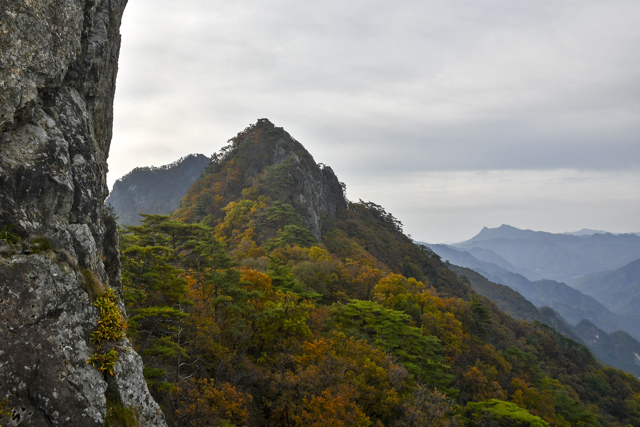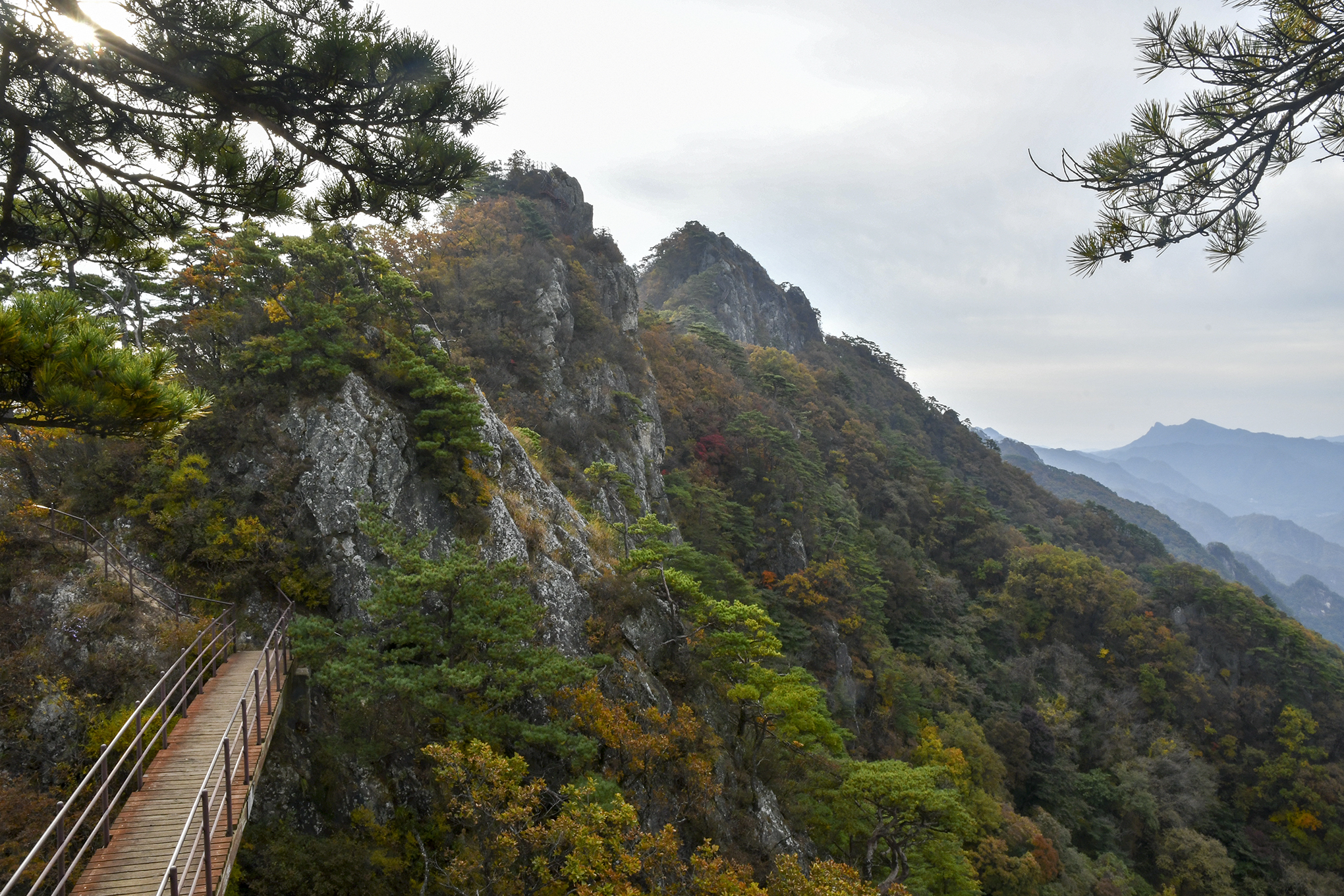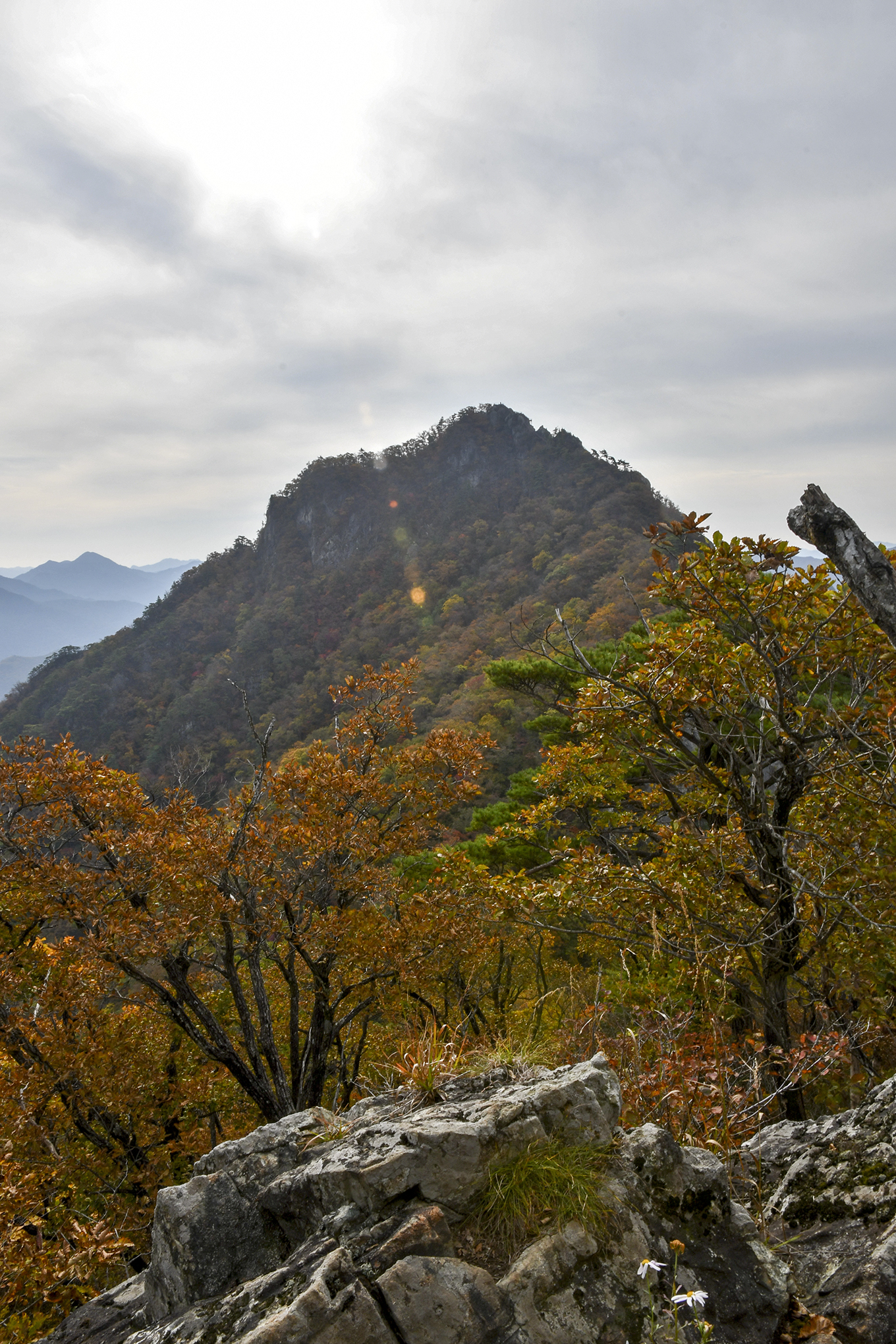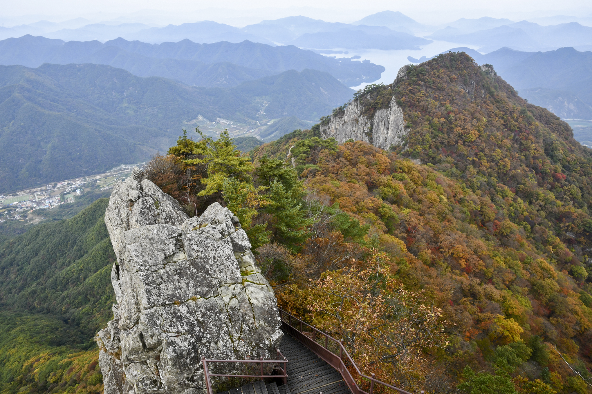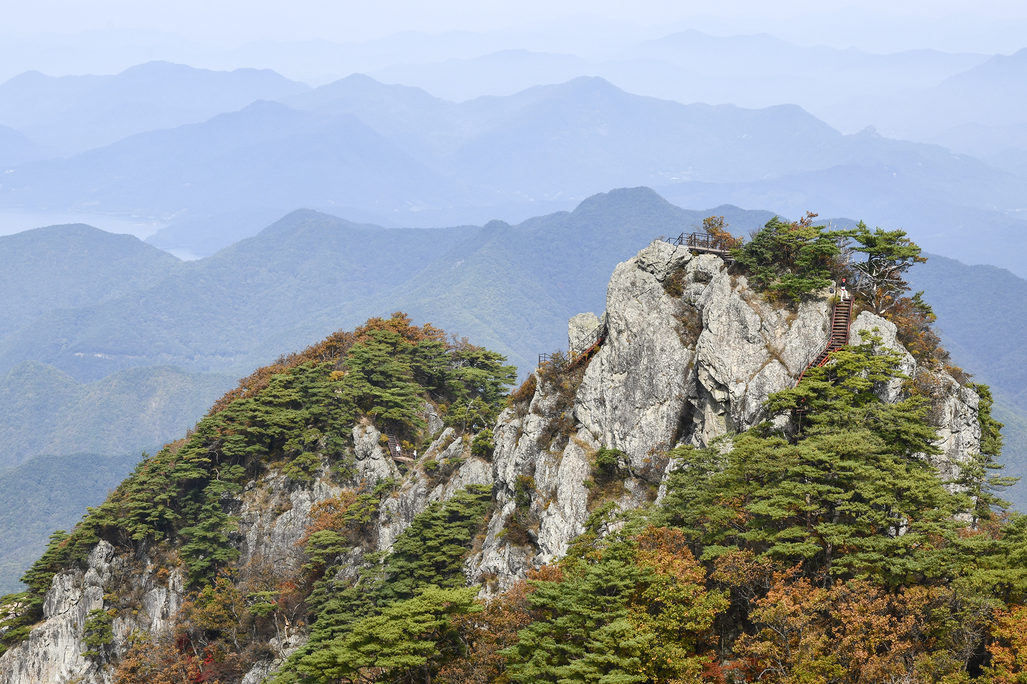 중봉에서 이어지는 기암도 그 모양새가 대단하고, 아래로 아득하게 단풍의 절경이 펼쳐진다.