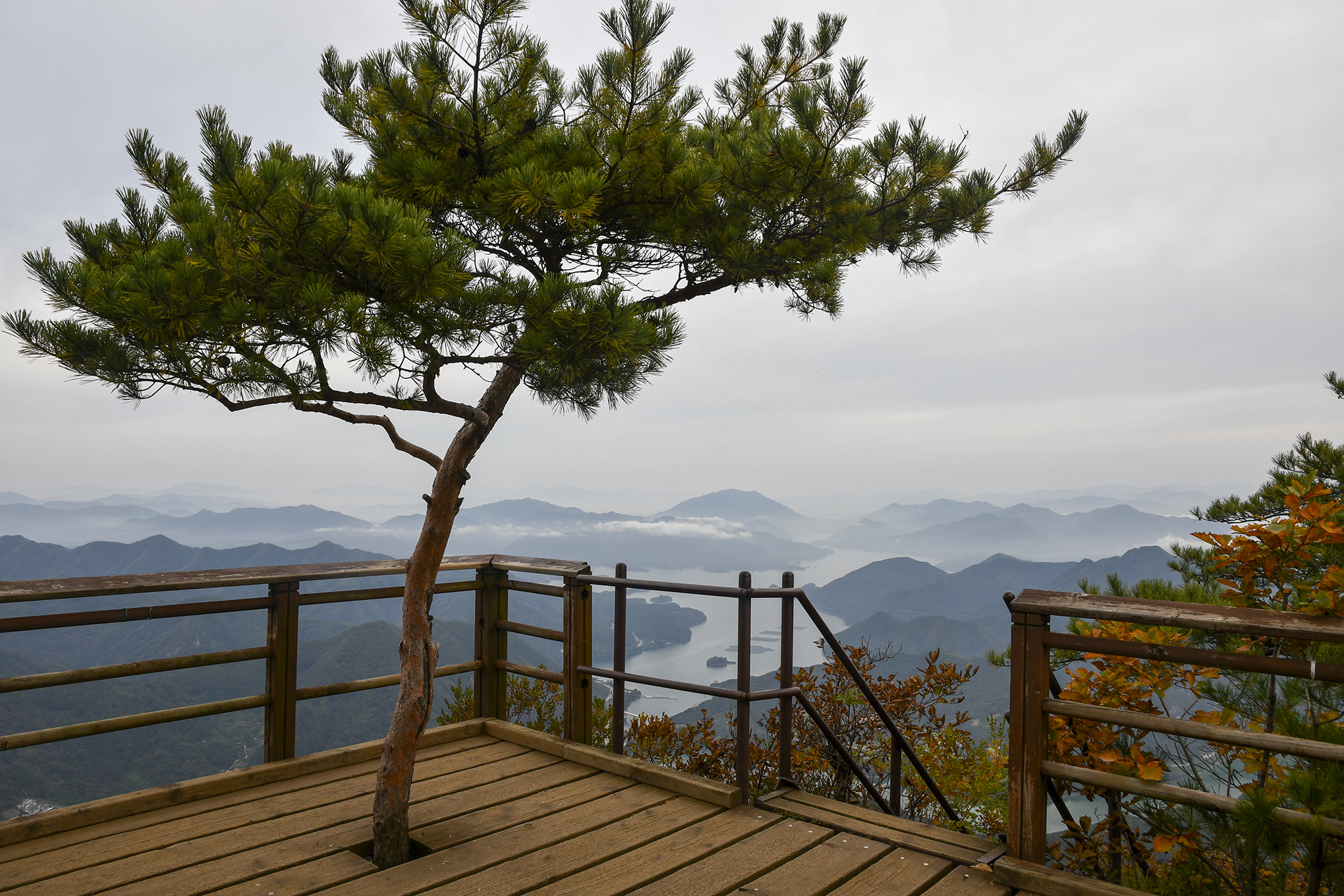 소나무의 멋진 휘어짐이 천상의 분재와 같아 보인다.