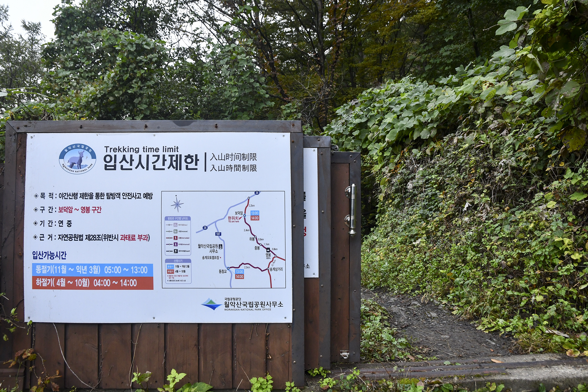 * 입산가능 시간 : 동절기(11~3월) 05:00 ~ 13:00, 하절기(4~10월) 04:00 ~ 14:00