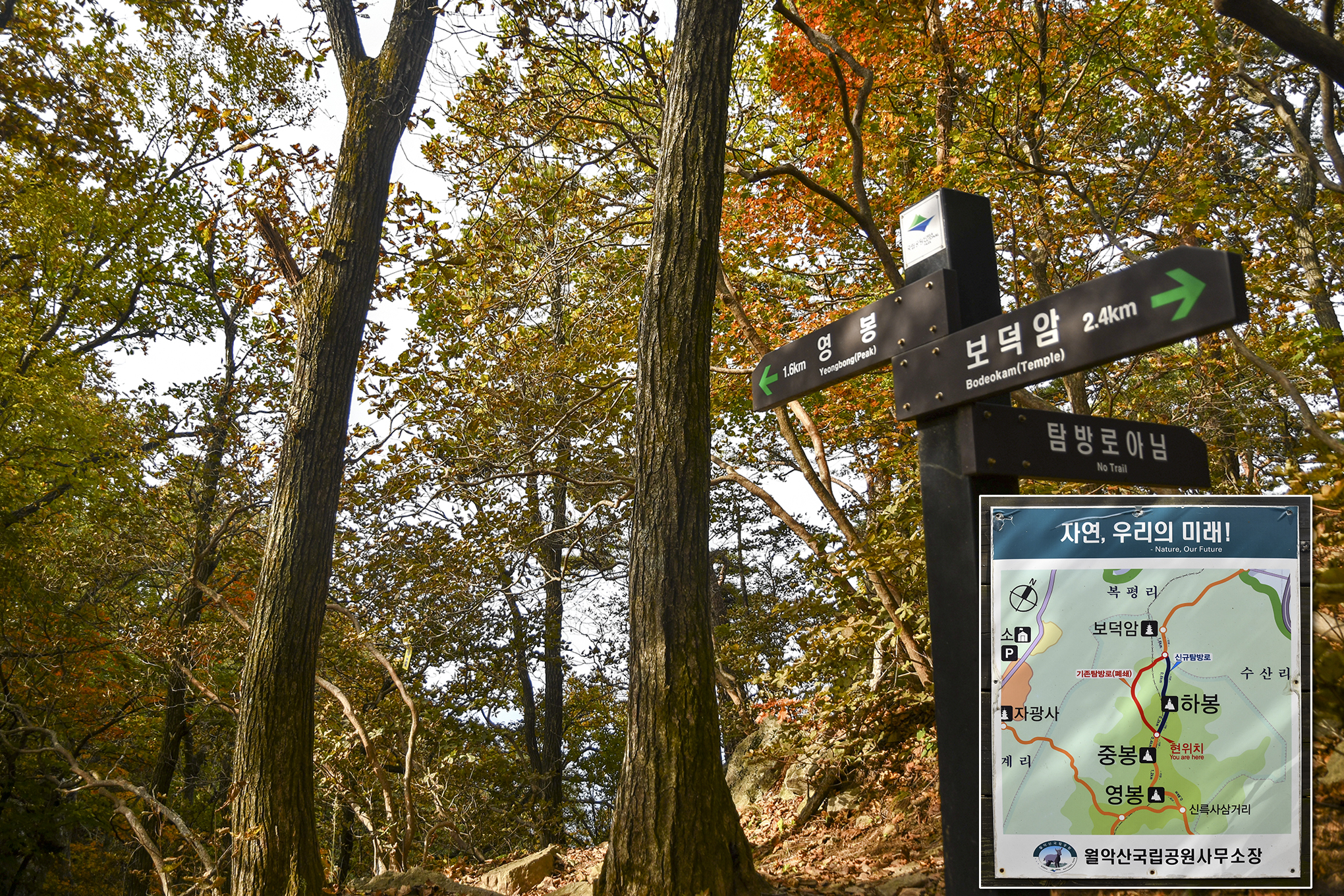 기존탐방로가 폐쇄되었고, 하봉으로 이어지는 신규탐방로 안내가 되어 있다.