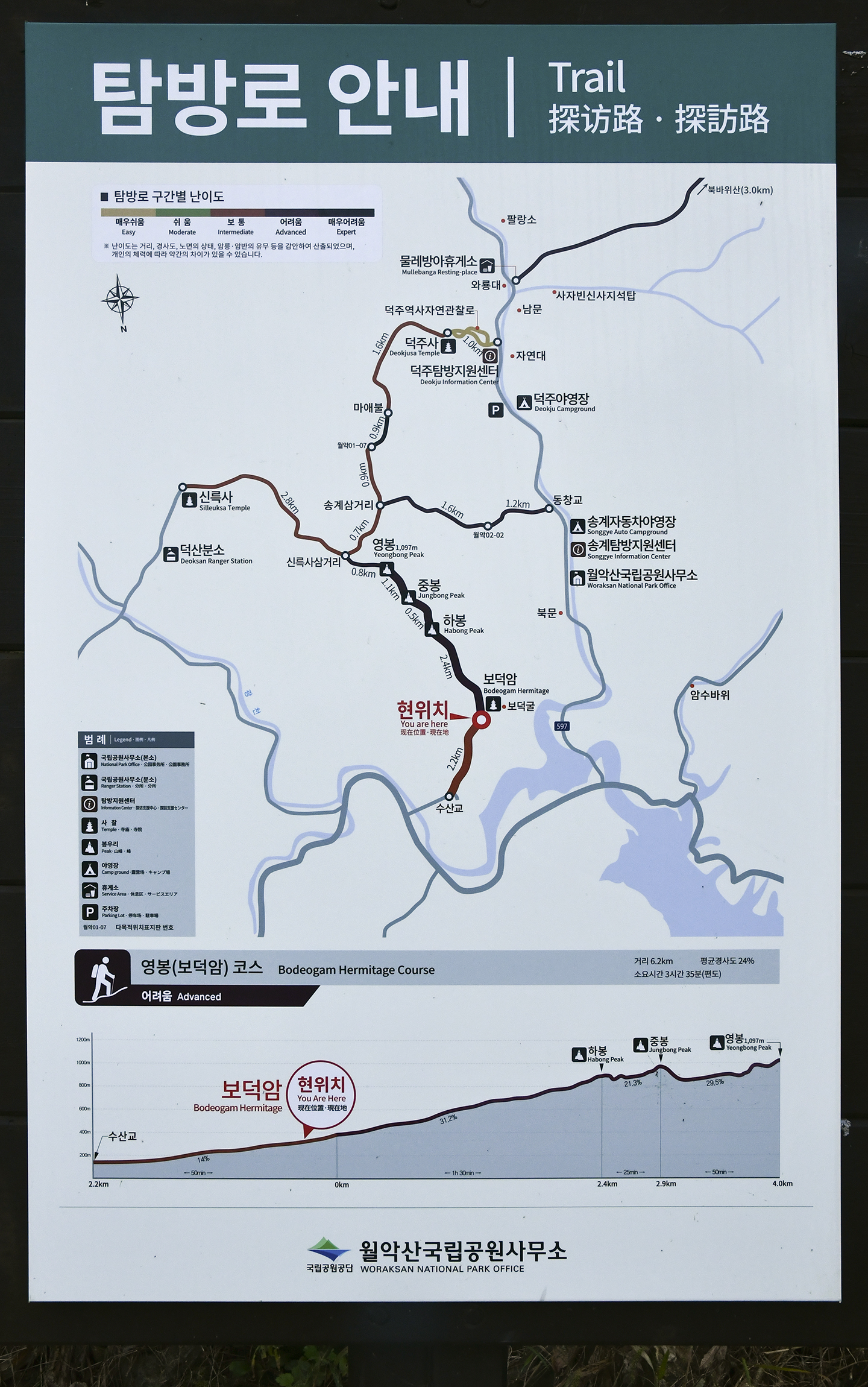 보덕암 코스 : 주차장 - 보덕암 - 전망대 - 하봉 - 중봉 - 영봉 - 보덕암 - 보덕굴 - 주차장