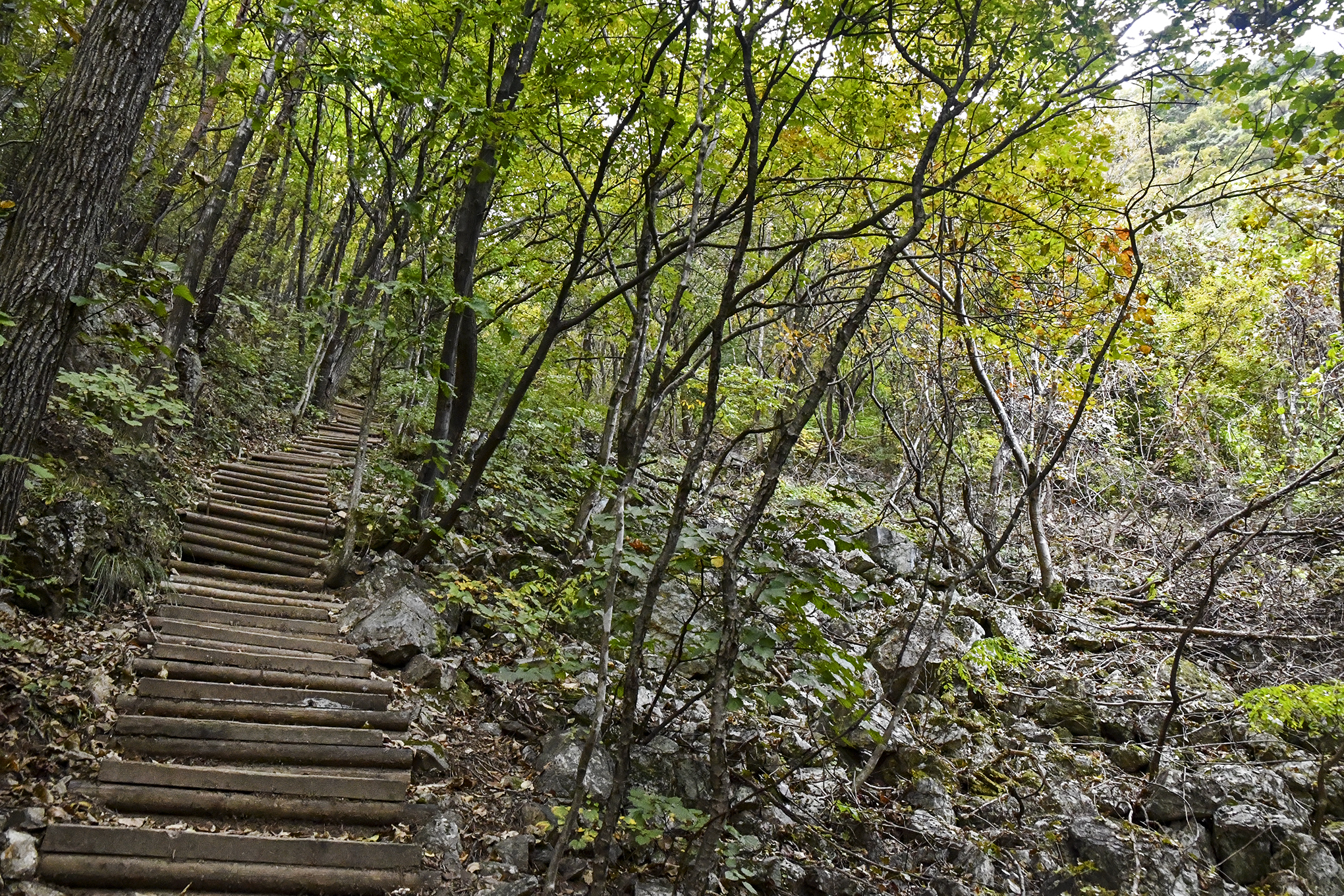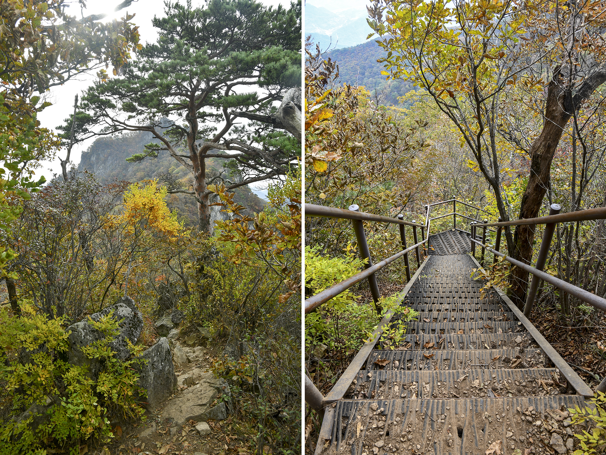 계단은 저 끝이 다인것 같지만 올라가면 꺾어지면서 또 가파른 계단이 연속되는 패턴이 이어진다.