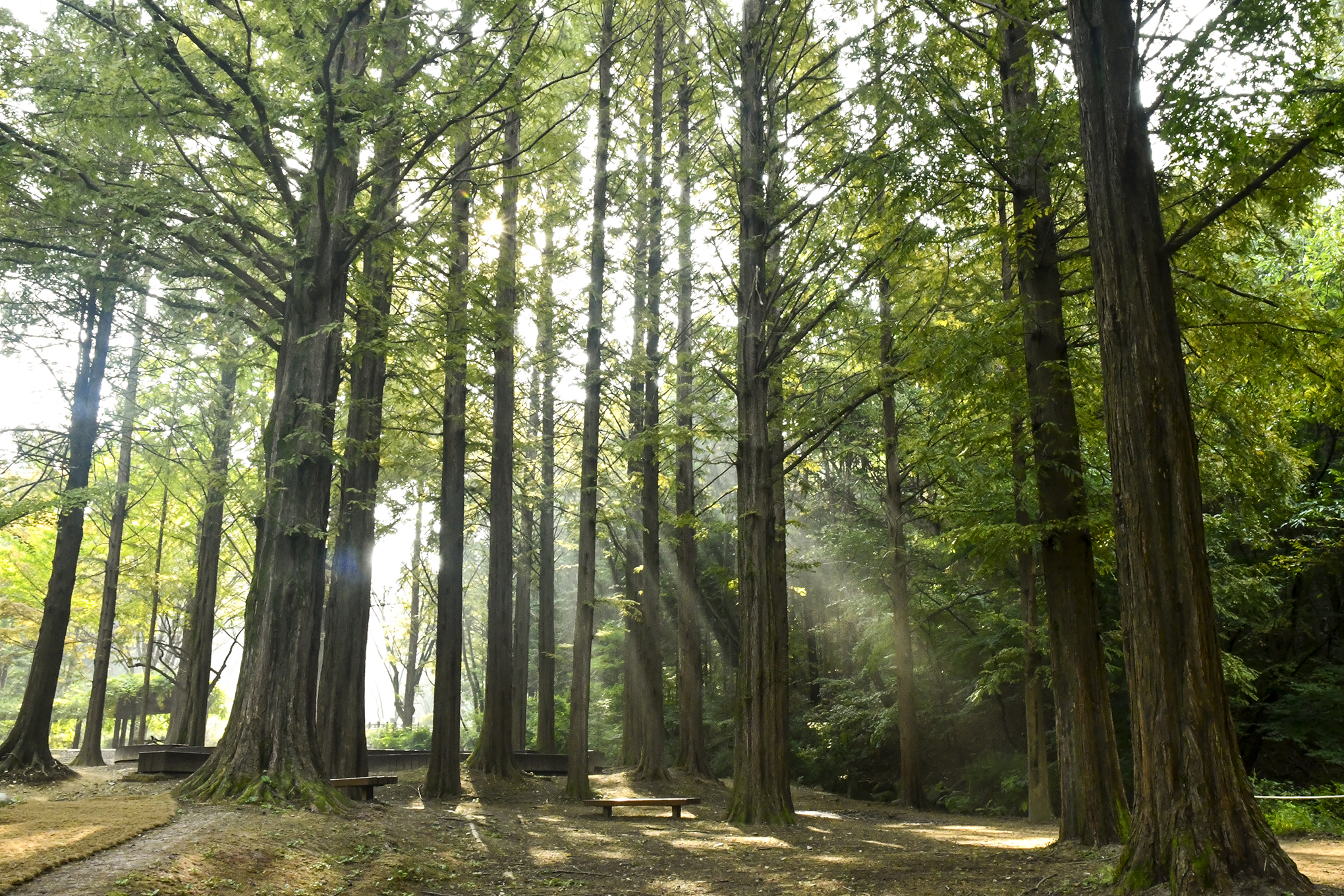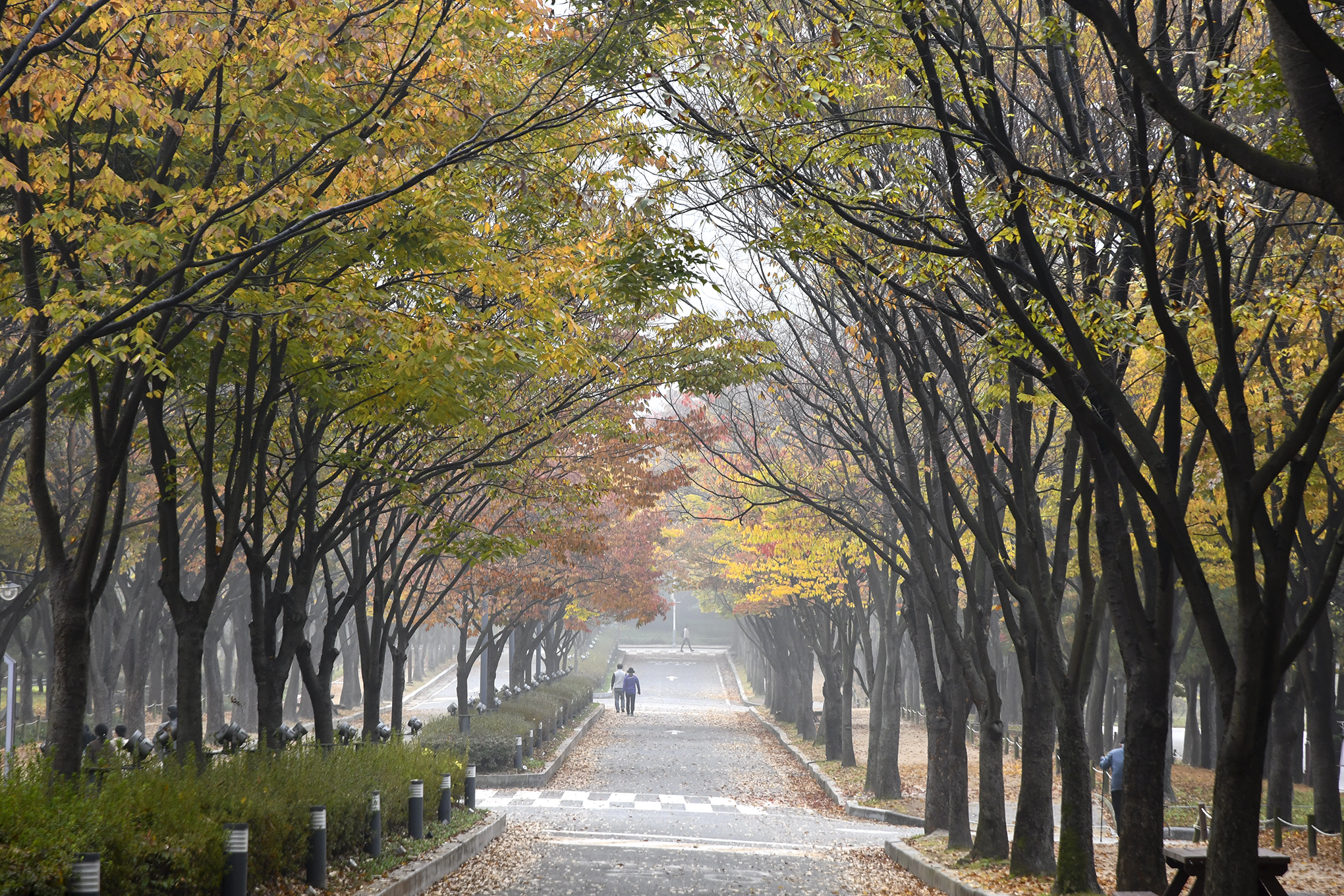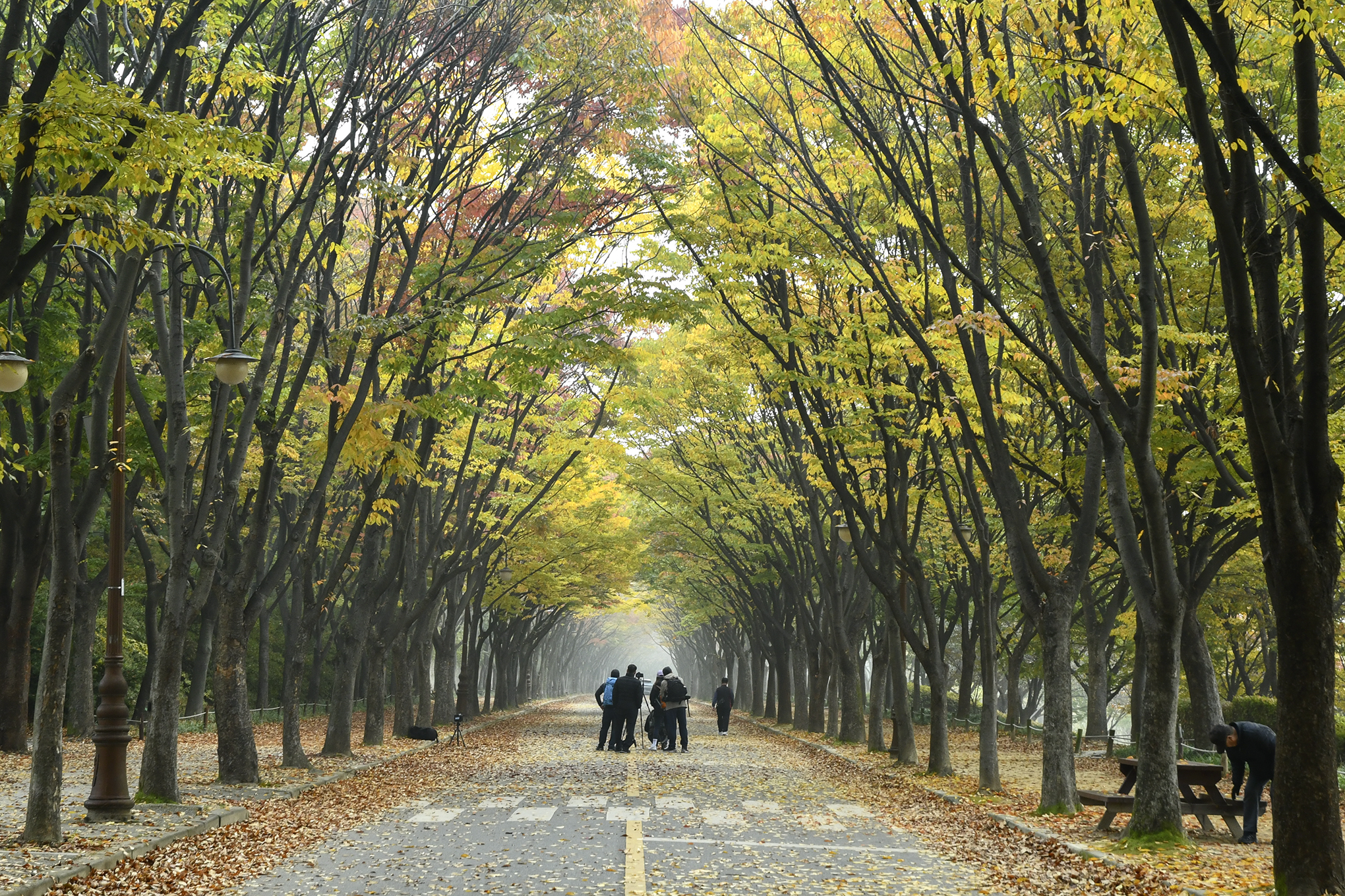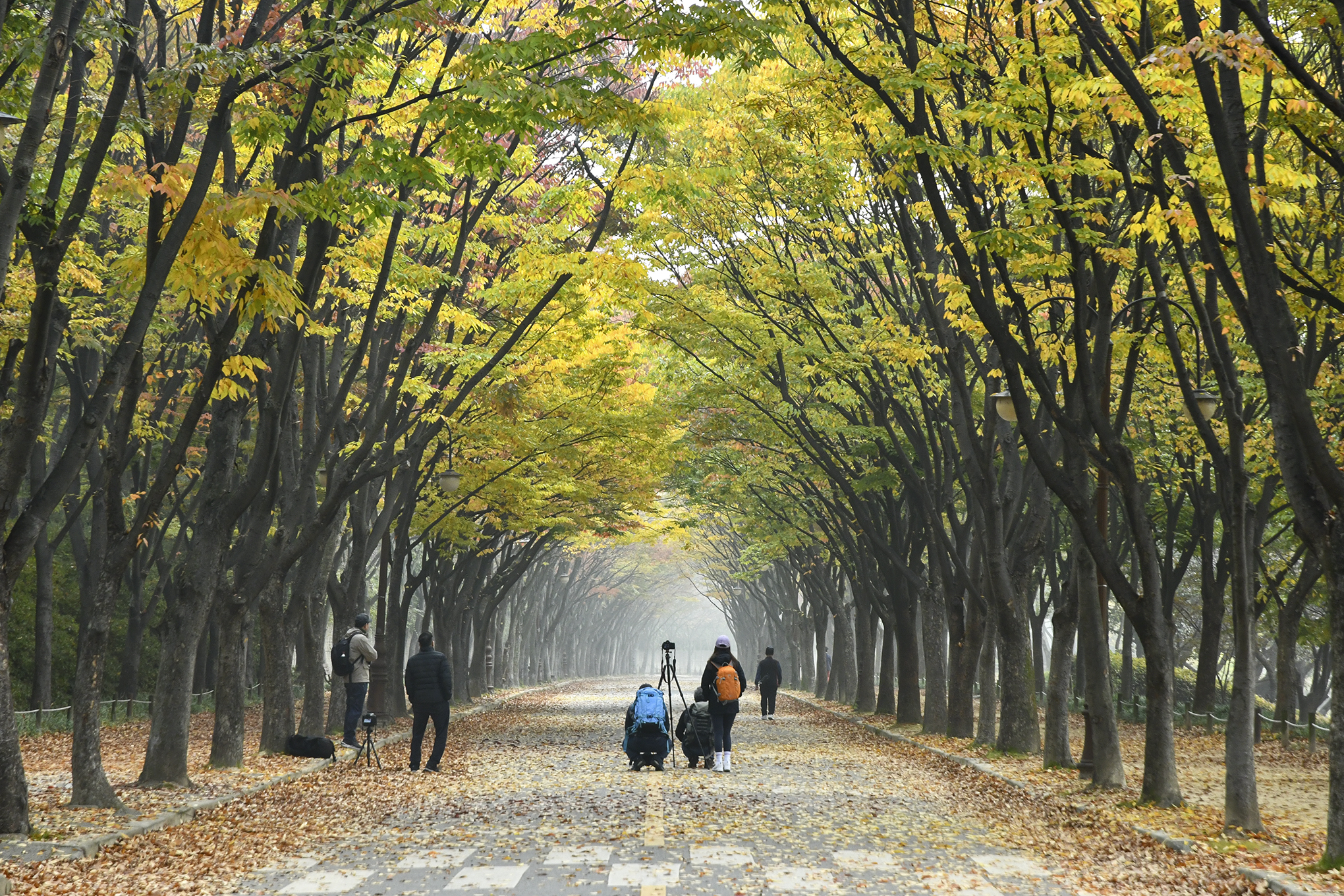백범광장을 지나 메타세콰이어길에서도 빛내림 담기에 좋은 장소다.