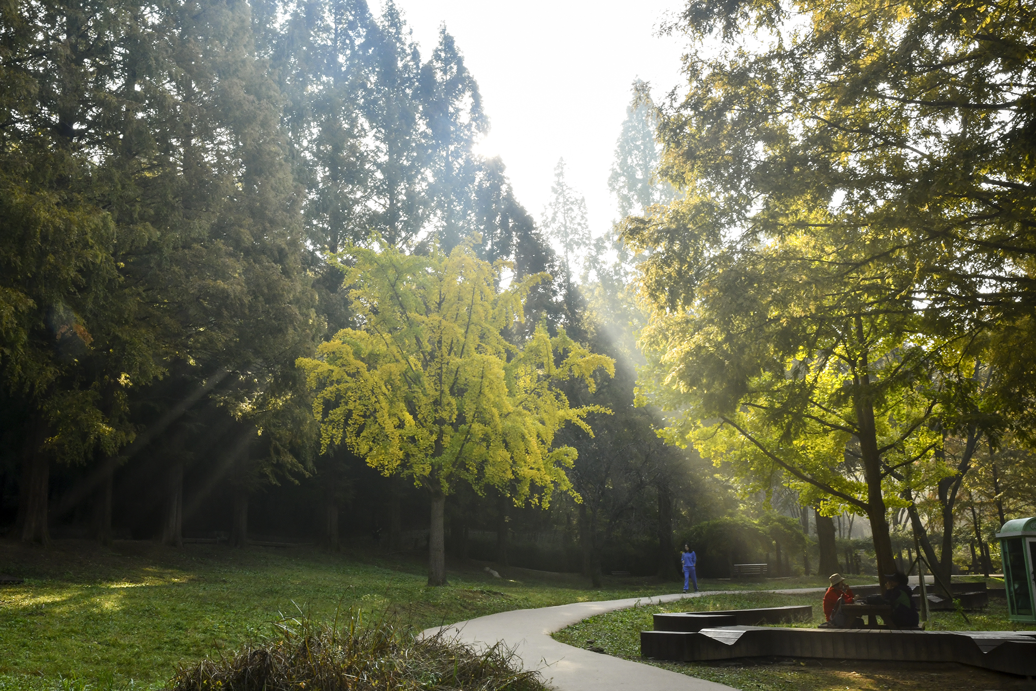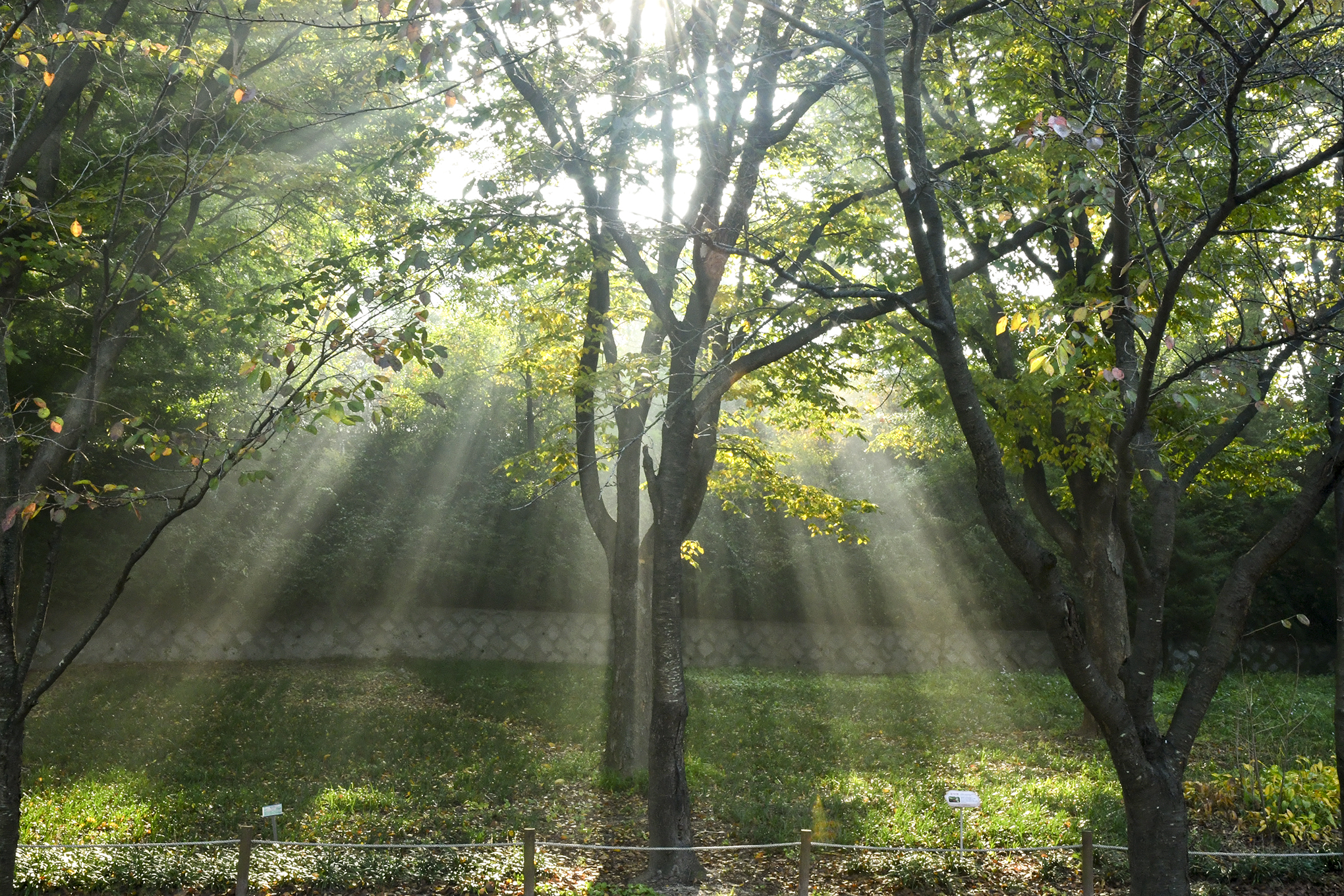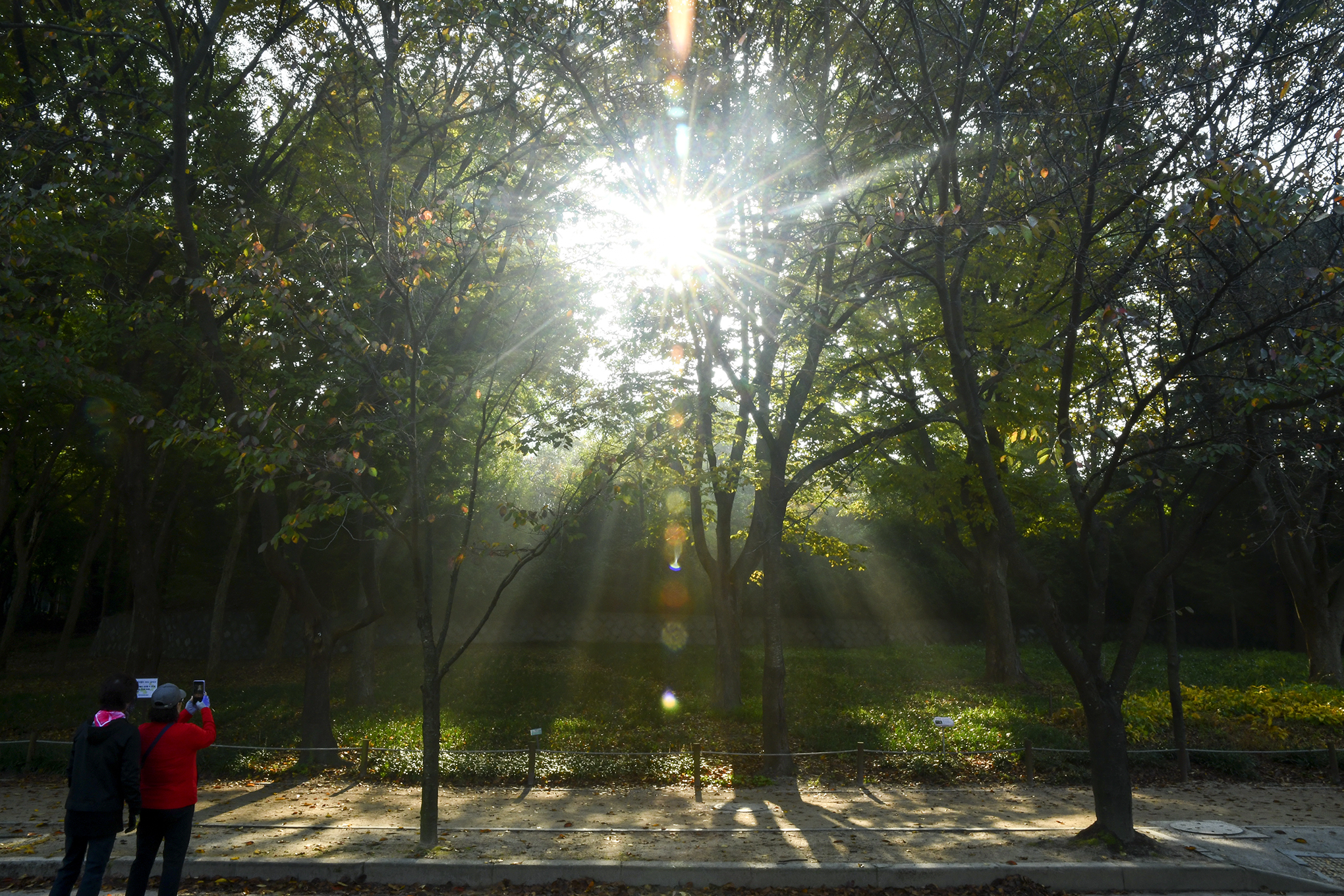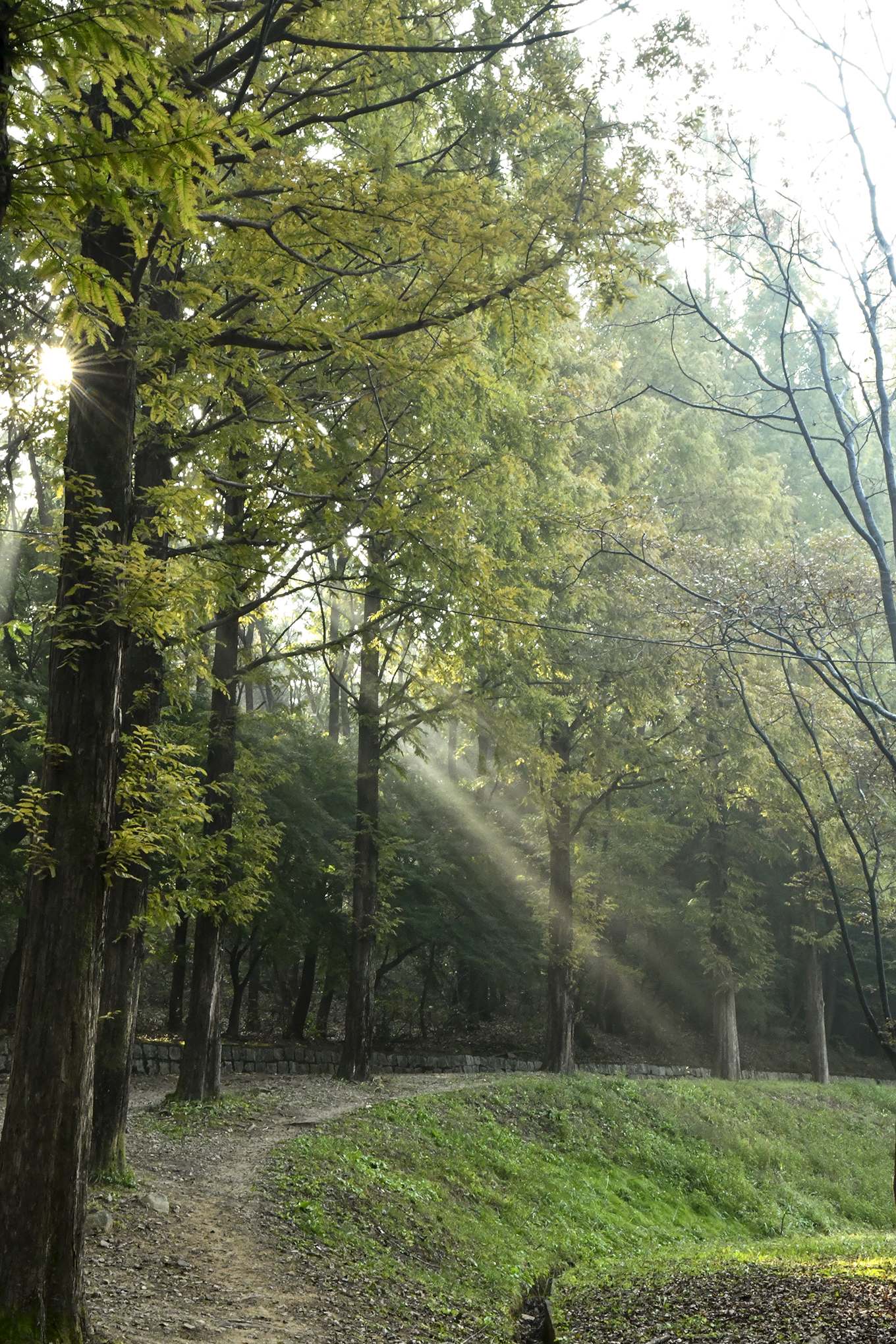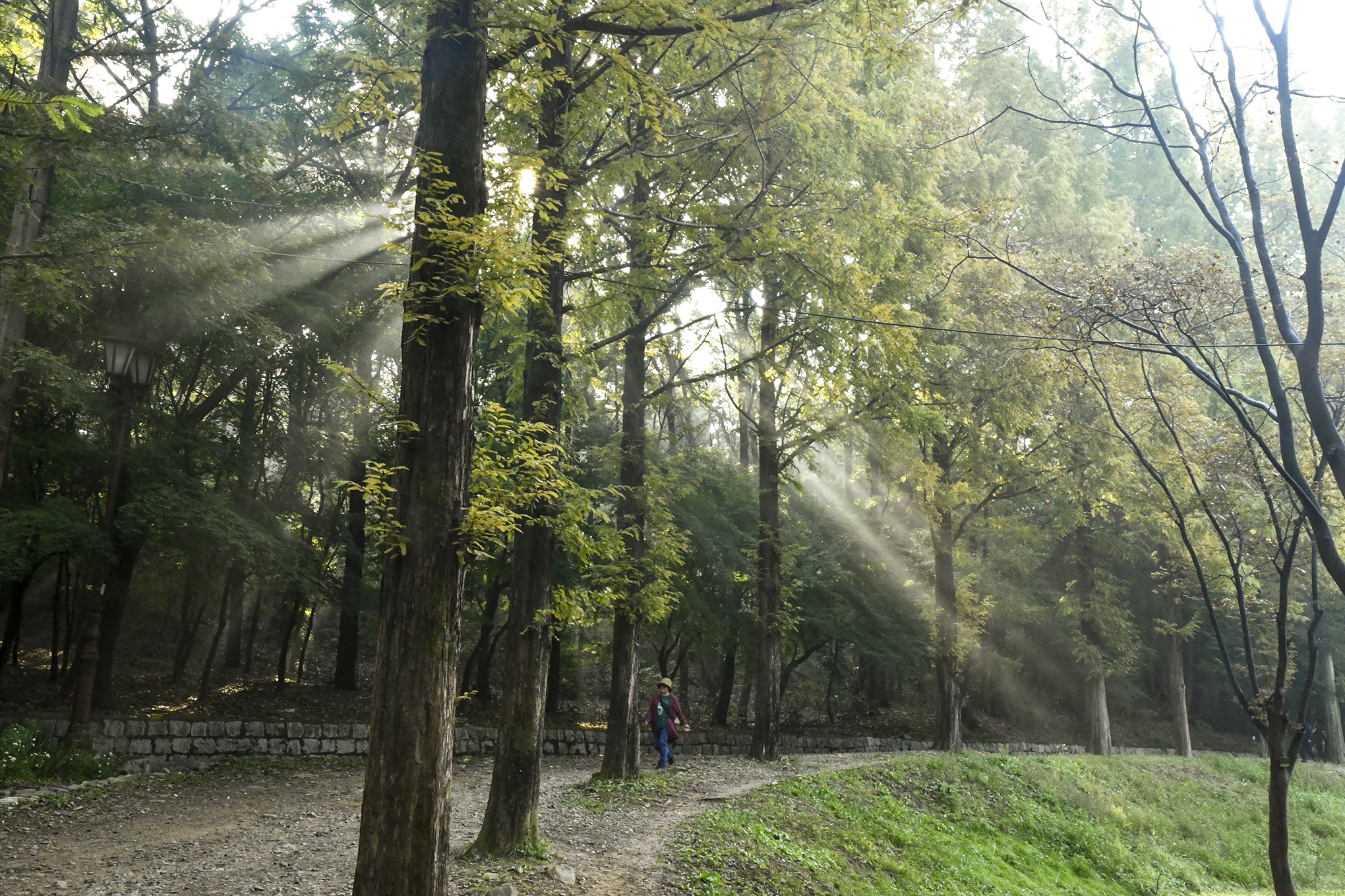 백범광장을 지나 메타세콰이어길에서도 빛내림 담기에 좋은 장소다.