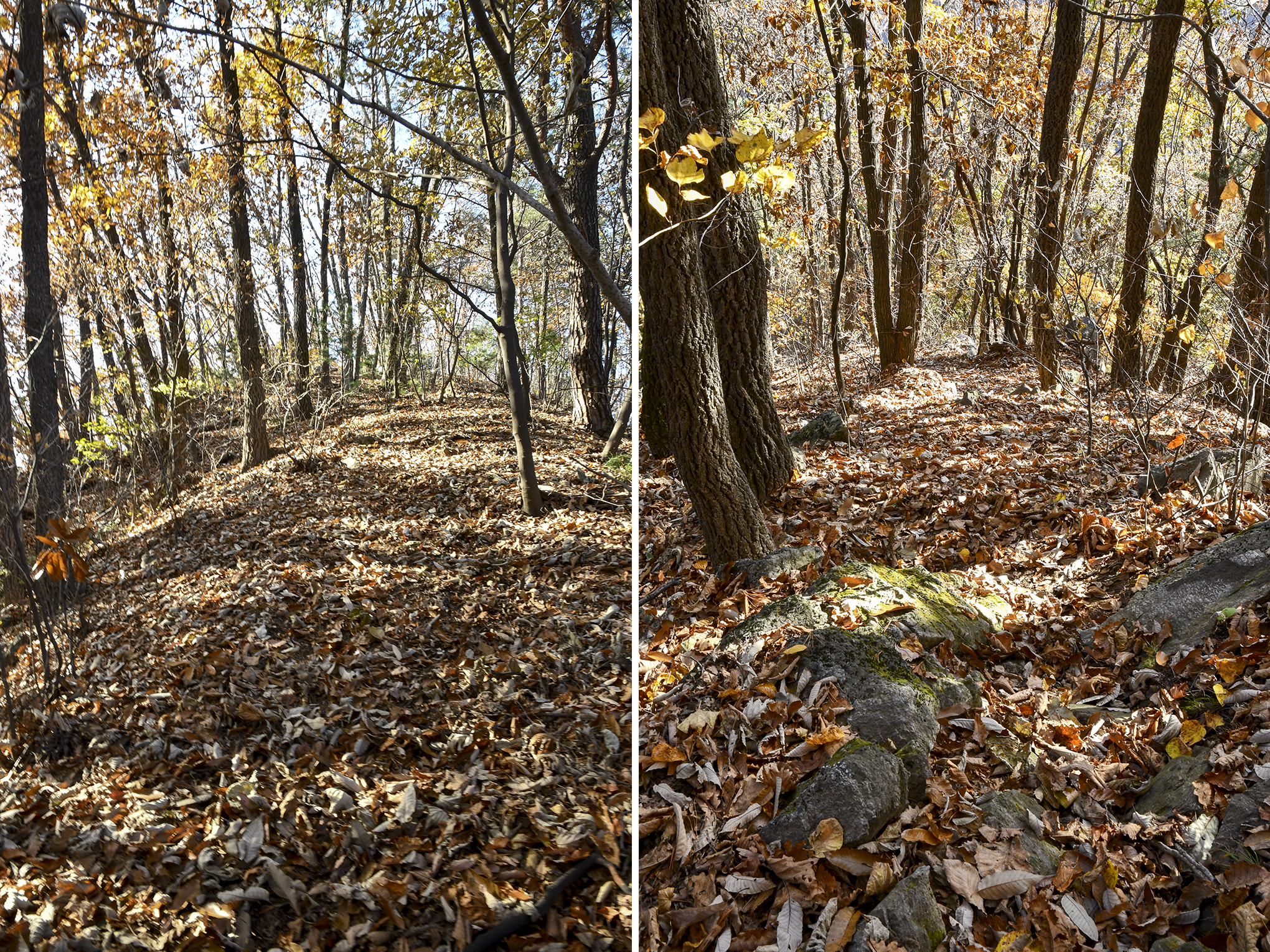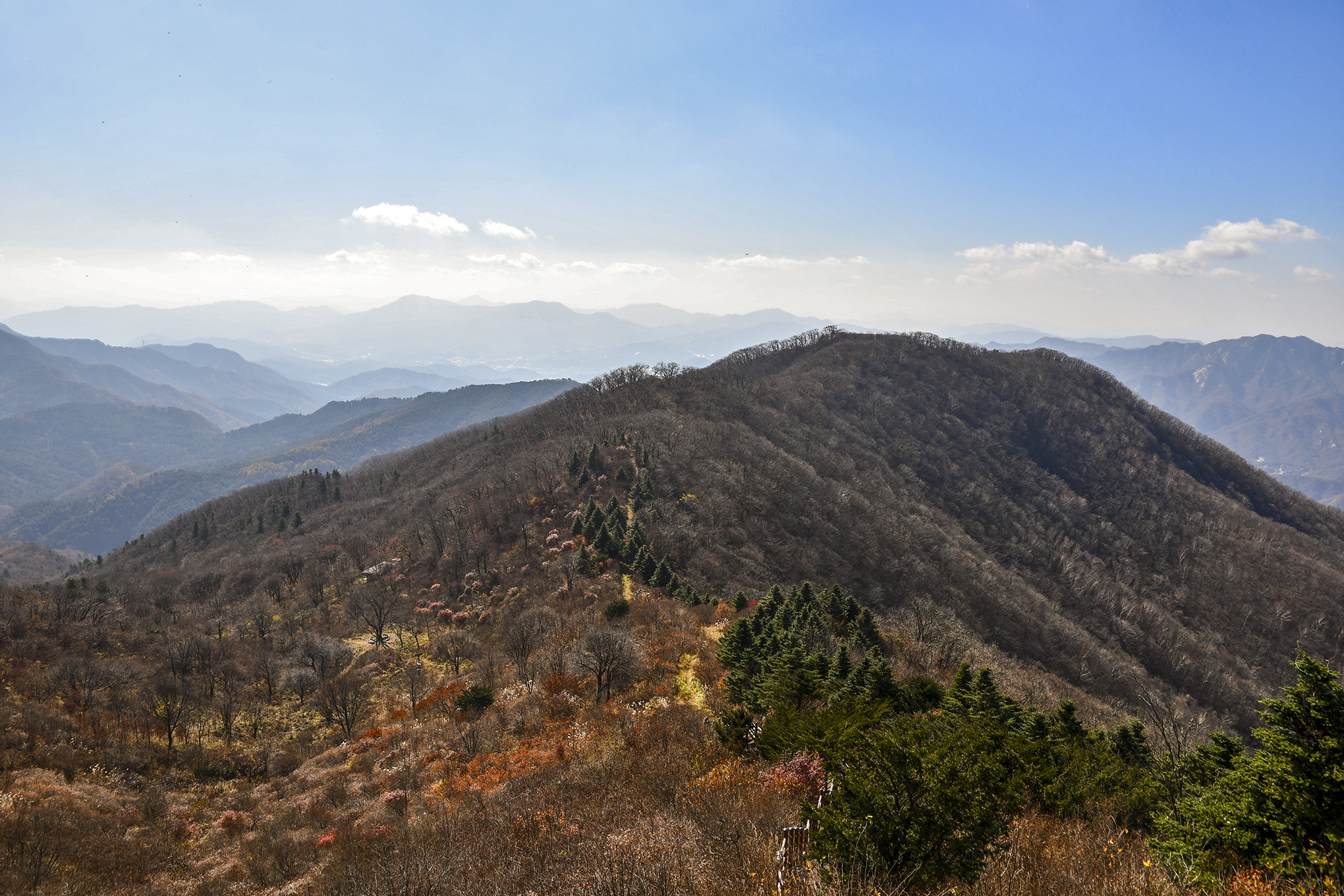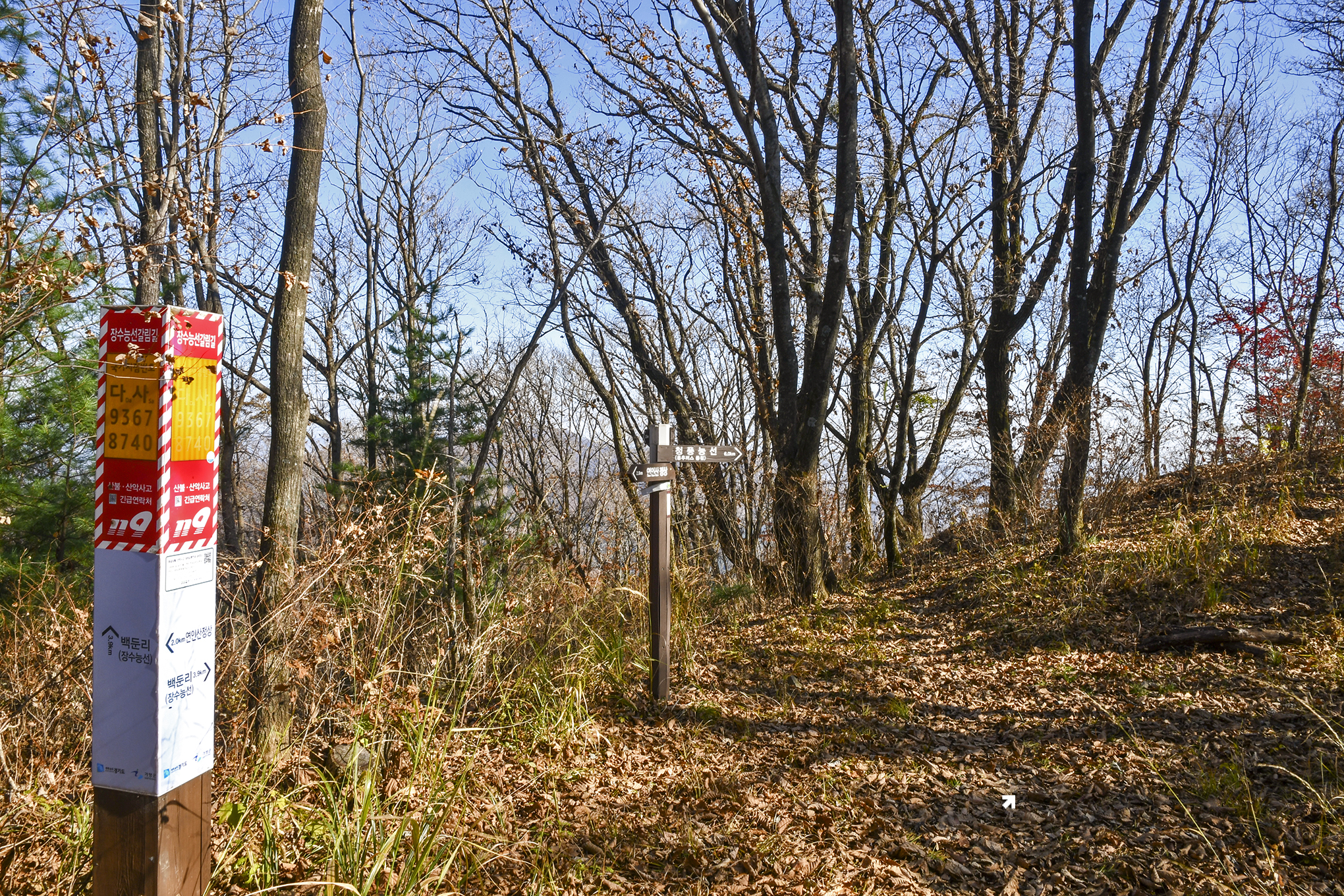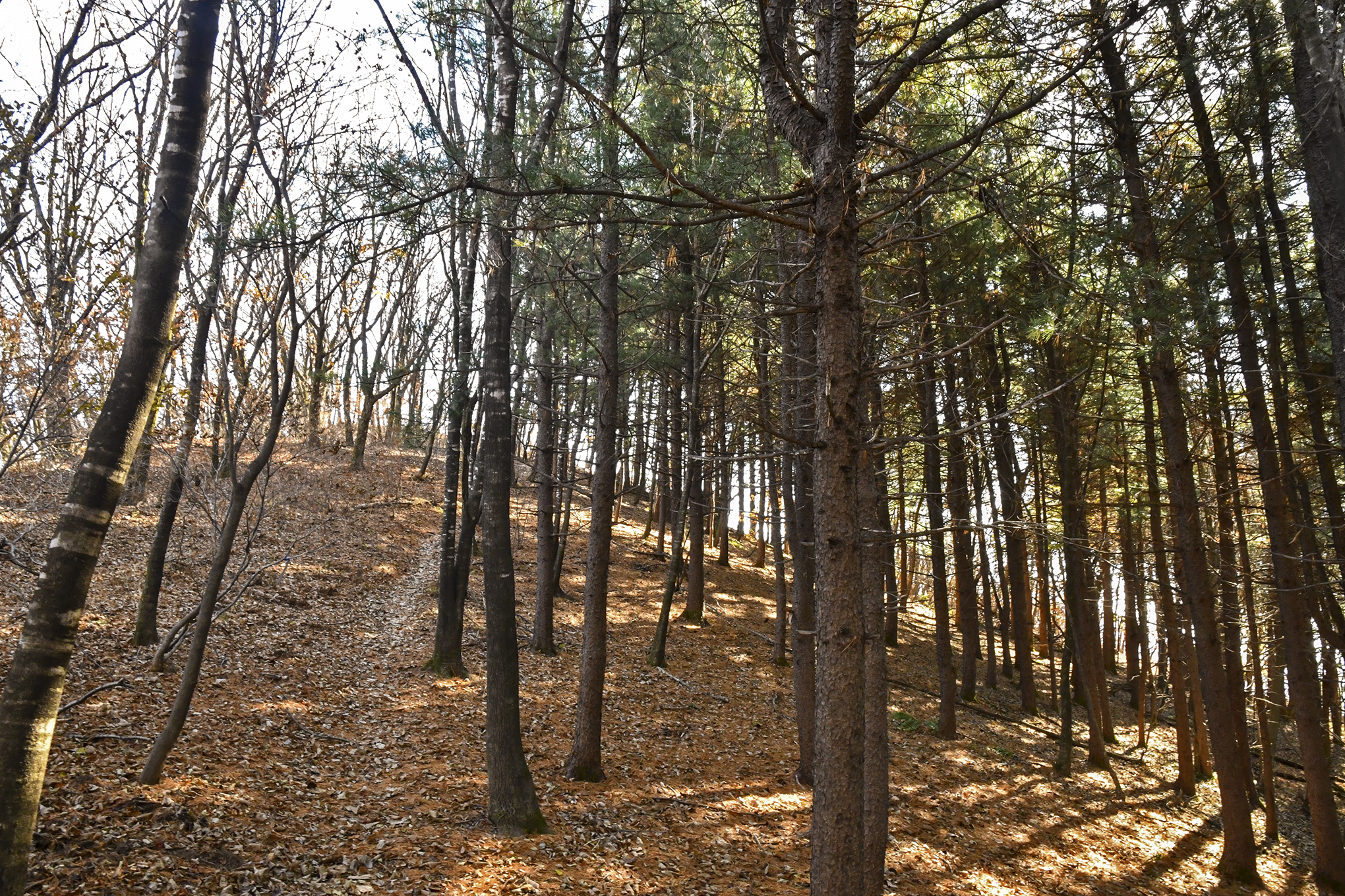 어떤 구간은 등산로가 보이지 않을 정도로 낙엽이 많지만 능선으로 걸으니 등산로가 지워져도 길을 잃을 염려는 없다.