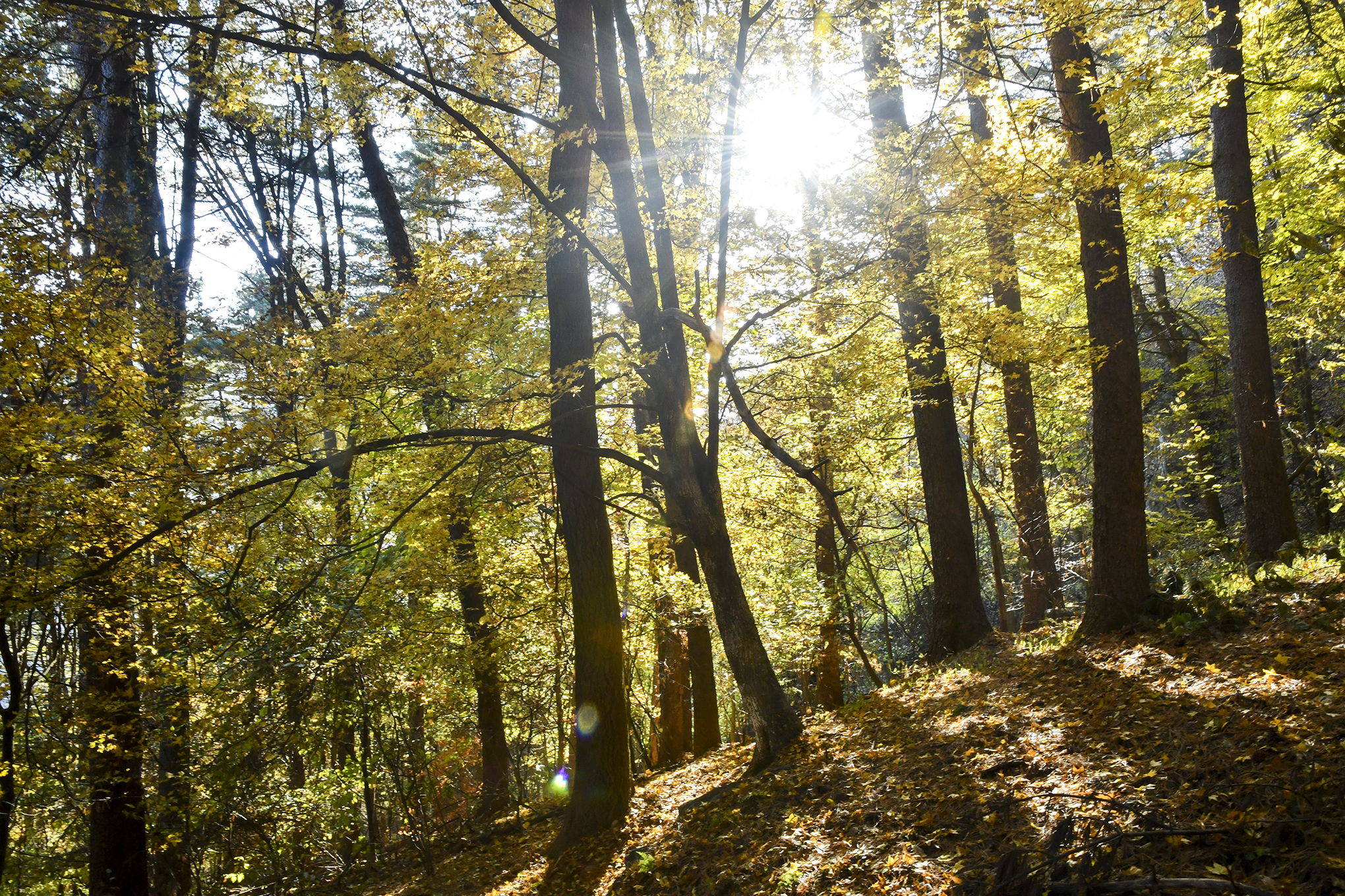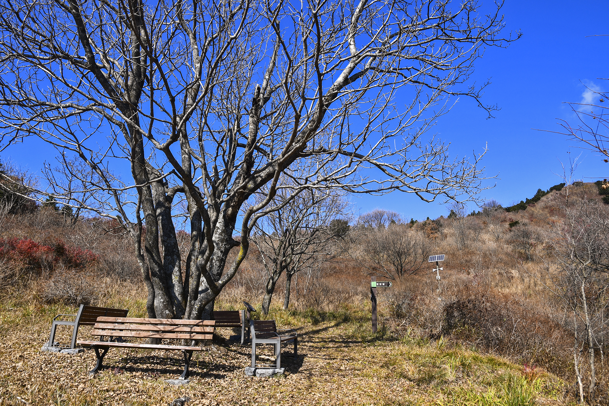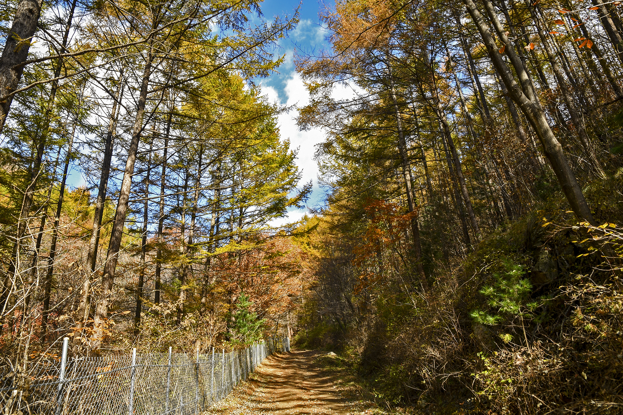 옛 화전민들이 심은 100년 이상 된 물푸레나무 아래 휴식할 수 있는 쉼터가 있다. 처음으로 하늘이 활짝 열린 풍경이다.