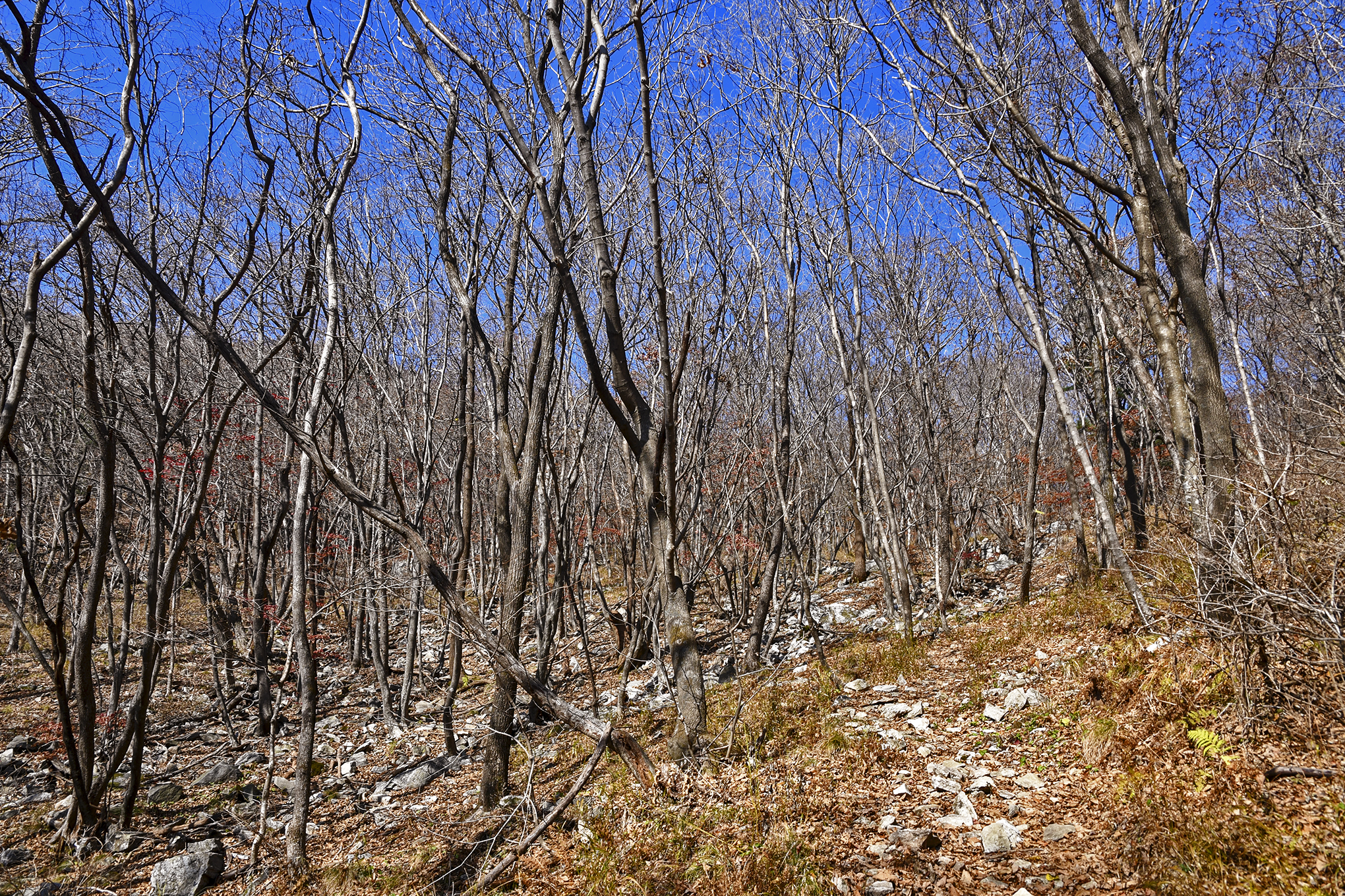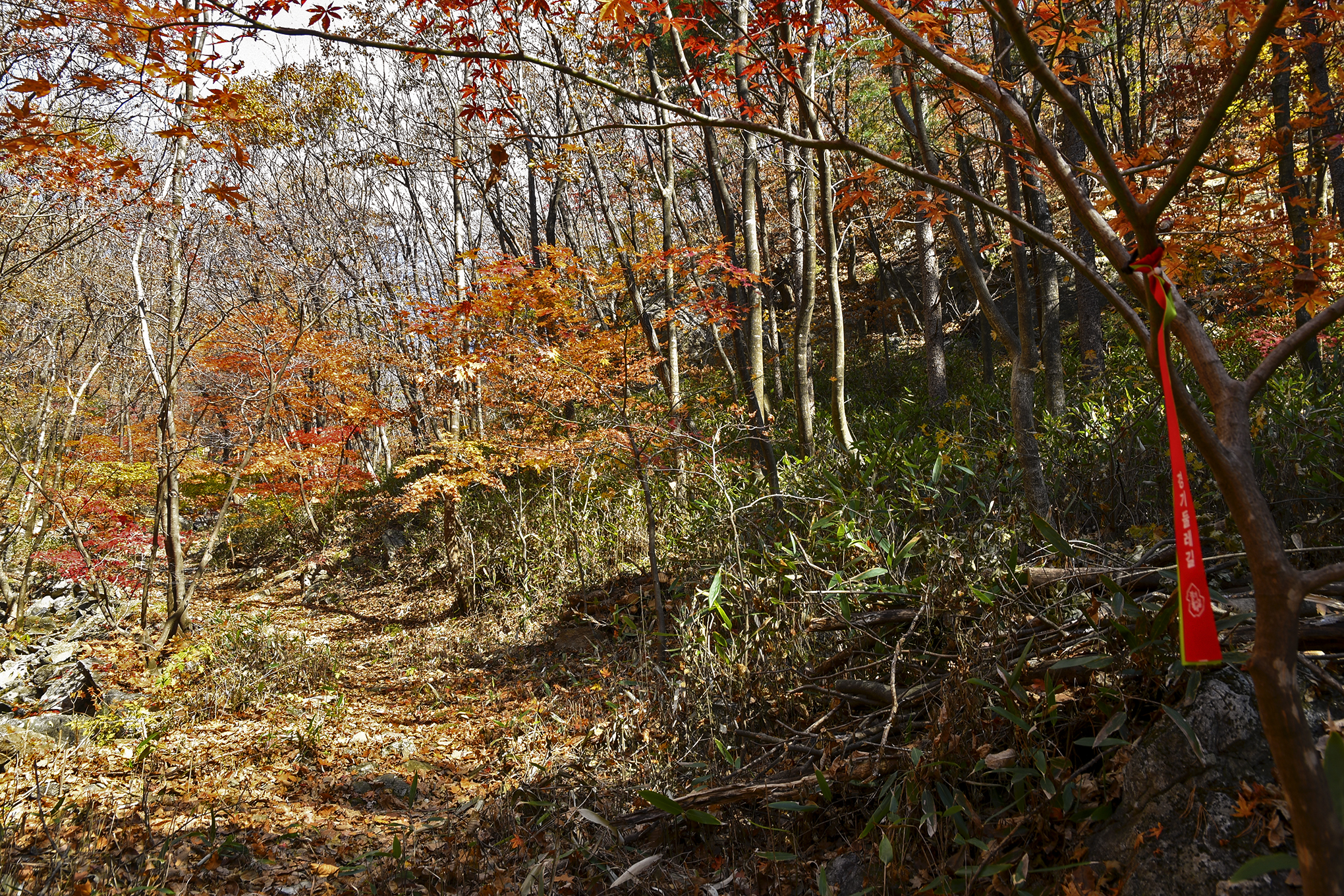 낙엽이 너무 많아 상당히 미끄러웠고, 등산로가 거의 지워져 있었다.