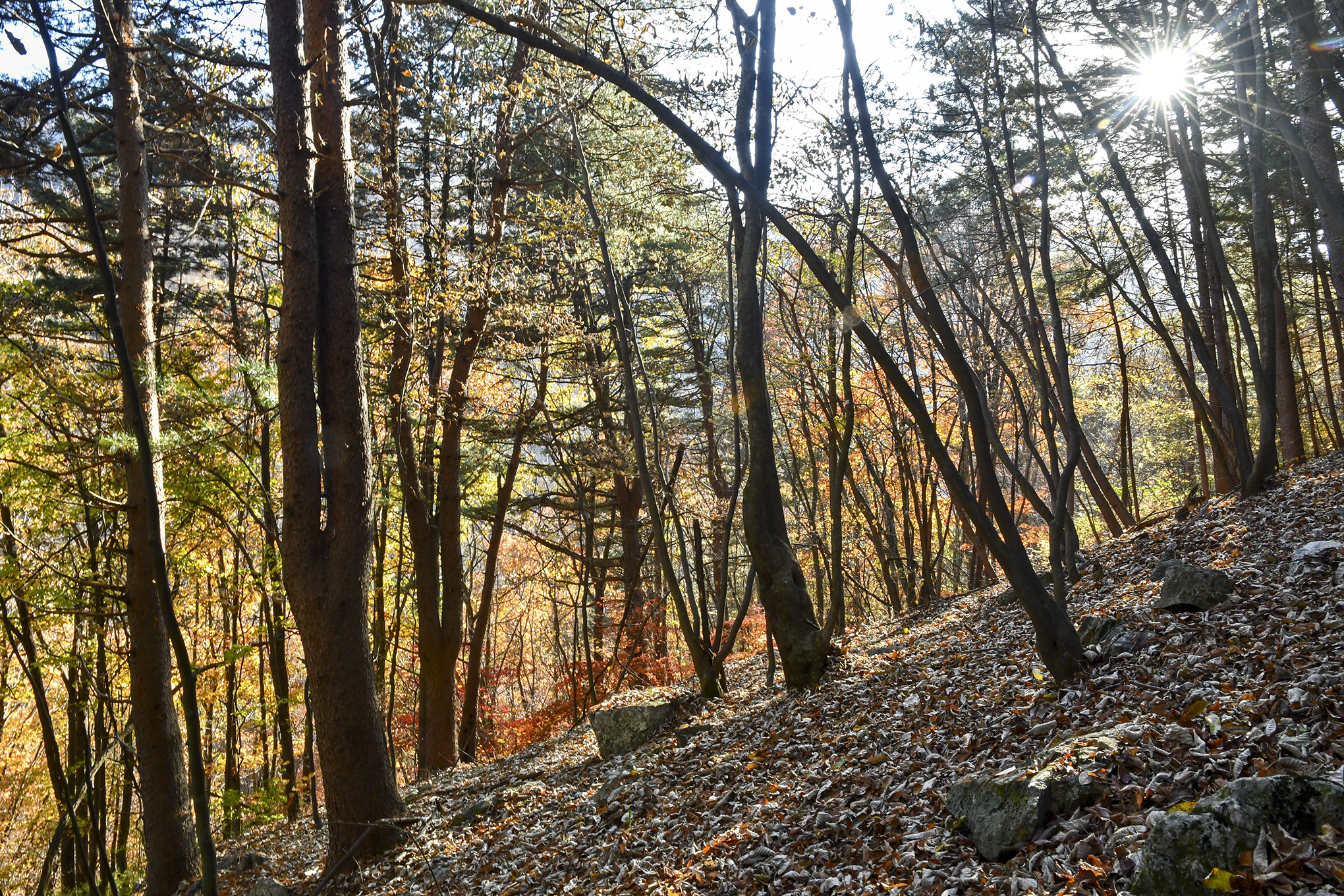 돌은 덜그덕거리고, 낙엽때문에 미끄럽기까지 하니 하산할 때는 필히 이곳이 아닌 청풍능선을 타야겠다고 마음을 굳혔다.