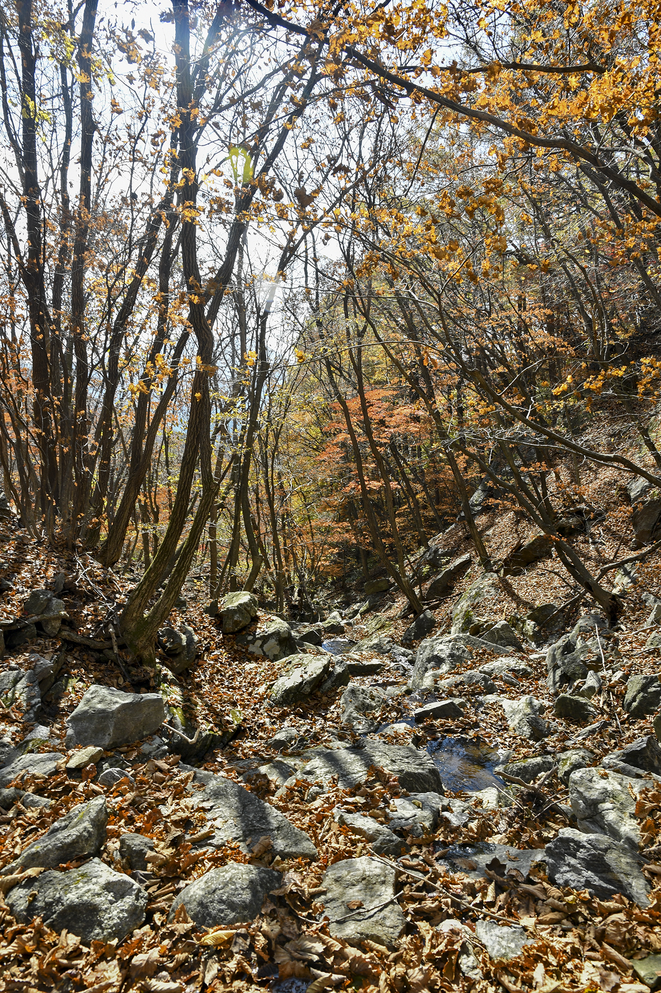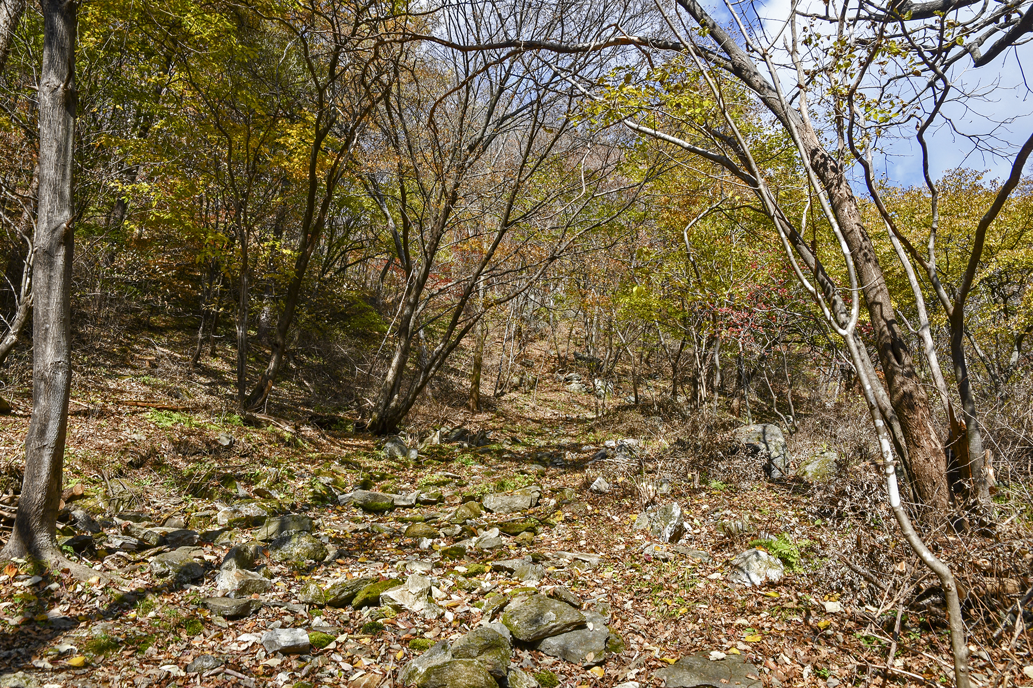 낙엽으로 가려진 너덜길은 한동안 계속 이어진다.