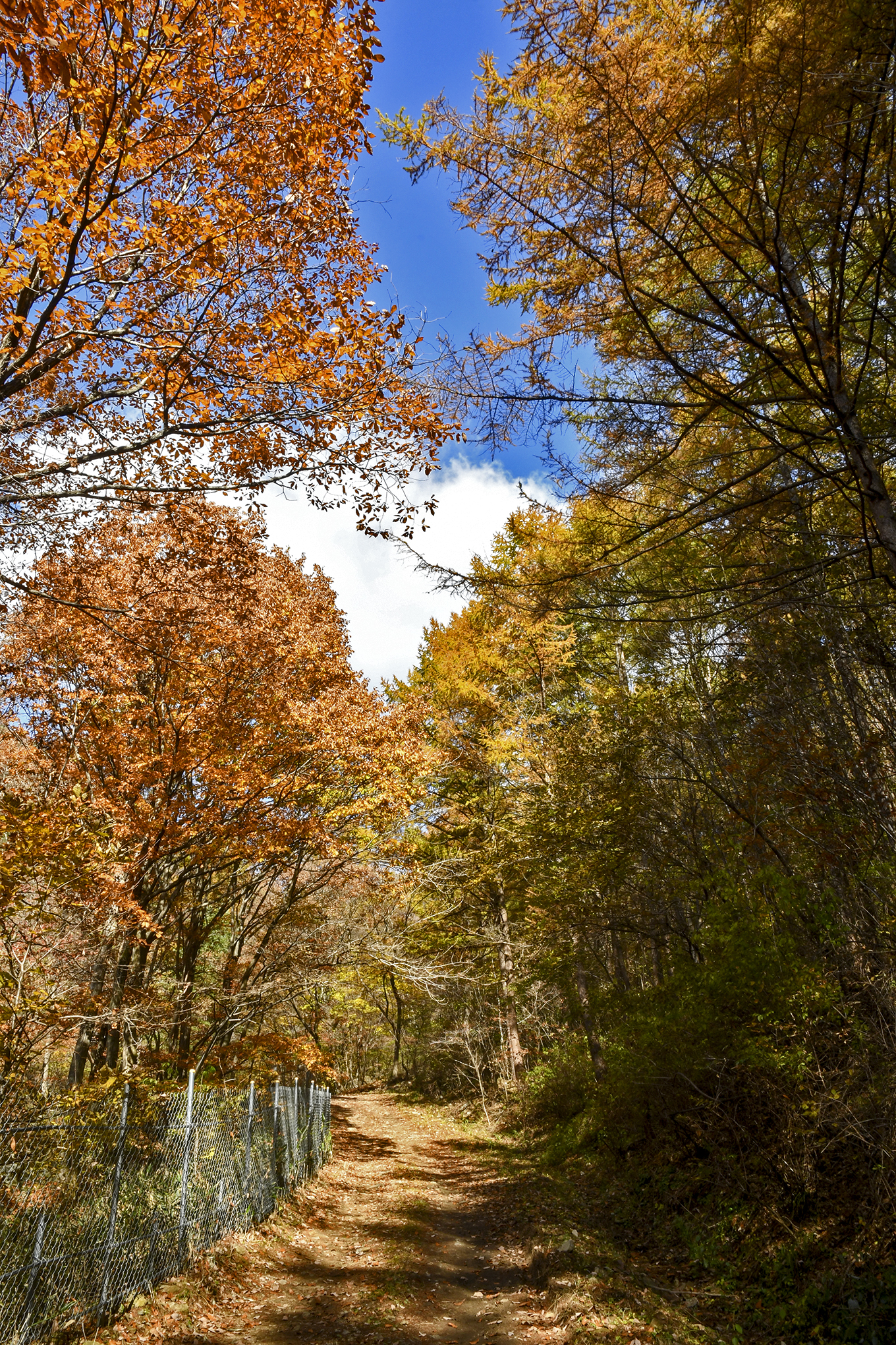 정상에서 2km 이상 내려오니 단풍이 보이기 시작하는데 여전히 전망은 전혀 없다.