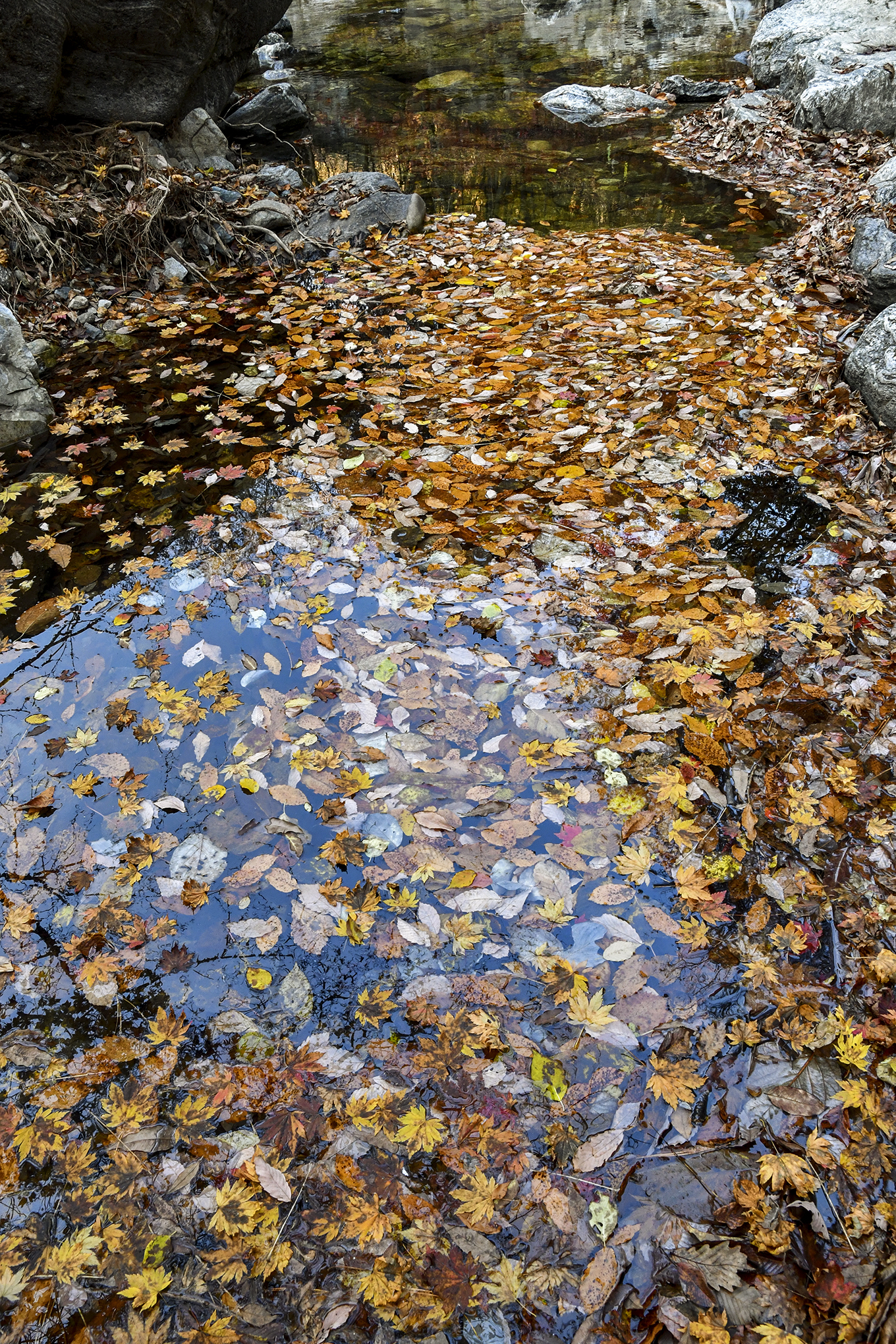 올라올 때 가을빛 가득 물들었던 작은 소는 이미 낙엽으로 가득하다.