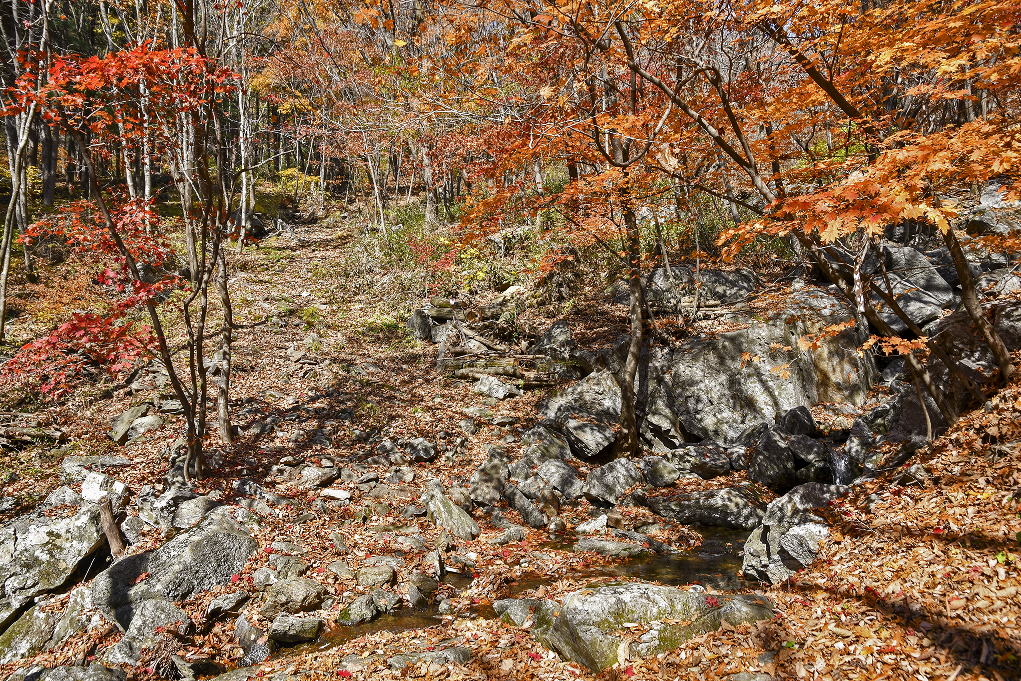 명품계곡길을 걸을때 바삭거리는 낙엽 밟는 소리가 그렇게나 좋았었는데, 지금은 그 느낌이 많이 달랐다.