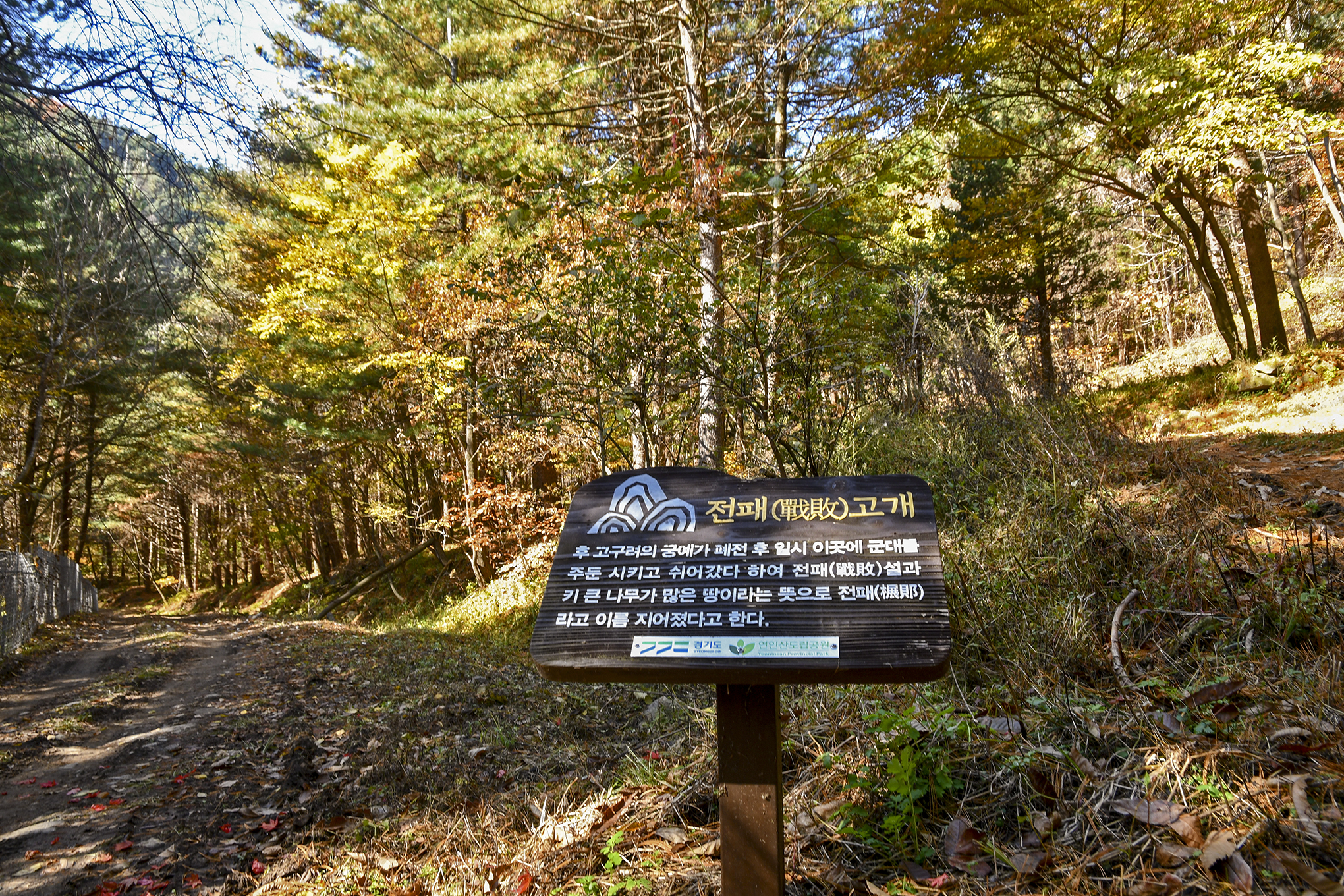 출발한지 30분만에 도착한 전패고개, 연인능선 갈림길로 안내되어 있다.