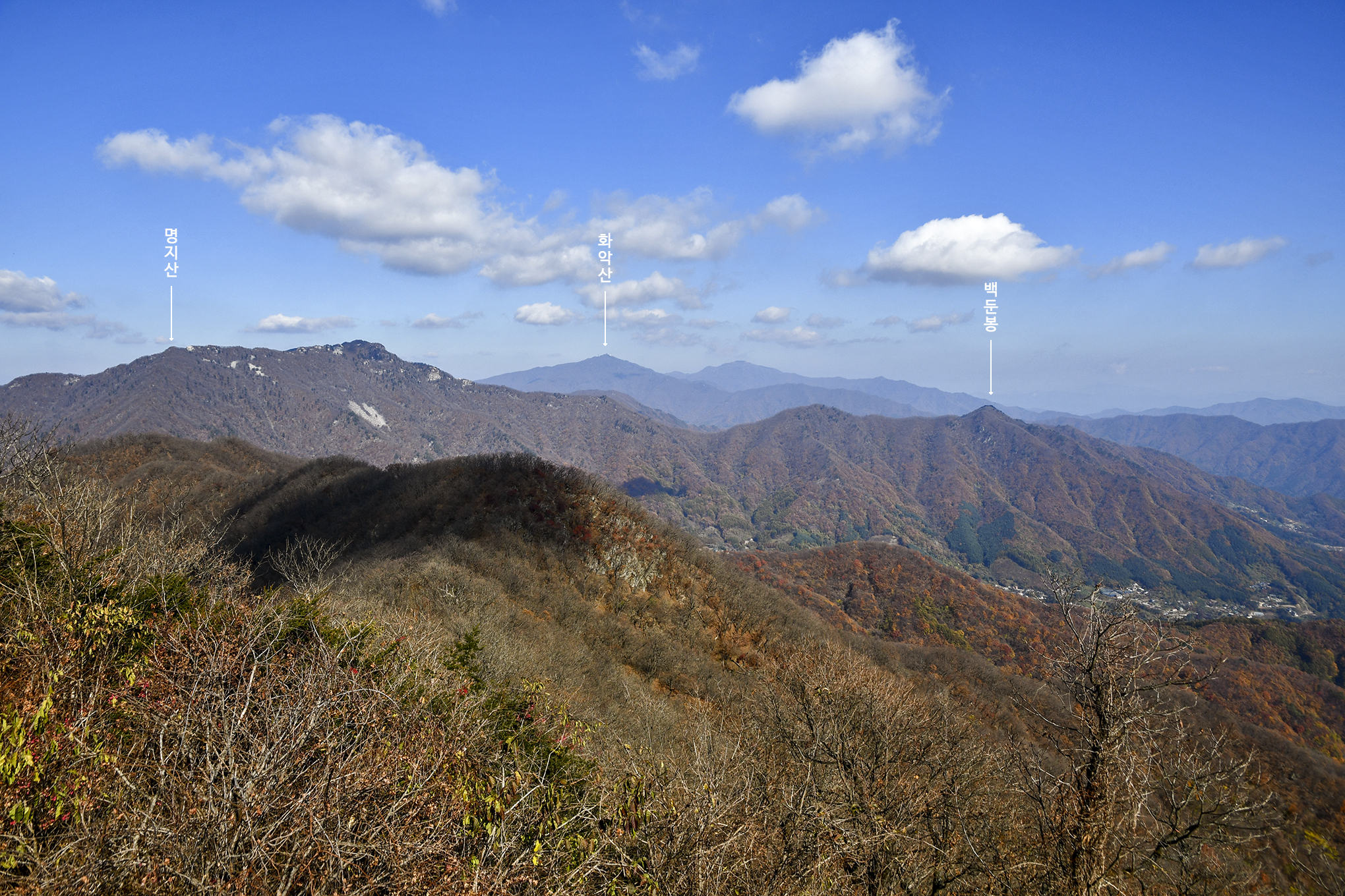 * 연인산 하산시 청풍능선은 길고 낙엽으로 등산로가 지워진 상태라 추천하지 않음.