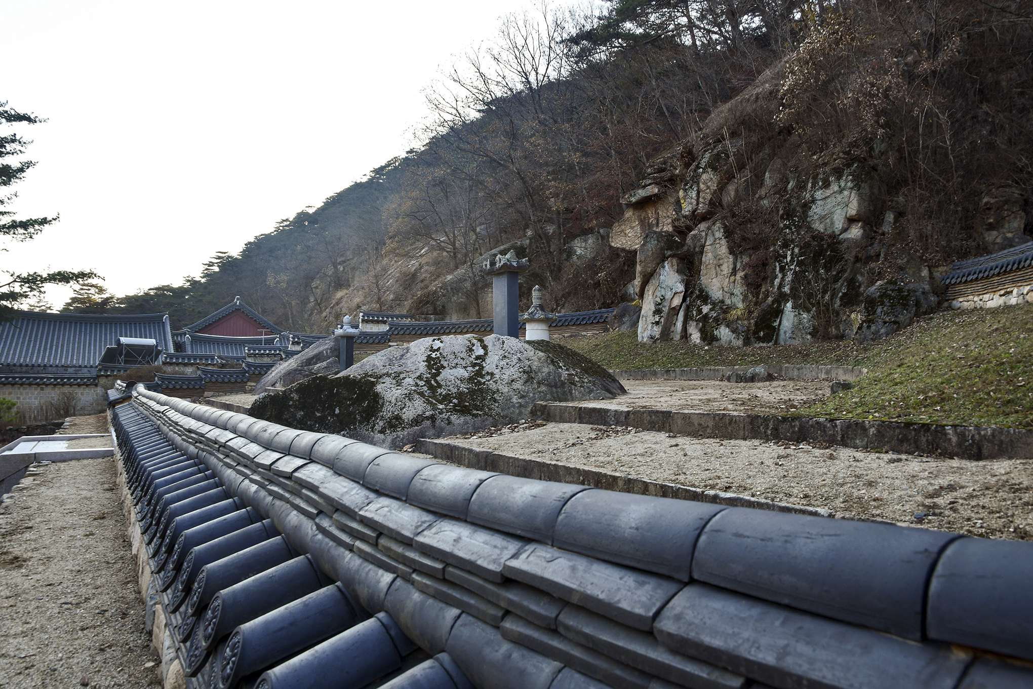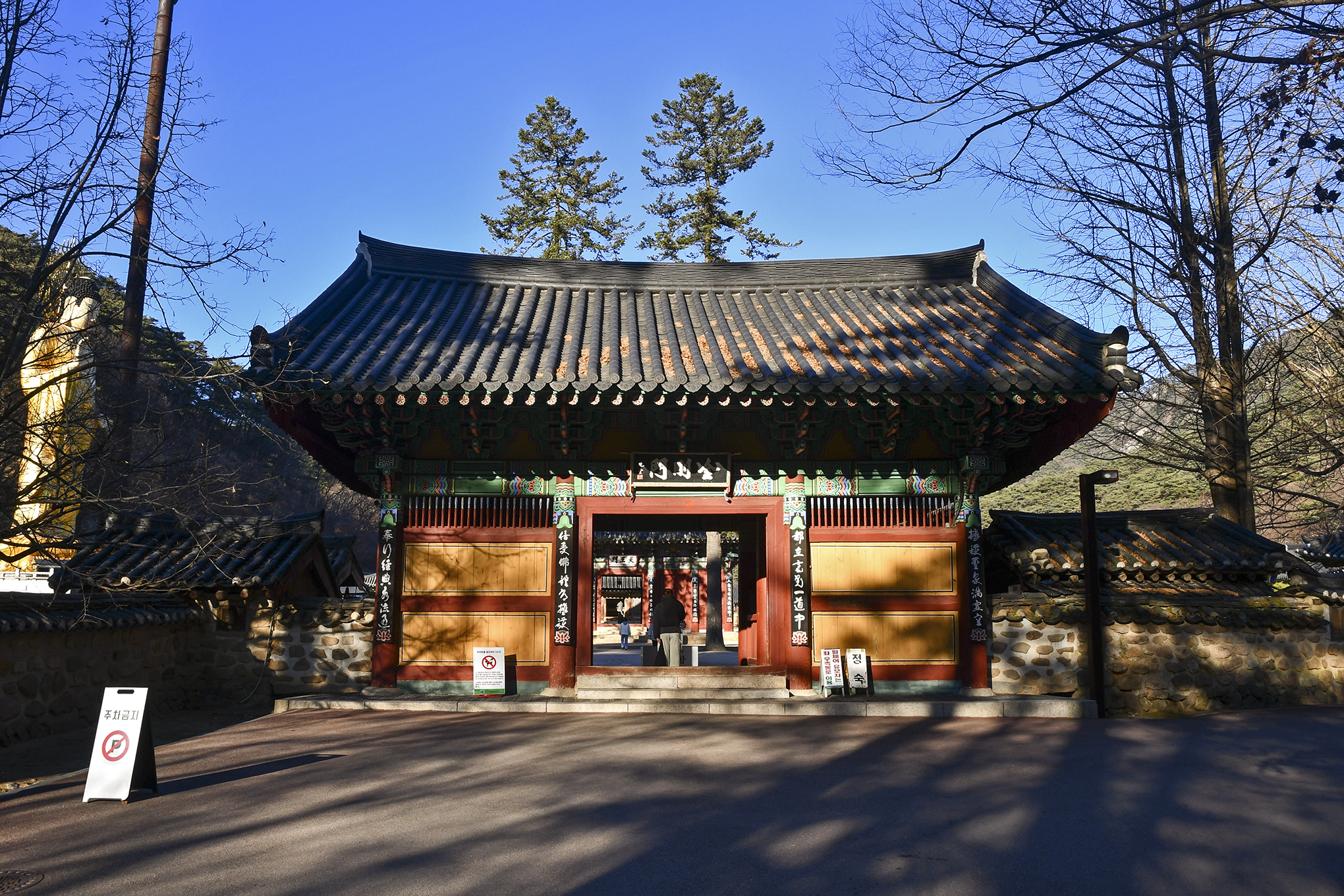 두그루의 나무 자체가 출입문 역할을 해주는듯, 그 뒤에 천왕문이 있다.