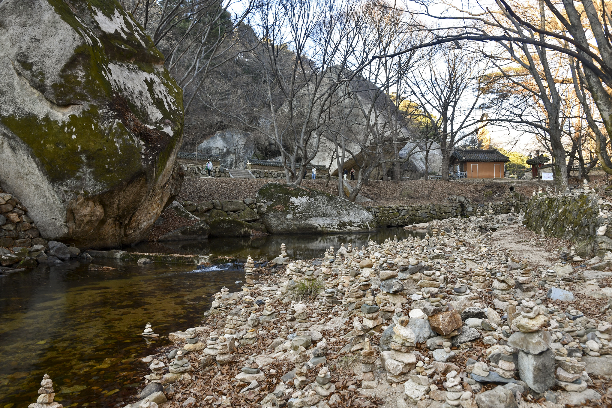 수정암 내부로는 들어갈 수 없어 징검다리를 건너 하천을 넘어 왔다.